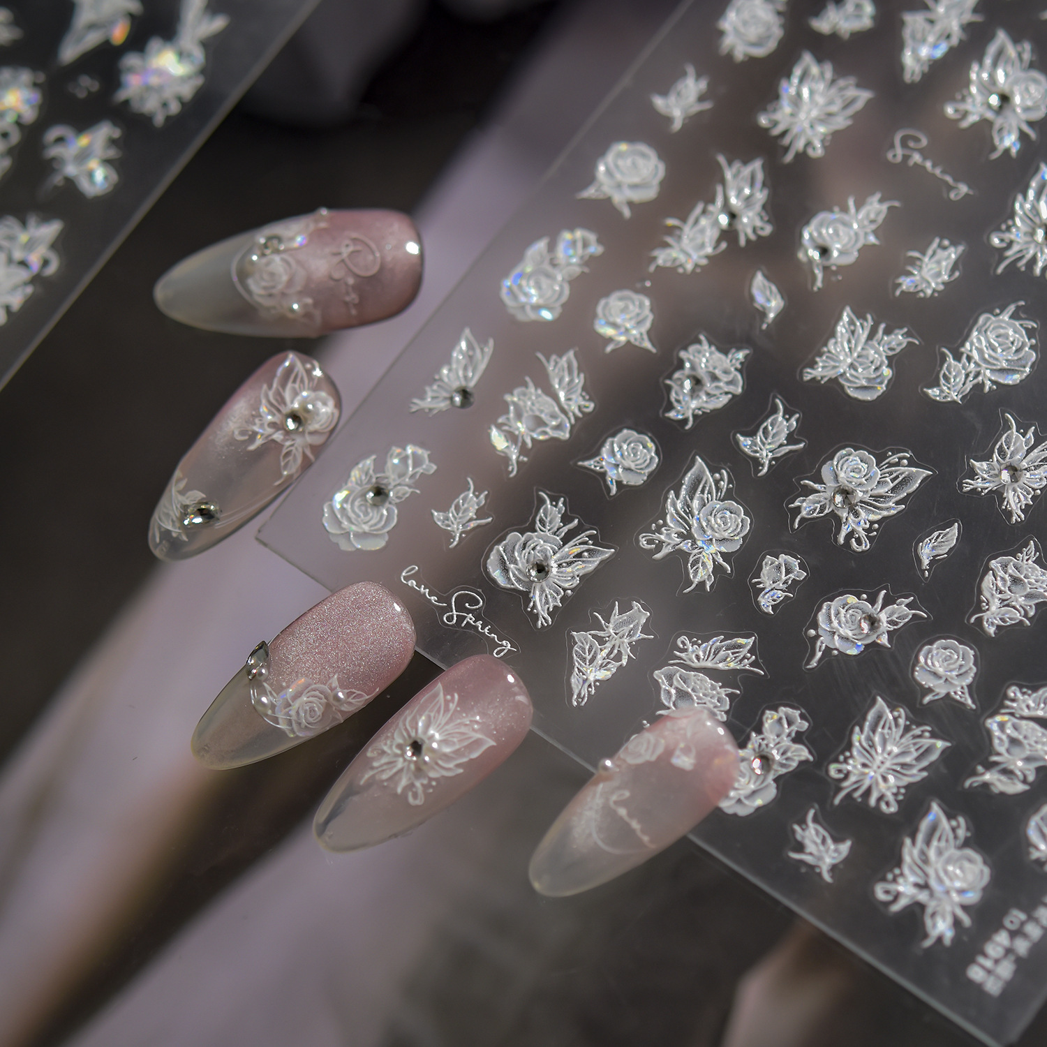 Nail Art New Crystal Diamond Nail Sticker 3D 3D 3D Sensación de uñas Advanced Rose Butterfly Jewelry Sticker al por mayor