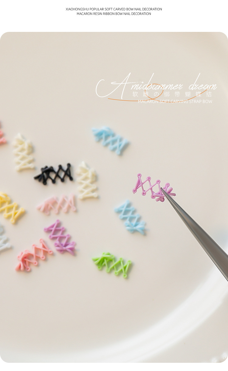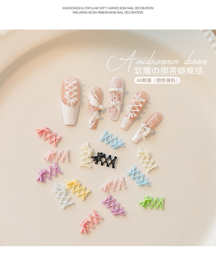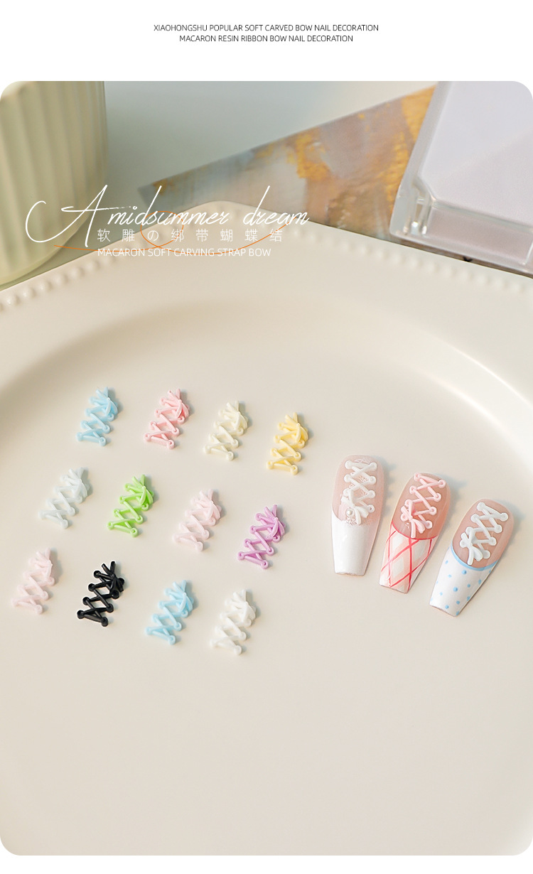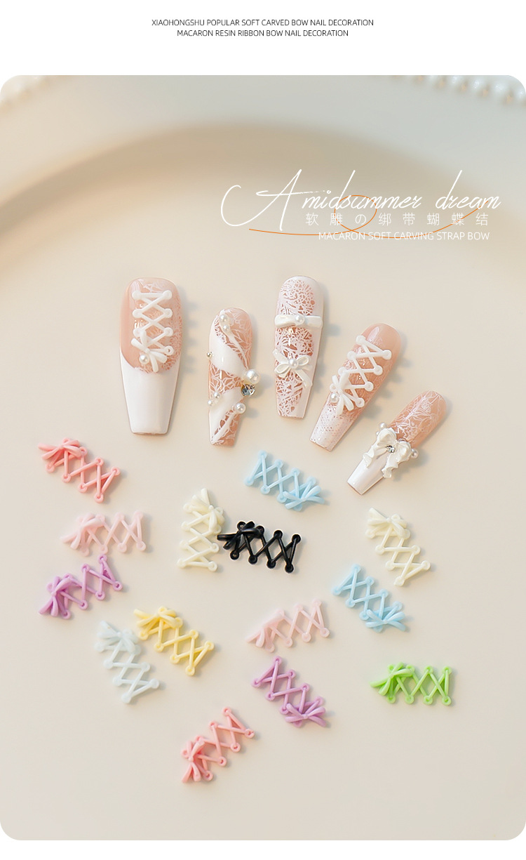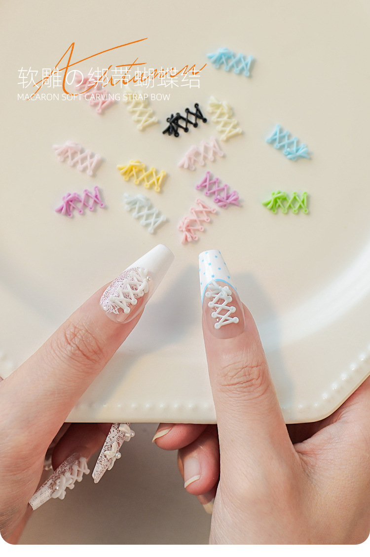 Accesorios de uñas de talla suave, lazo de cinta, rojo rosa, correa cruzada tridimensional, estilo de ballet, mezcla de color blanco y negro