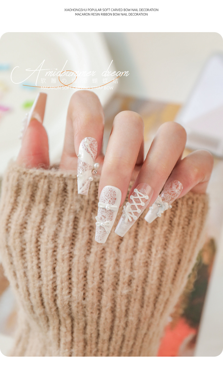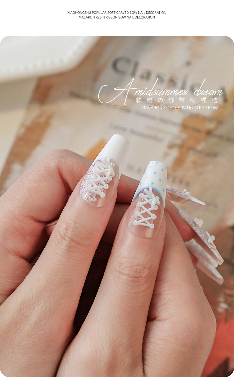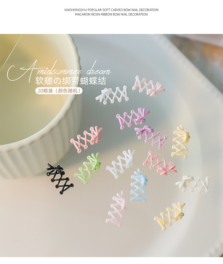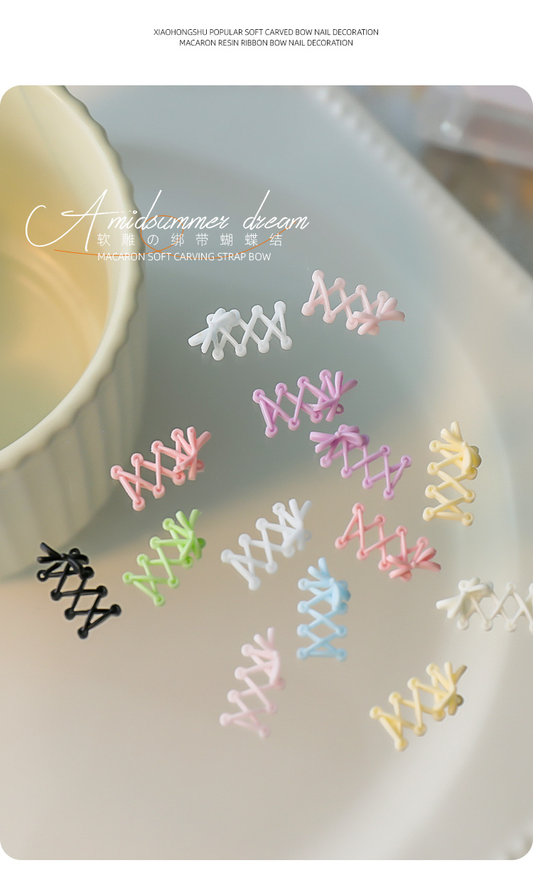 Accesorios de uñas de talla suave, lazo de cinta, rojo rosa, correa cruzada tridimensional, estilo de ballet, mezcla de color blanco y negro