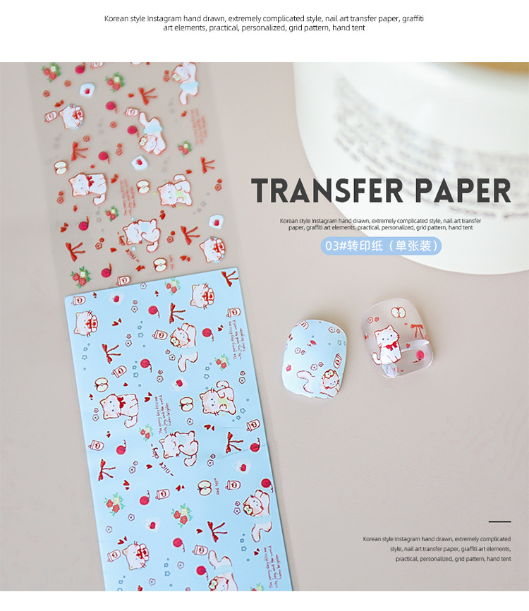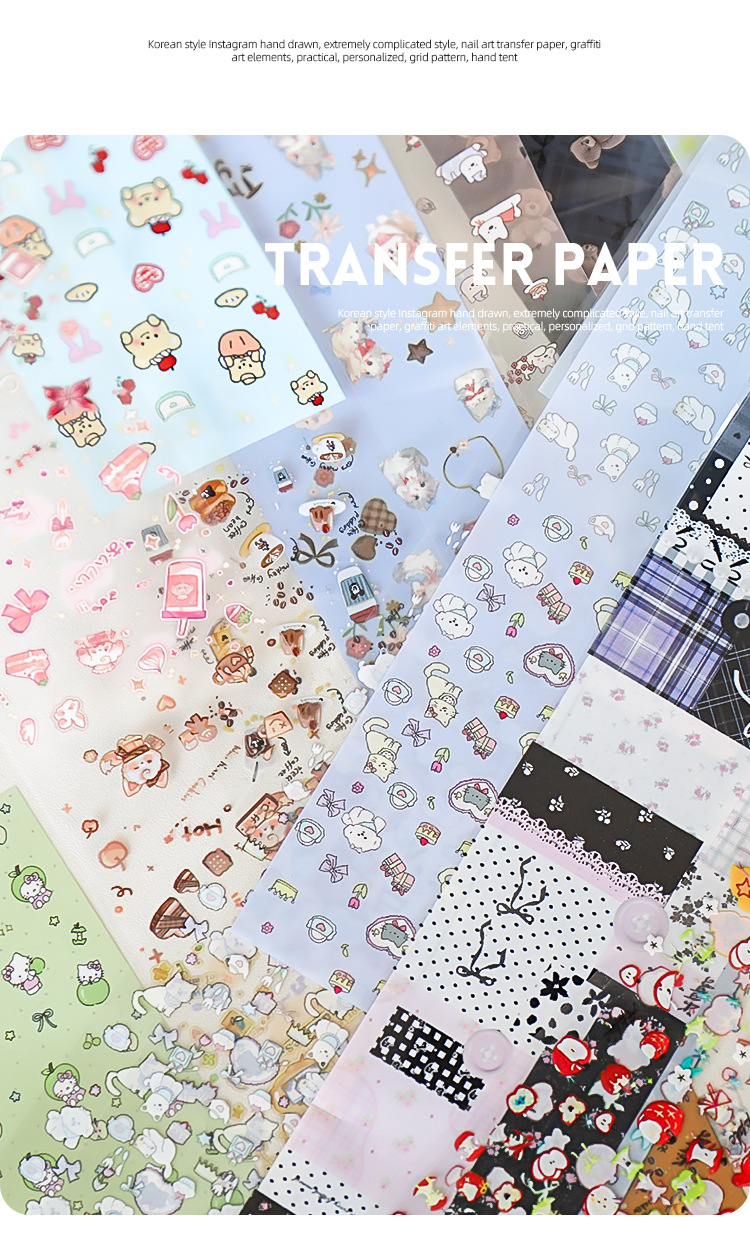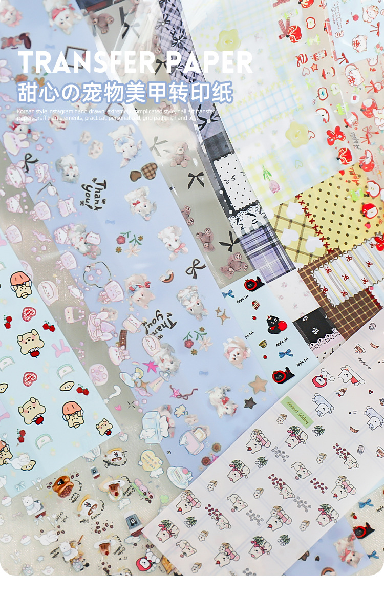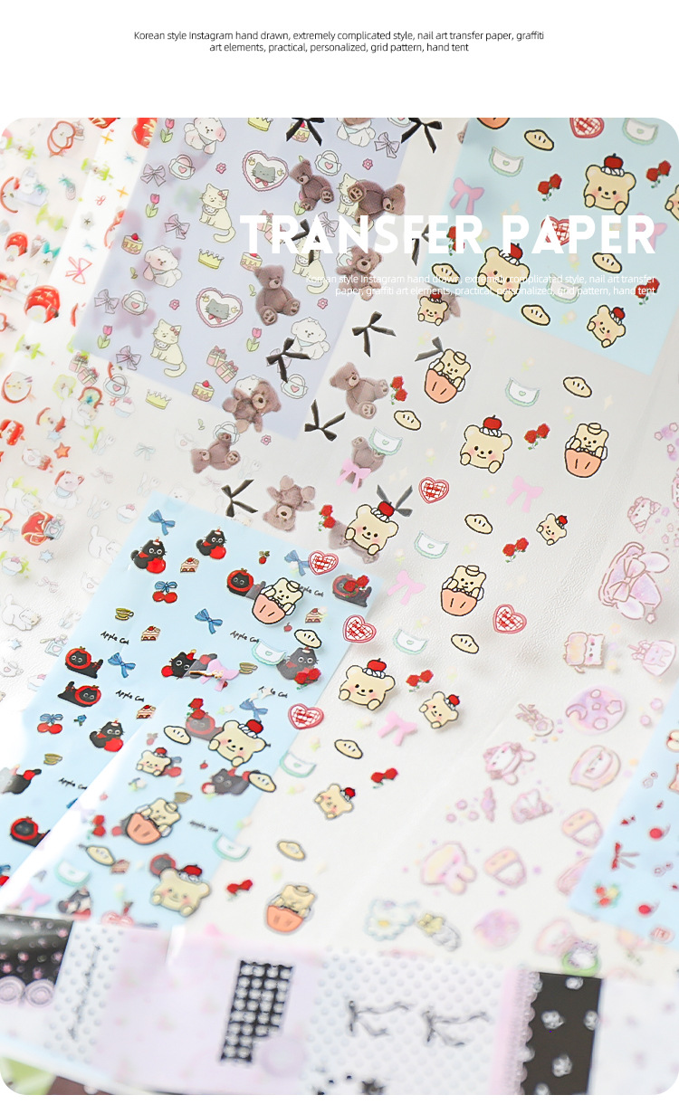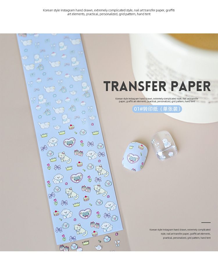 Red de celebridades de la red nueva manicura amor mascota papel de transferencia pegatinas de cielo estrellado lindo pintado a mano dibujos animados gatito papel al por mayor