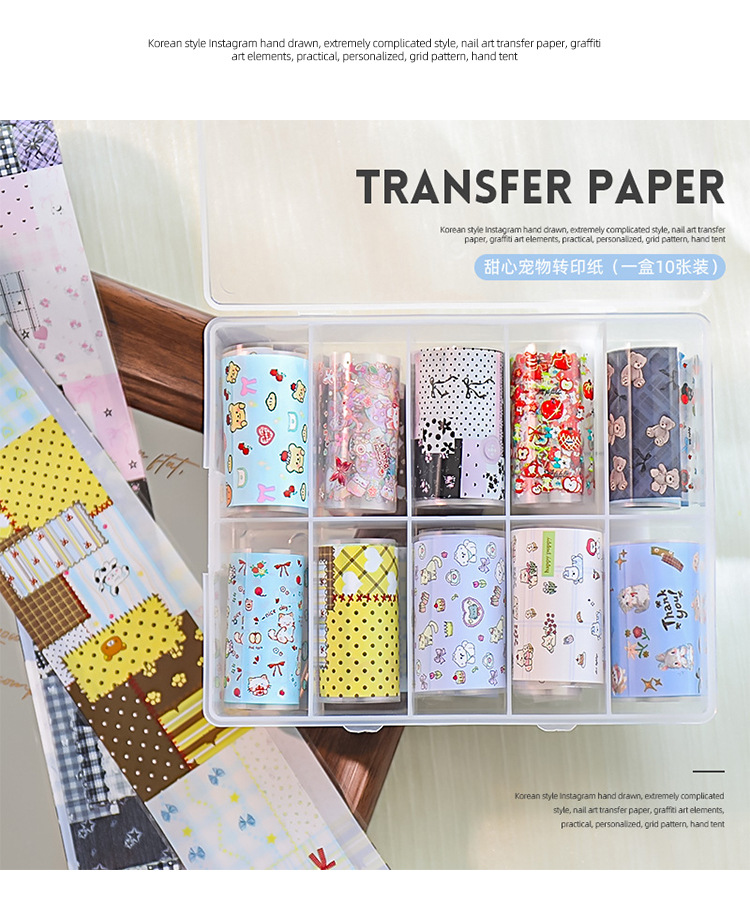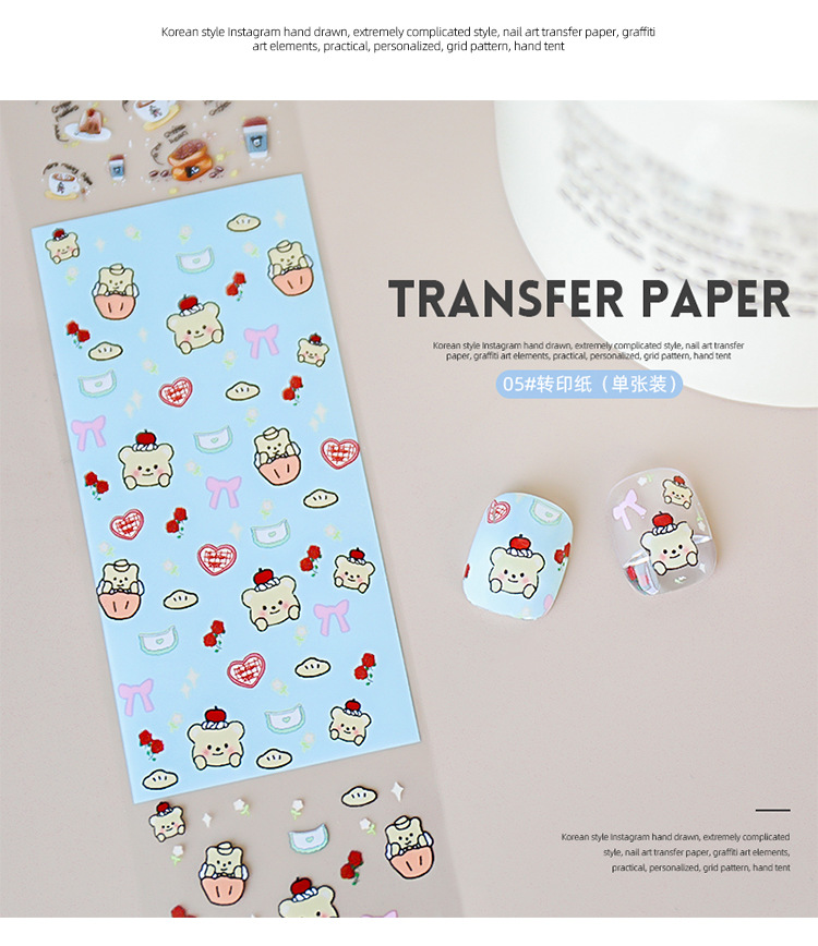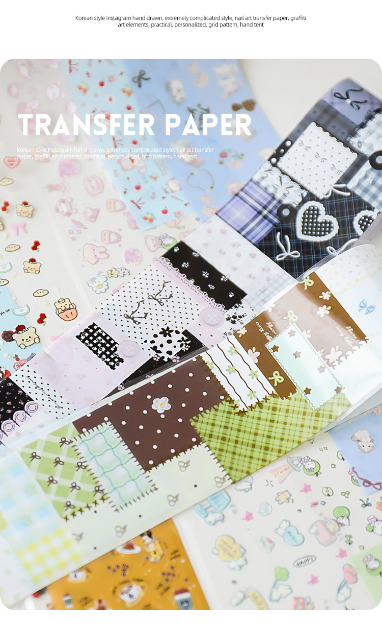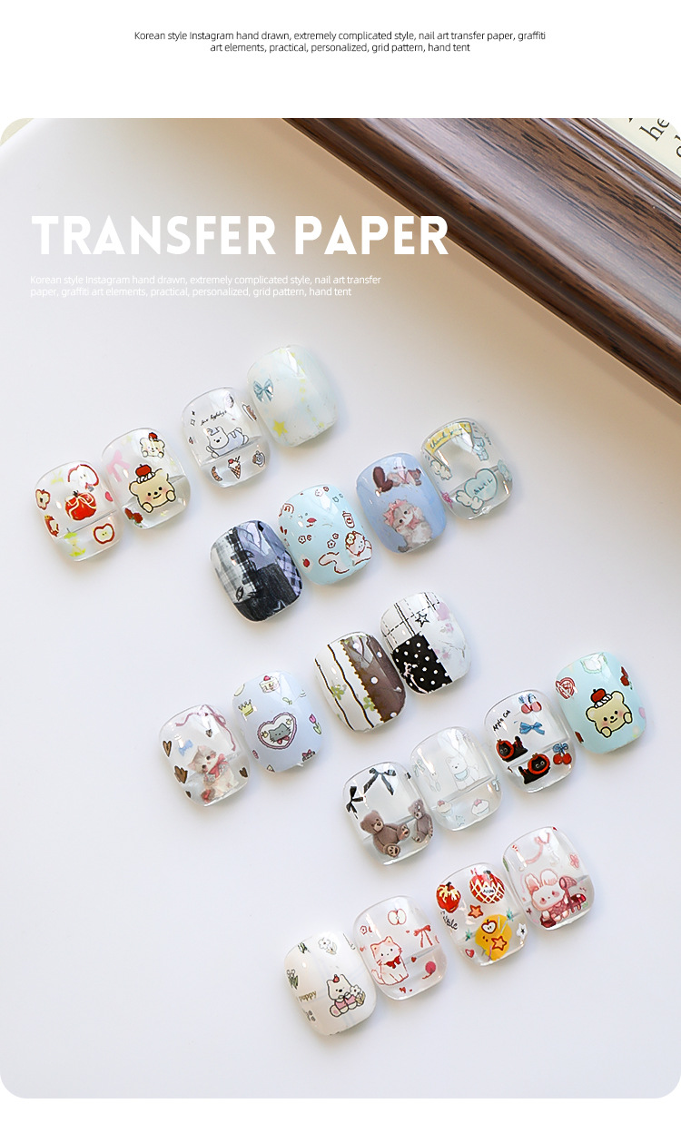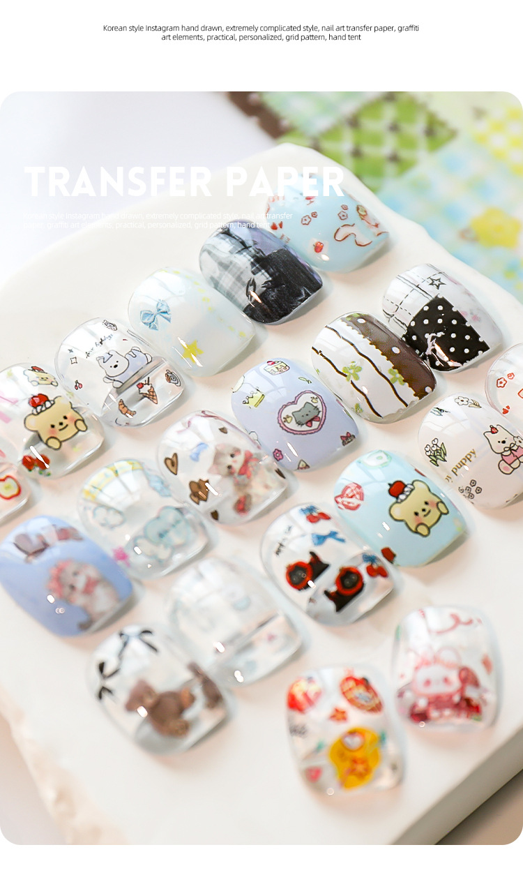 Red de celebridades de la red nueva manicura amor mascota papel de transferencia pegatinas de cielo estrellado lindo pintado a mano dibujos animados gatito papel al por mayor