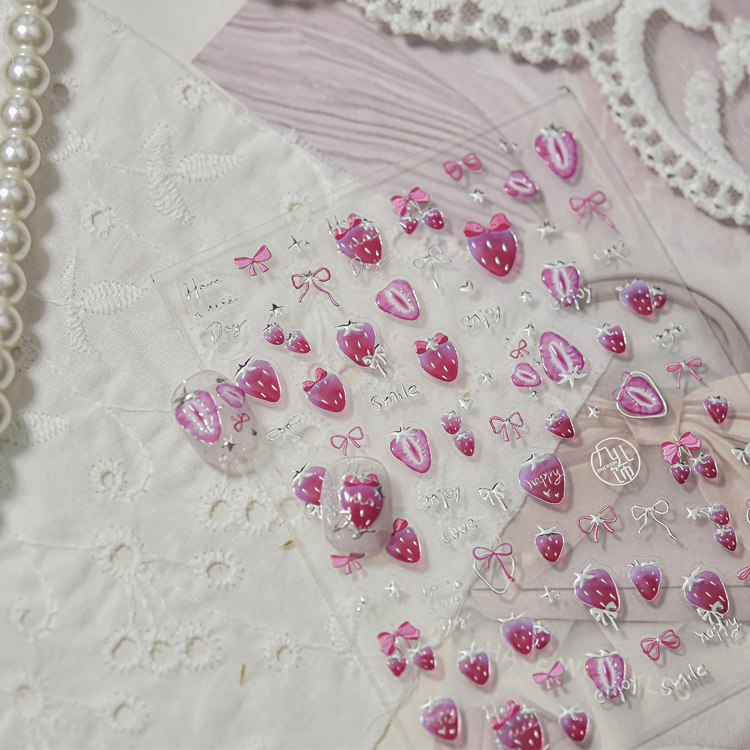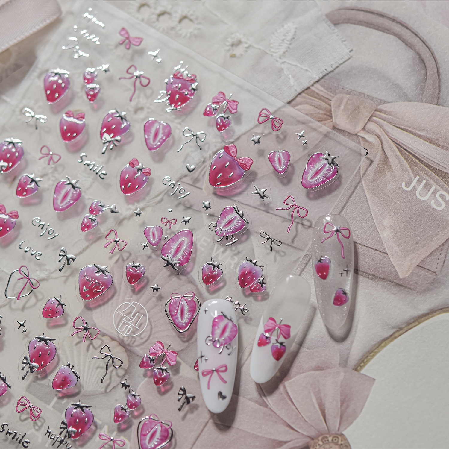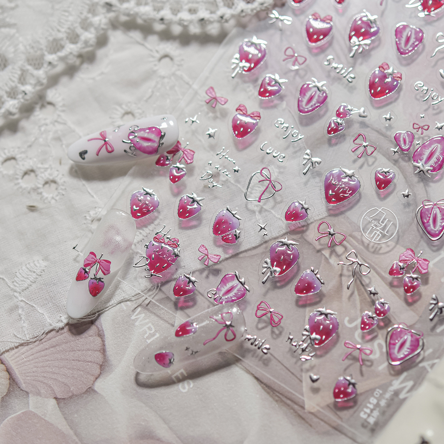 Nail art nuevo metal nail art pegatinas bricolaje caliente dulce hielo transparente pegatinas de uñas pegatinas de joyería de fresa rosa al por mayor