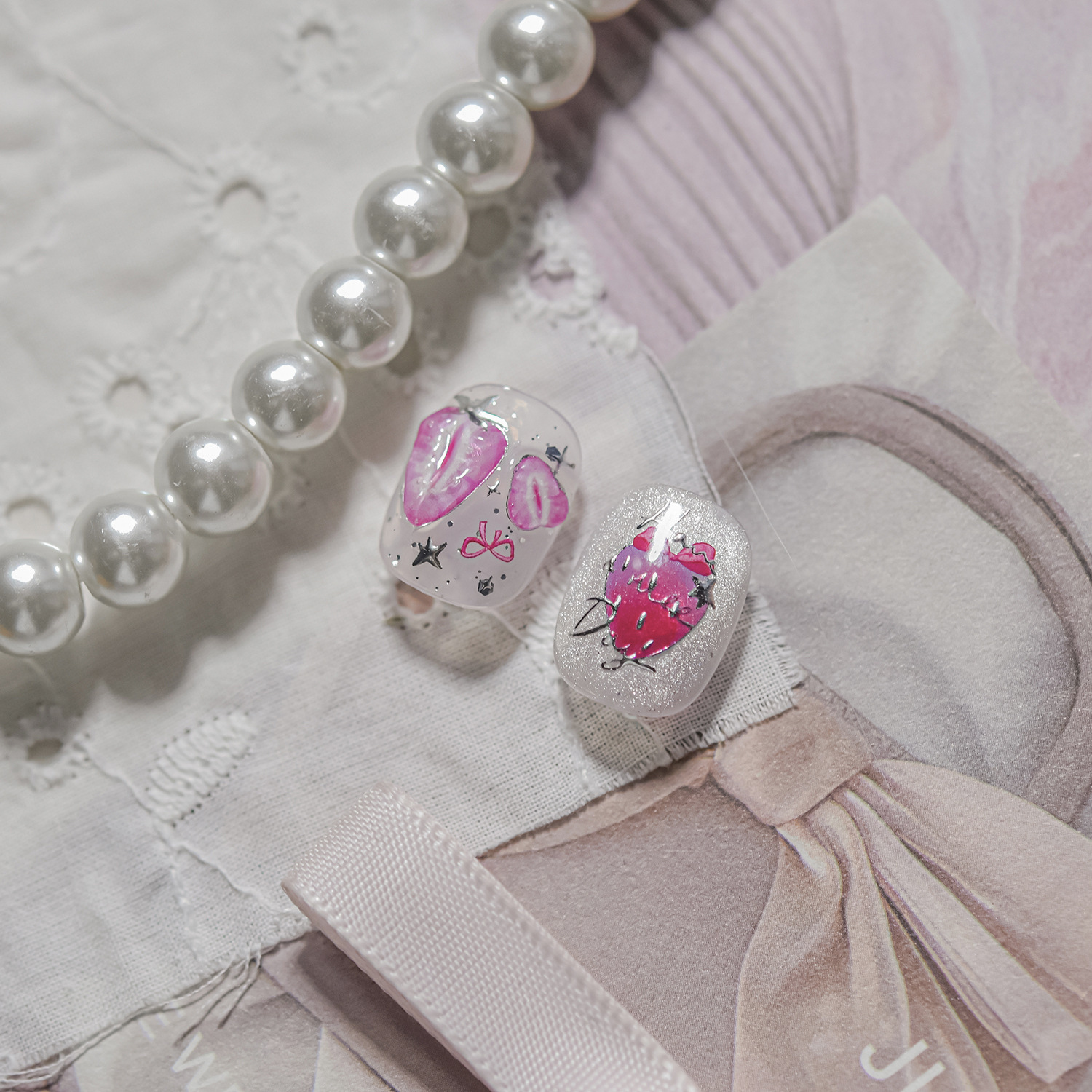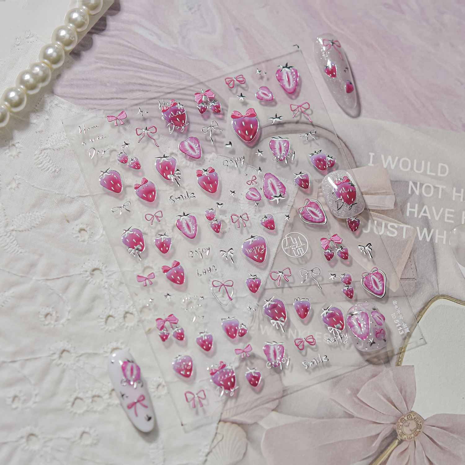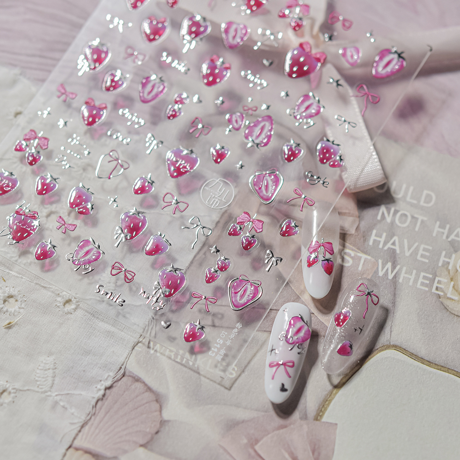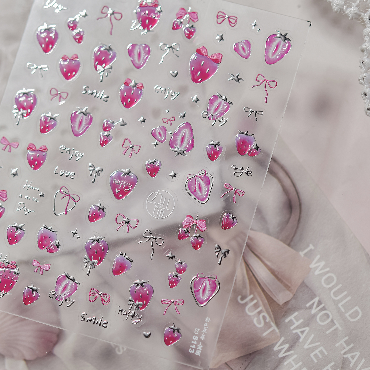 Nail art nuevo metal nail art pegatinas bricolaje caliente dulce hielo transparente pegatinas de uñas pegatinas de joyería de fresa rosa al por mayor