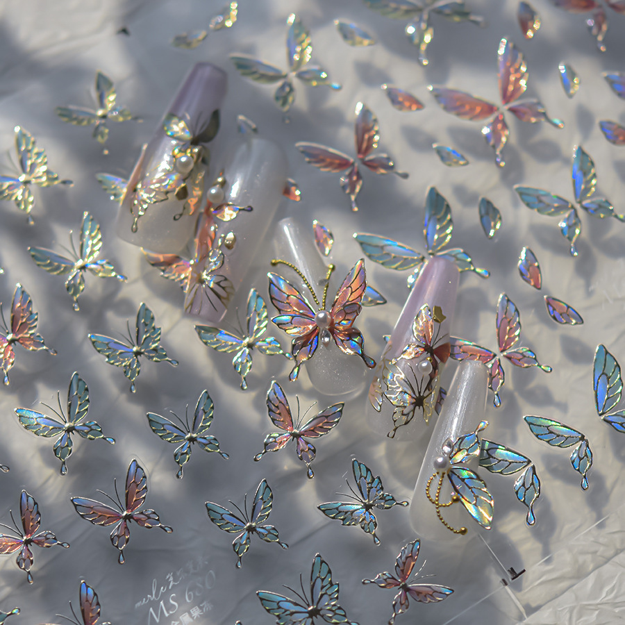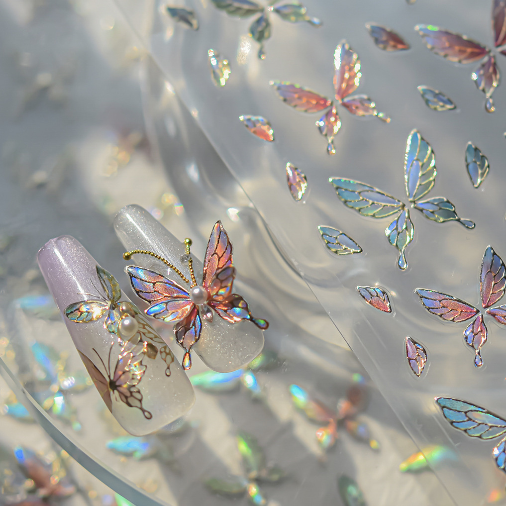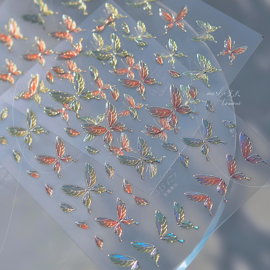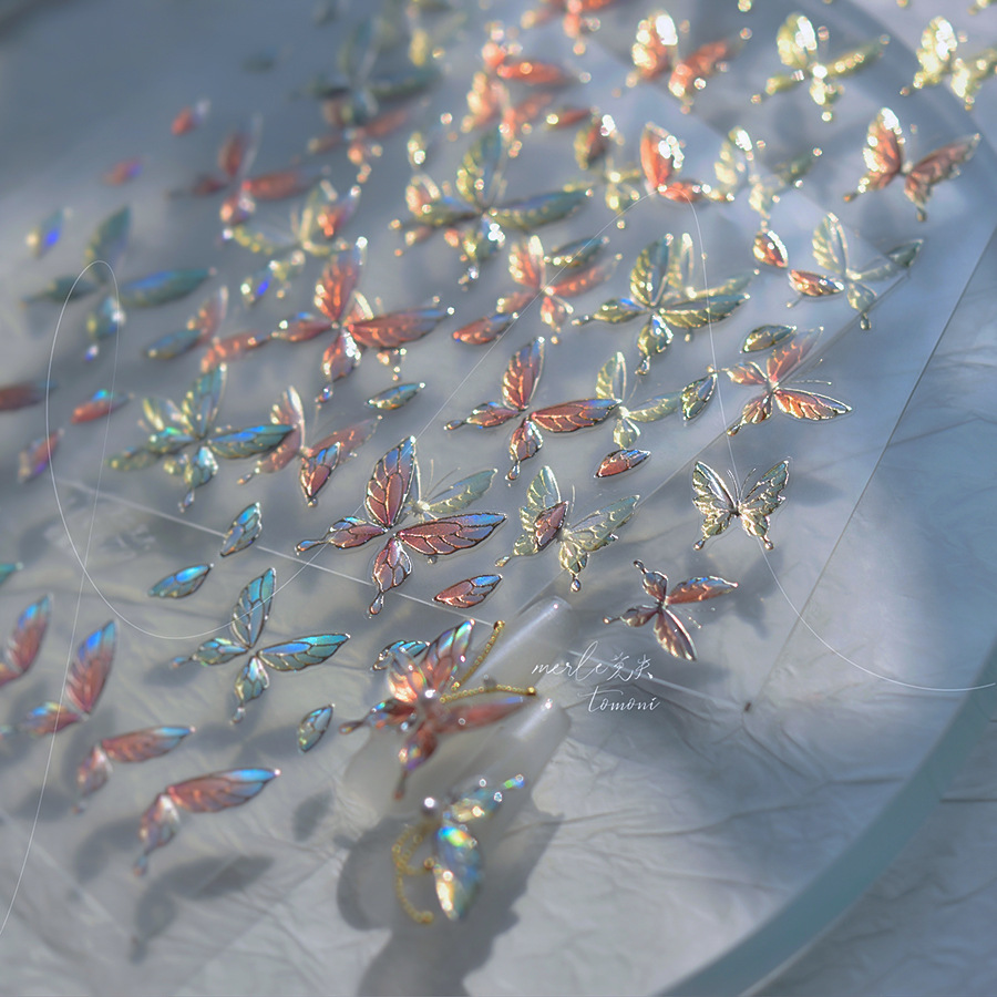 Nuevos pegatinas de manicuras de gelatina no se pierdan en cooperación con pequeños libros rojos explosivos en pegatinas de uñas de mariposa de color