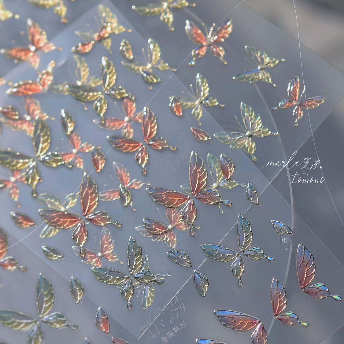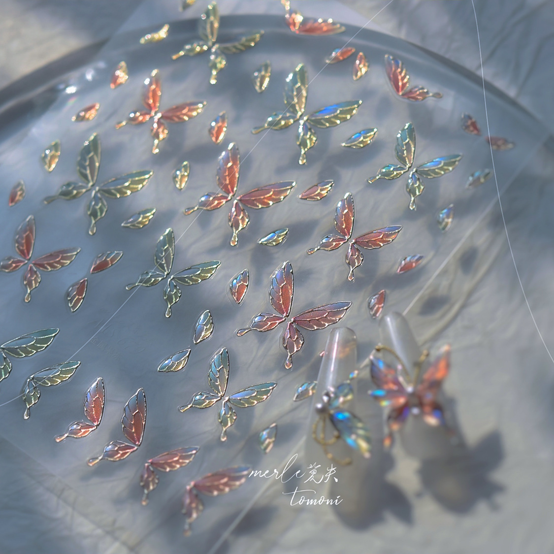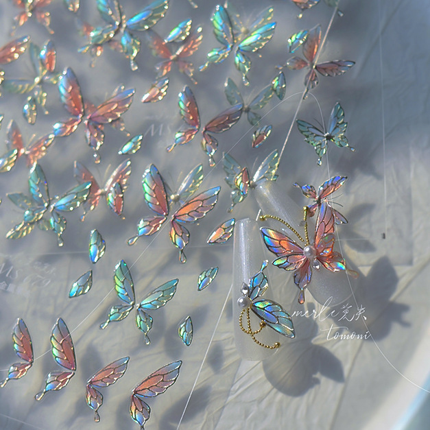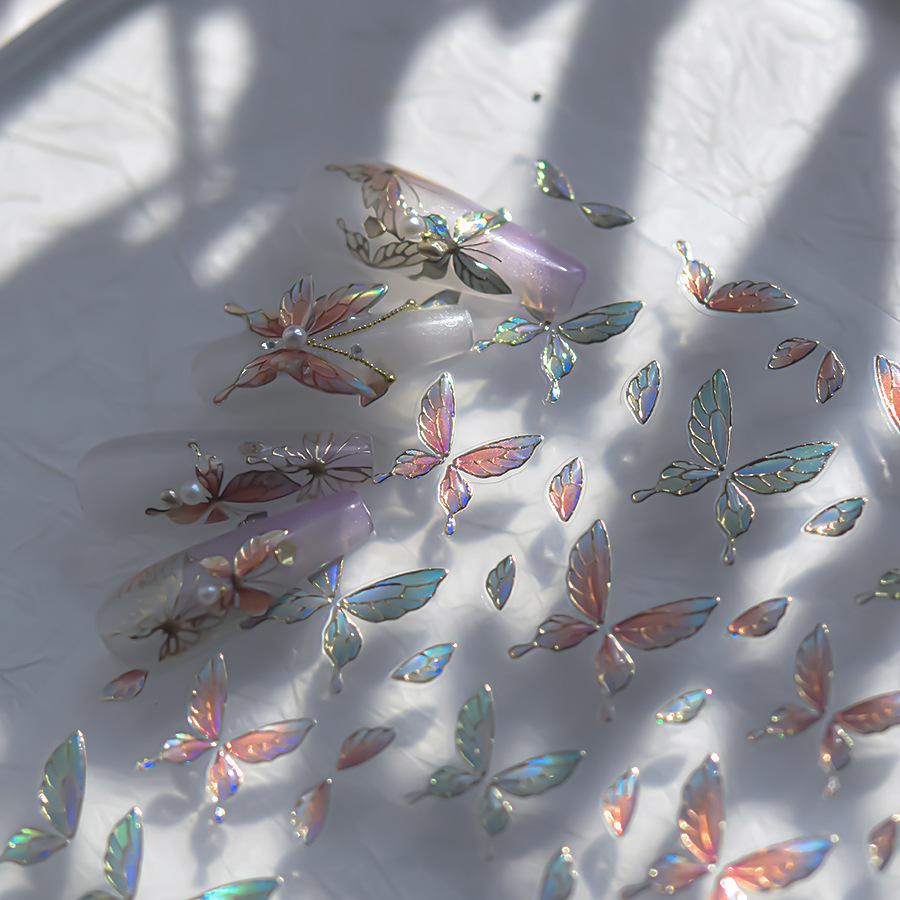 Nuevos pegatinas de manicuras de gelatina no se pierdan en cooperación con pequeños libros rojos explosivos en pegatinas de uñas de mariposa de color