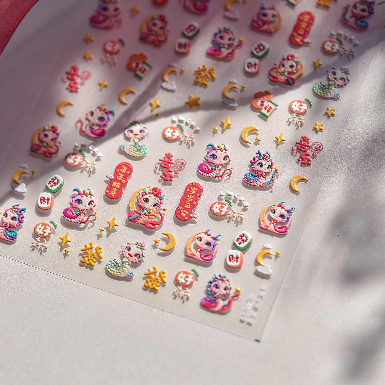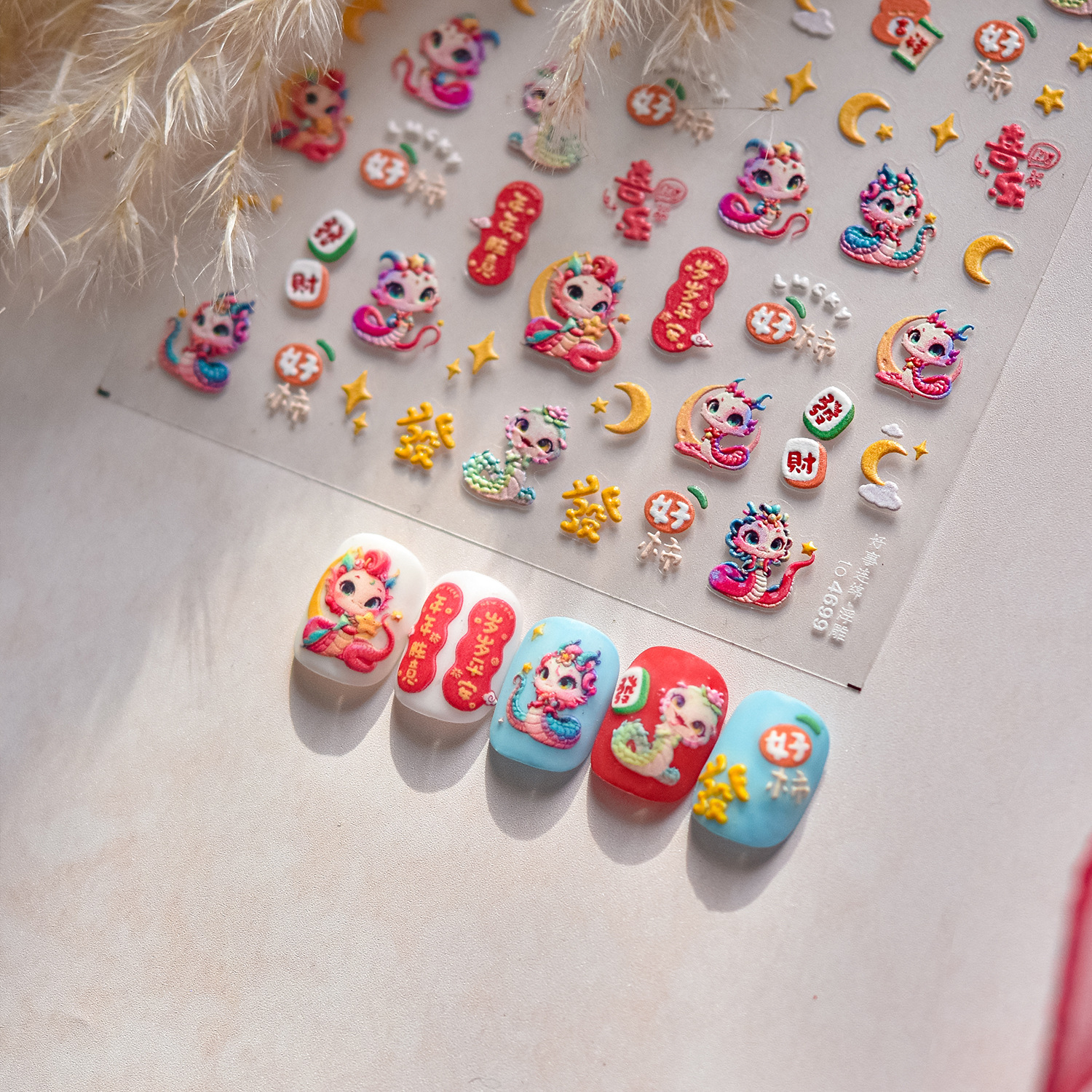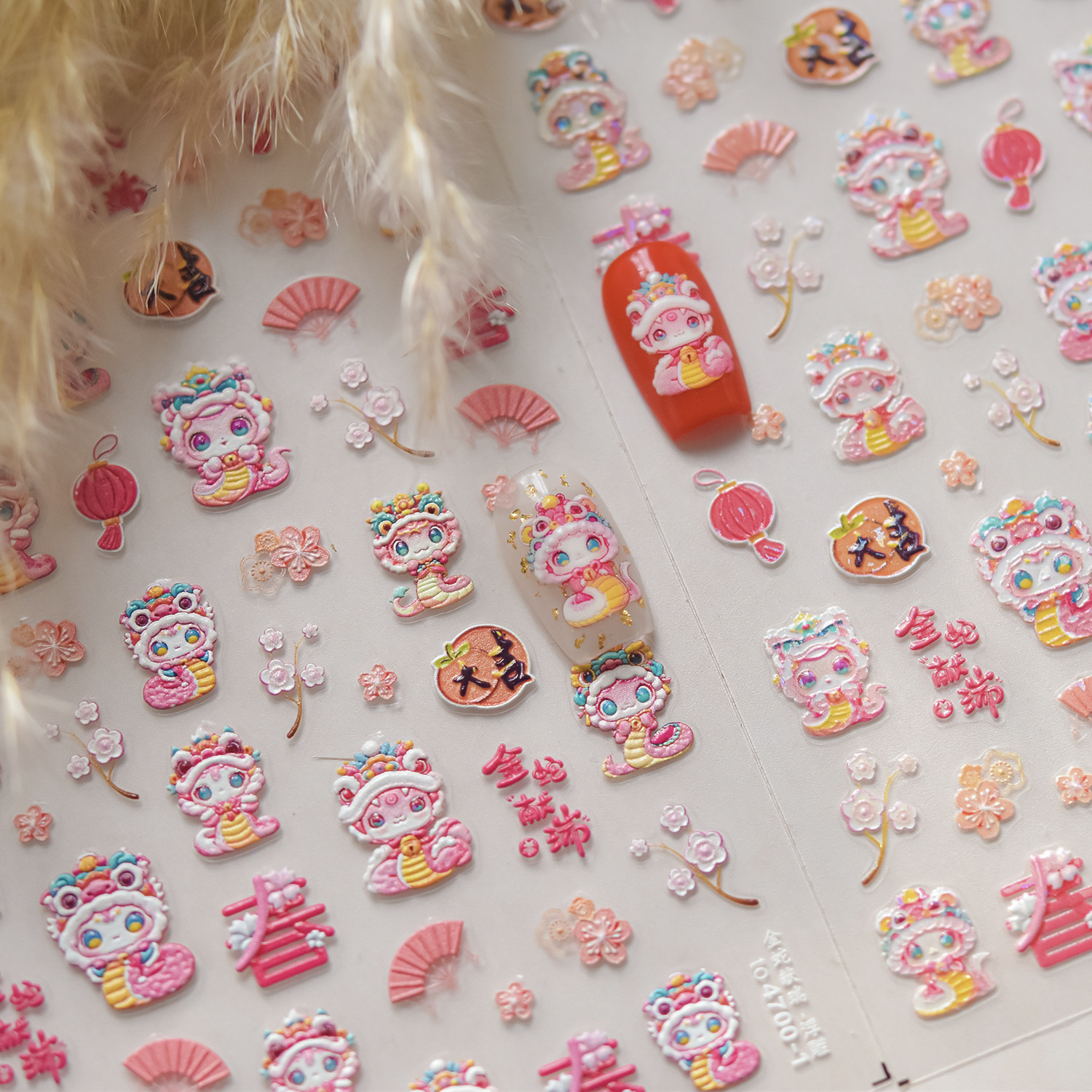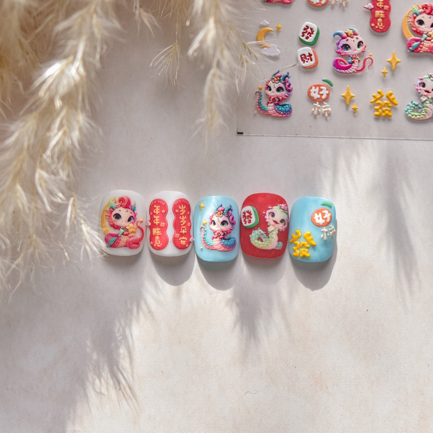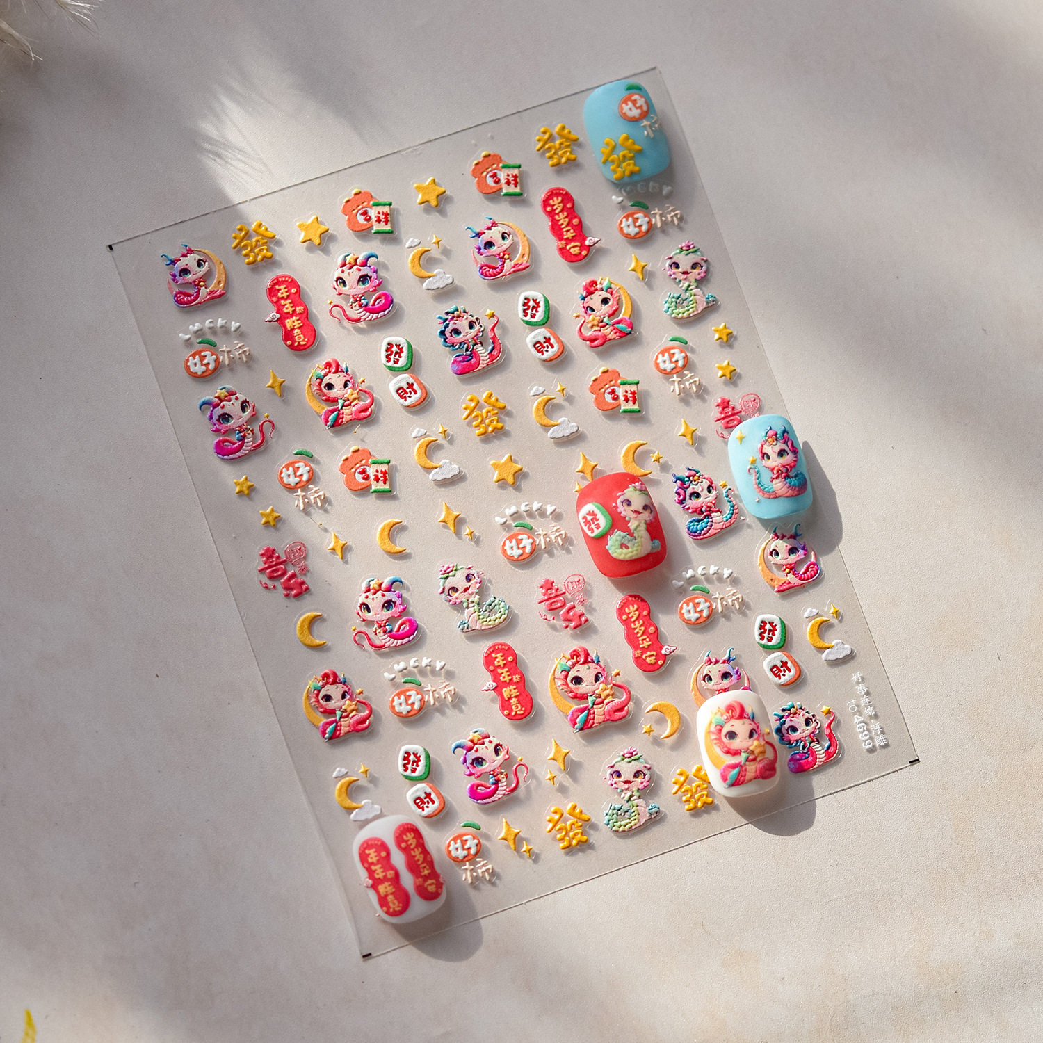 Manicure nuevo relieve manicure pegatinas explosivo serpiente papelería pegatinas de uñas retro pegatinas feliz año de la serpiente al por mayor