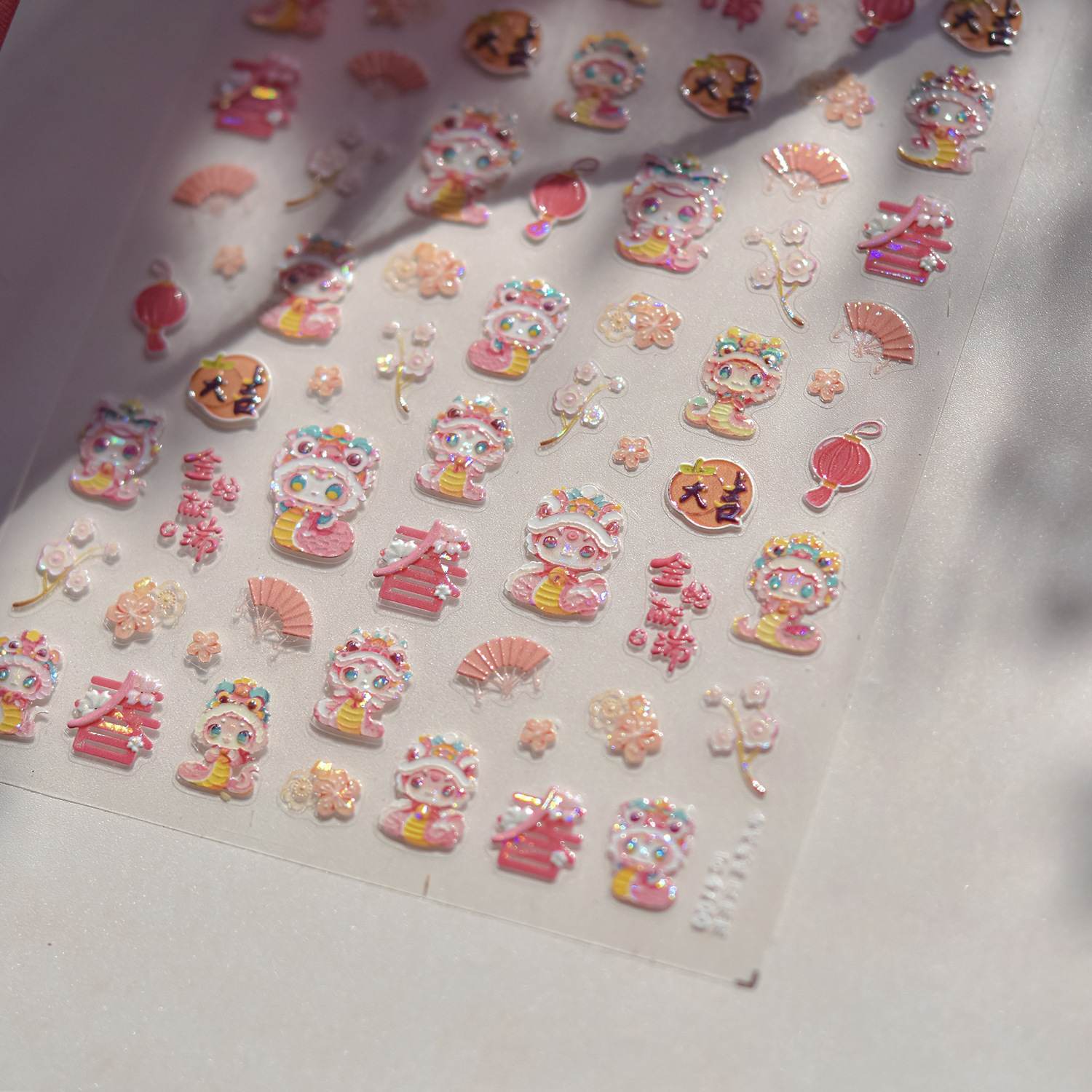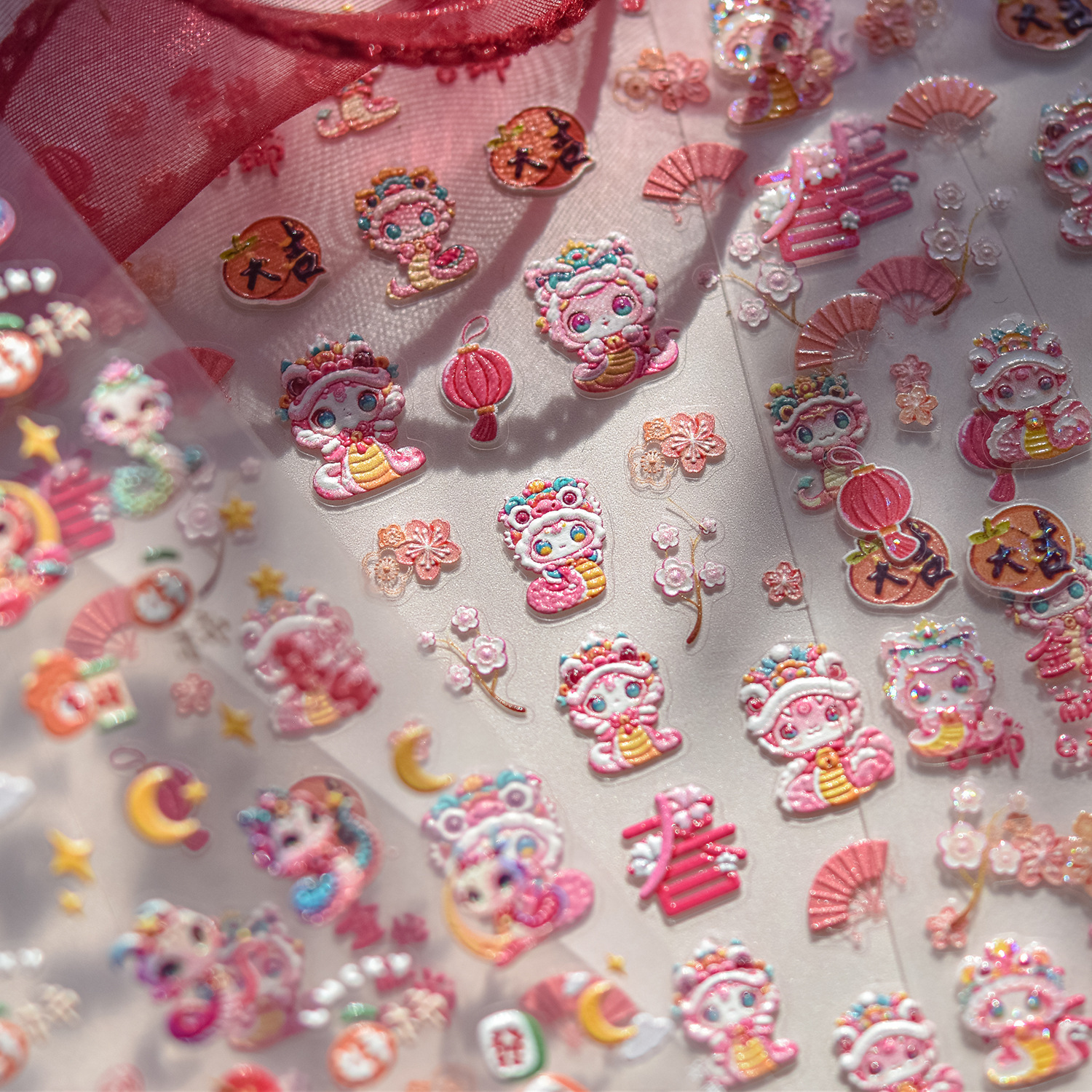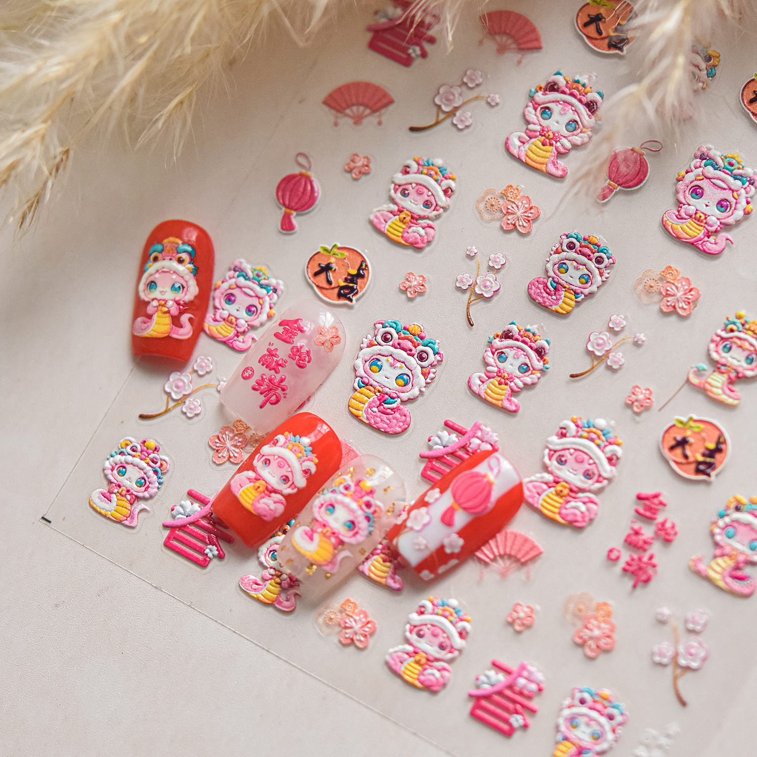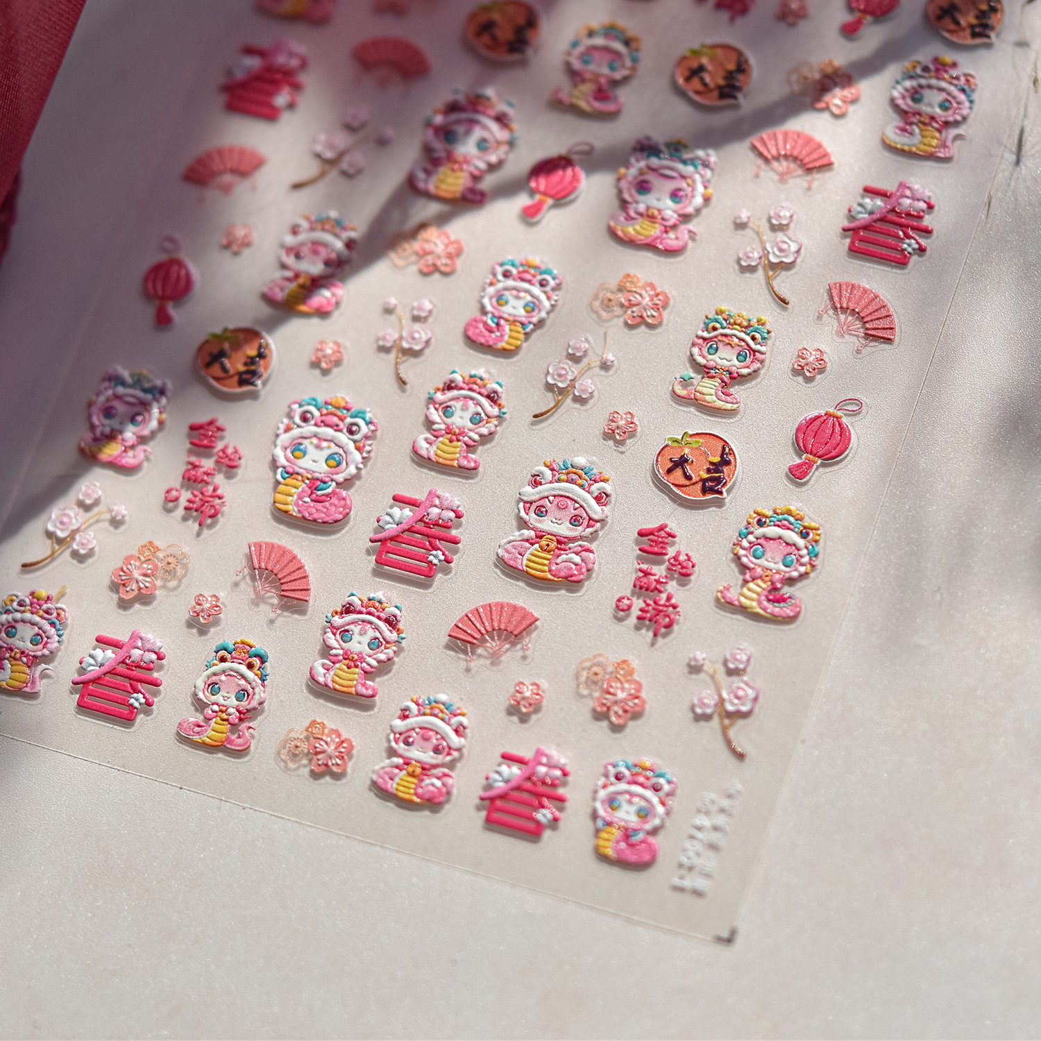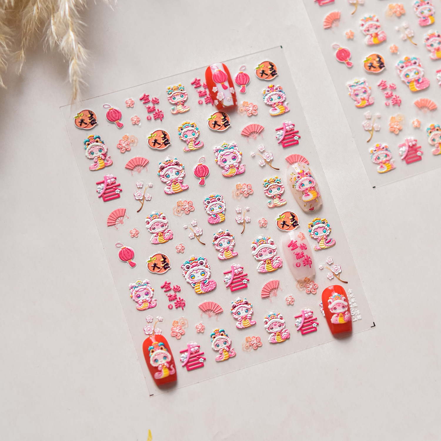 Manicure nuevo relieve manicure pegatinas explosivo serpiente papelería pegatinas de uñas retro pegatinas feliz año de la serpiente al por mayor