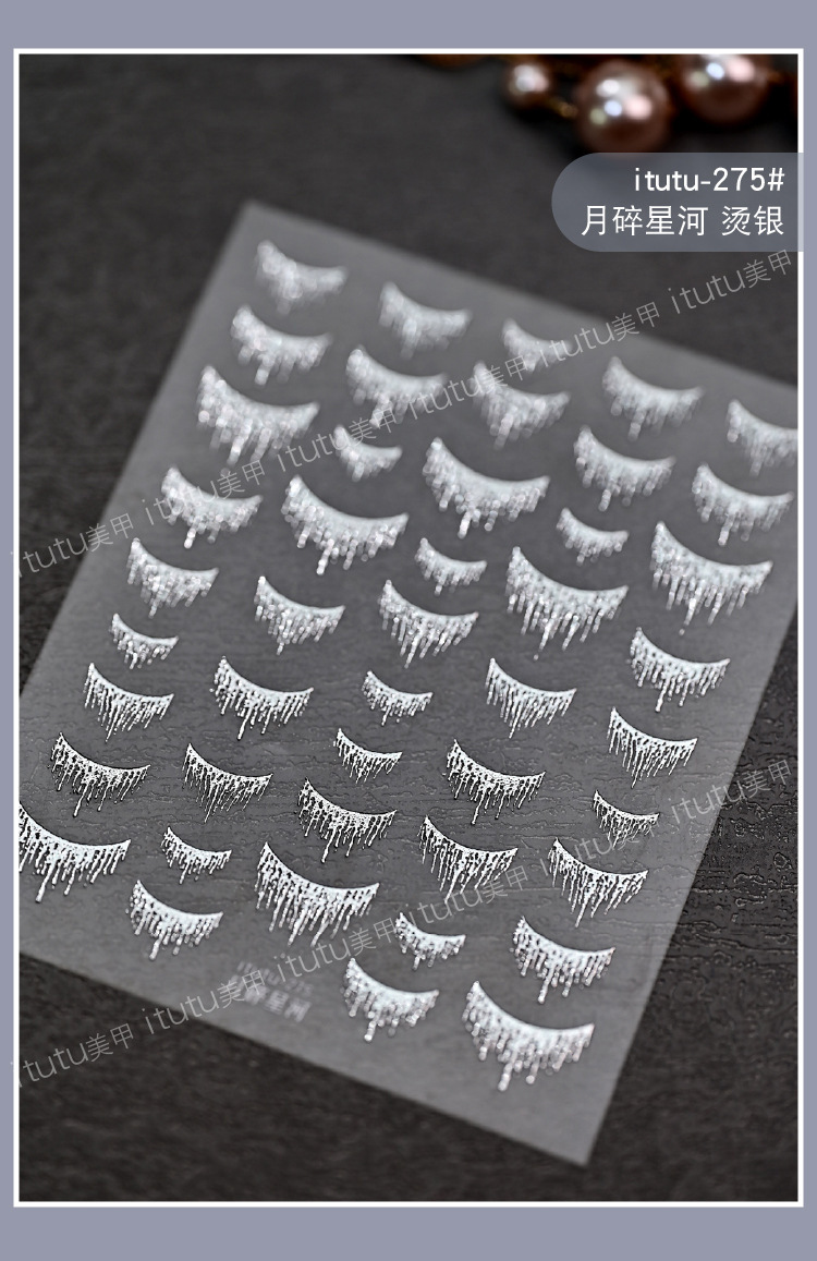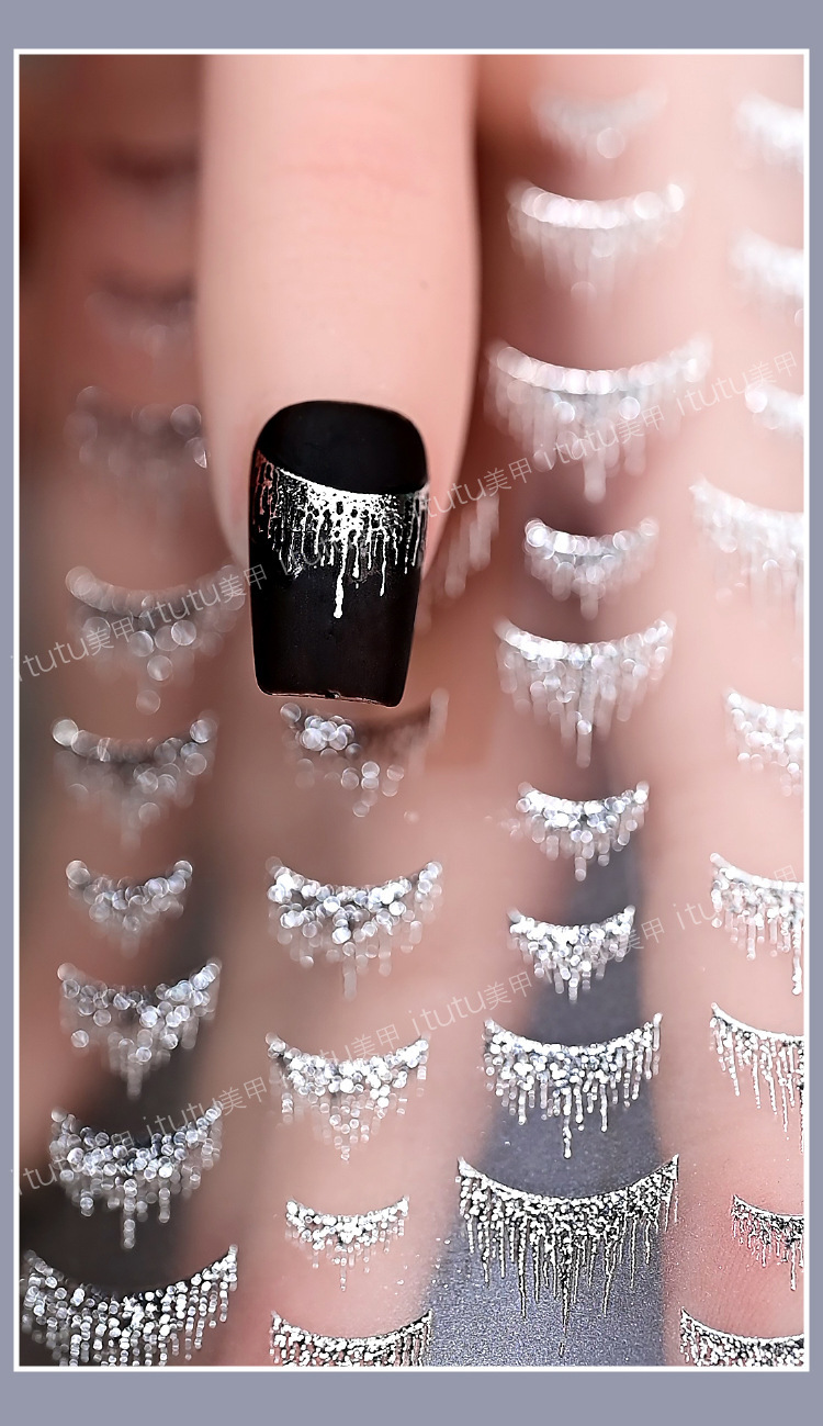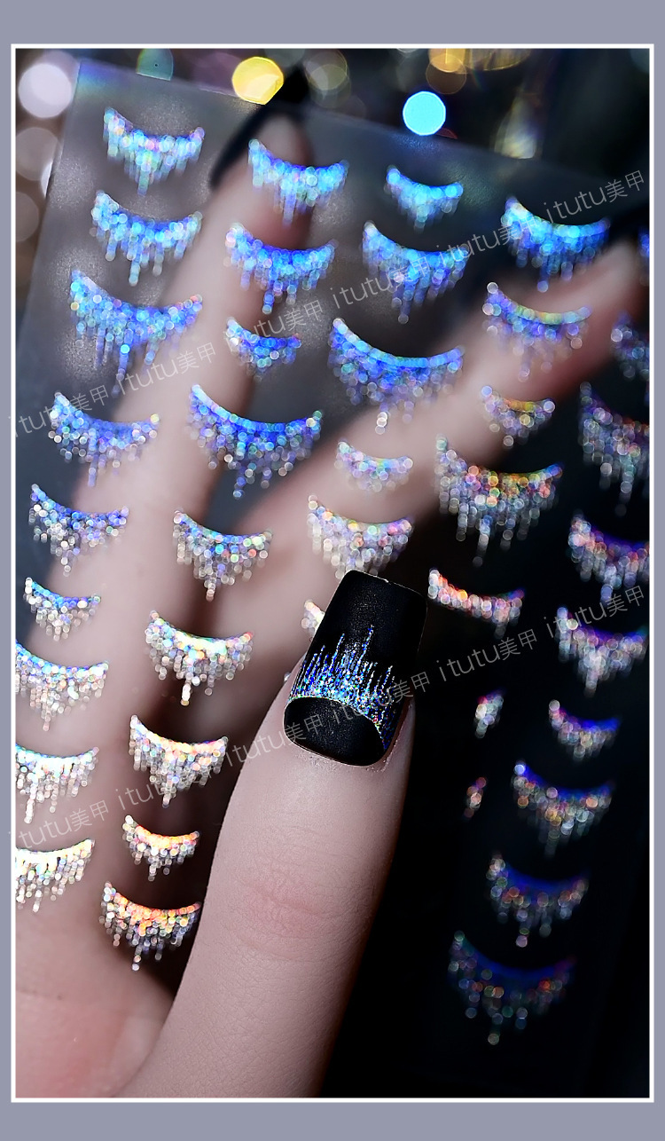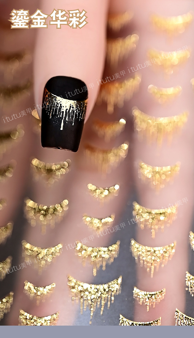 Artículo de uñas nuevo pegatinas de estampado de oro brillante estampado de uñas estampado de oro años de polvo láser estampado de plata bordilla al por mayor