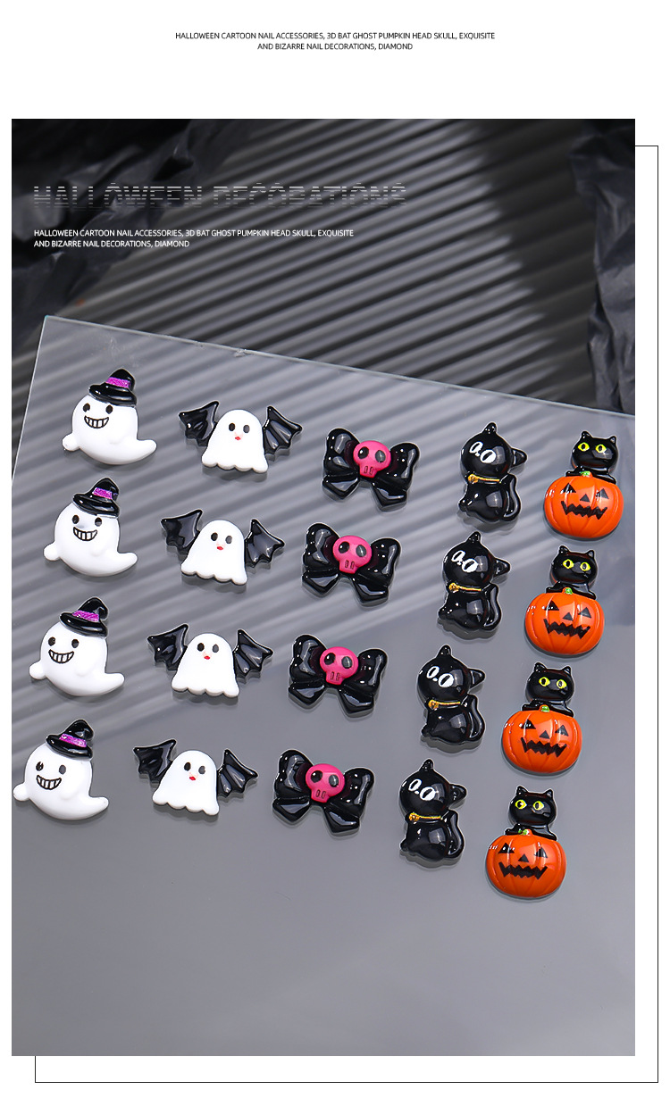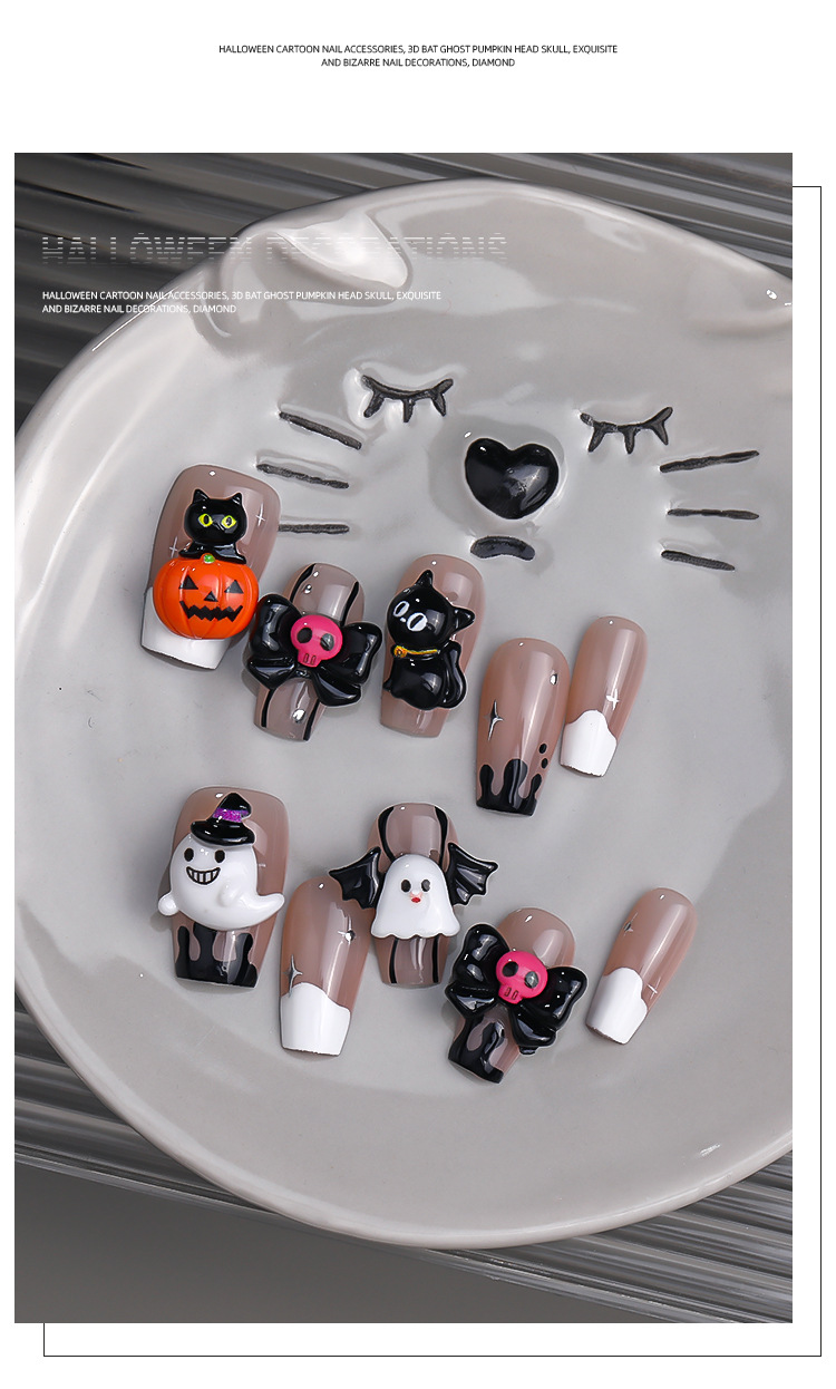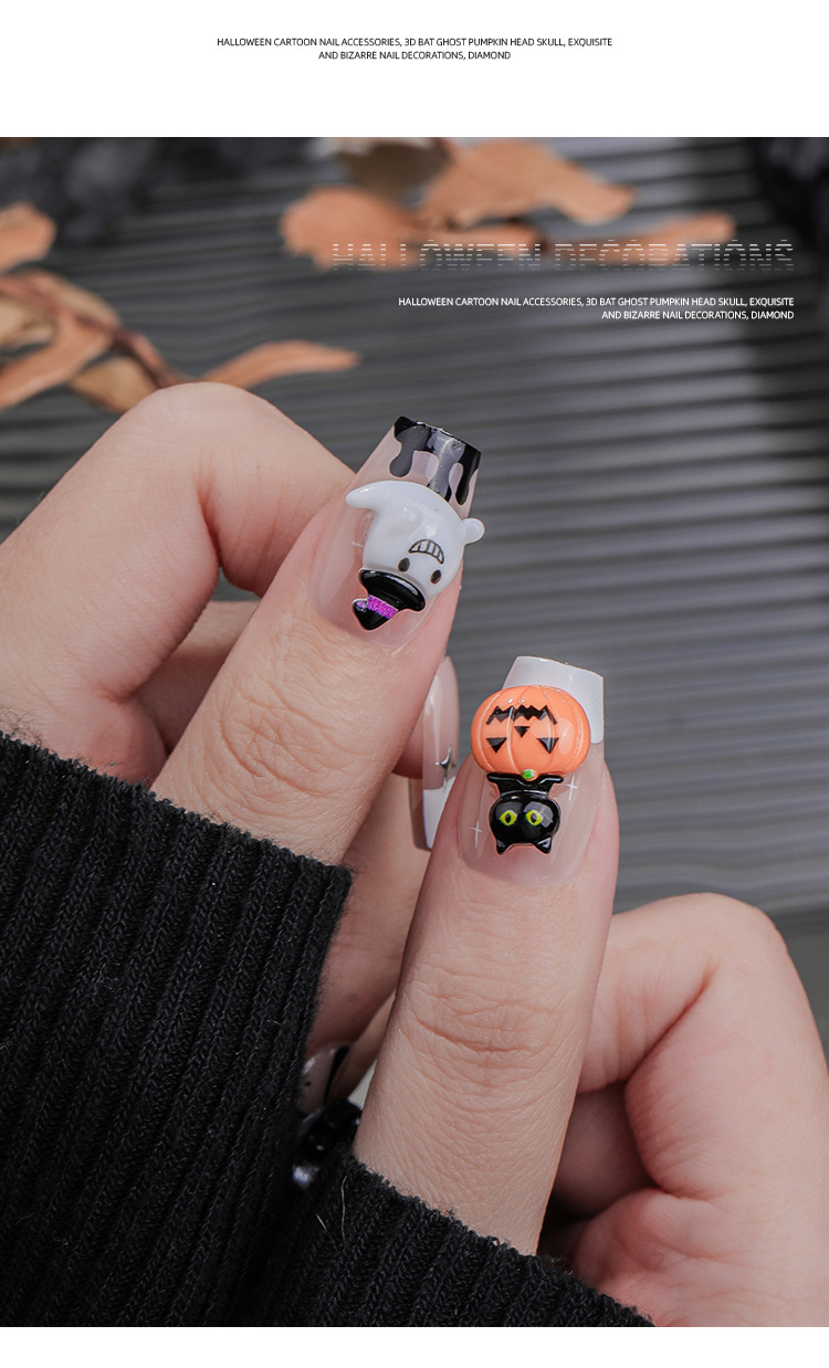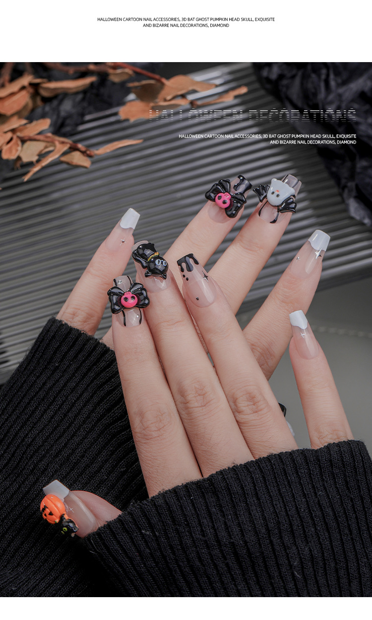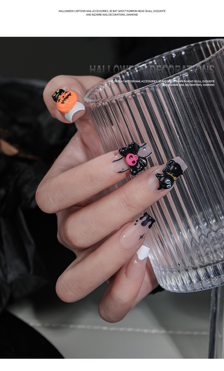 Halloween murciélago estereoscópico fantasma calabaza cabeza esqueleto dibujos animados joyas de manicura exquisitas curiosas ornamentos de uñas