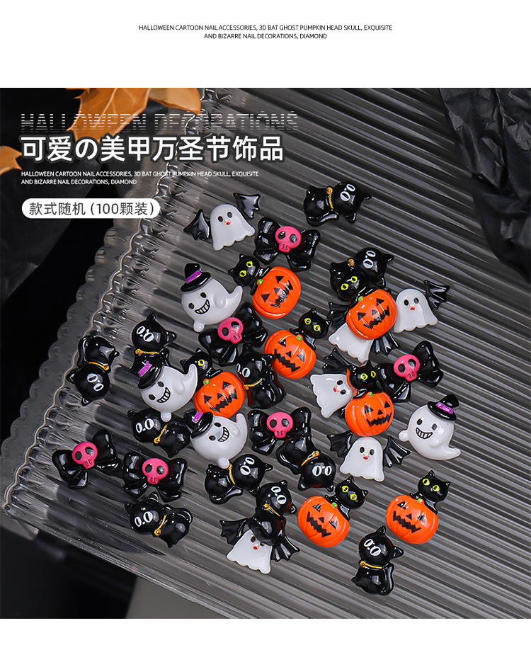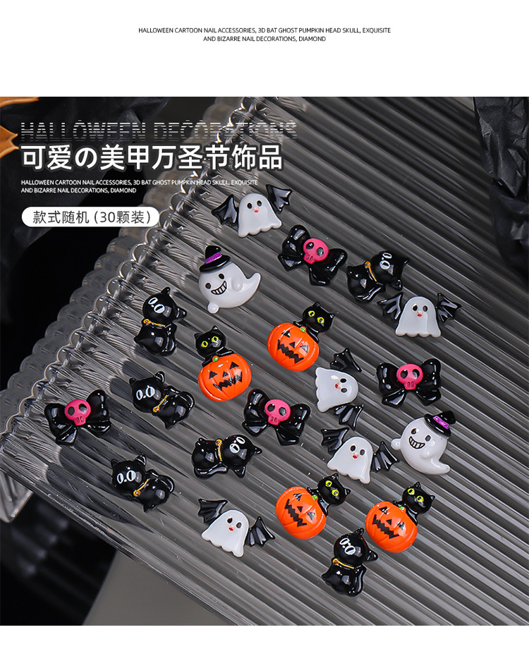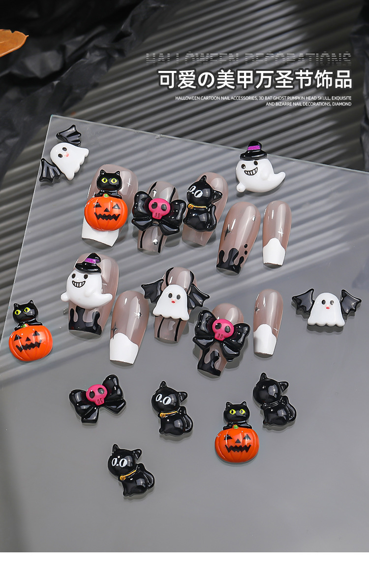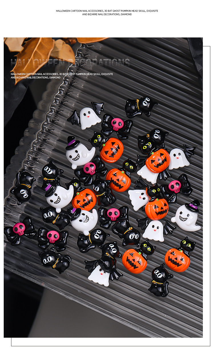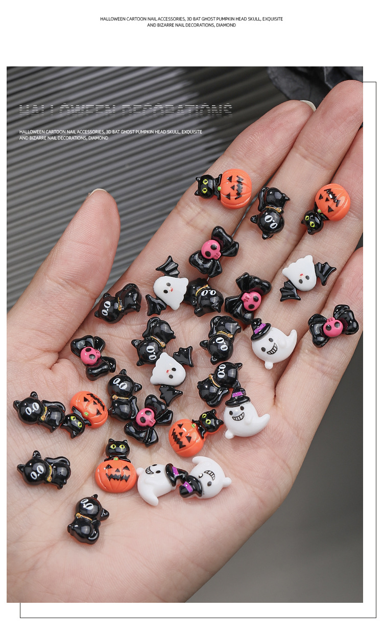 Halloween murciélago estereoscópico fantasma calabaza cabeza esqueleto dibujos animados joyas de manicura exquisitas curiosas ornamentos de uñas