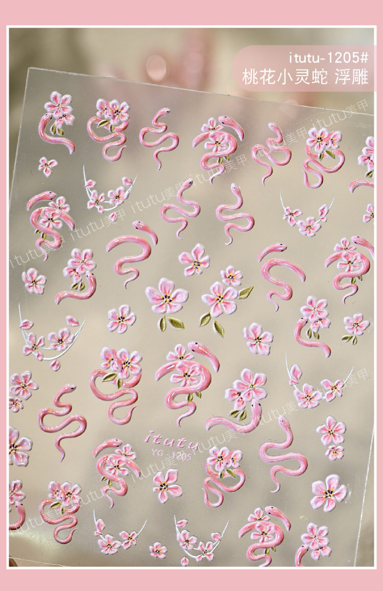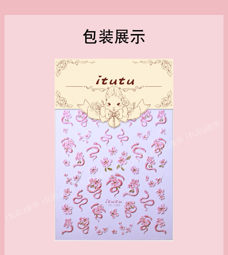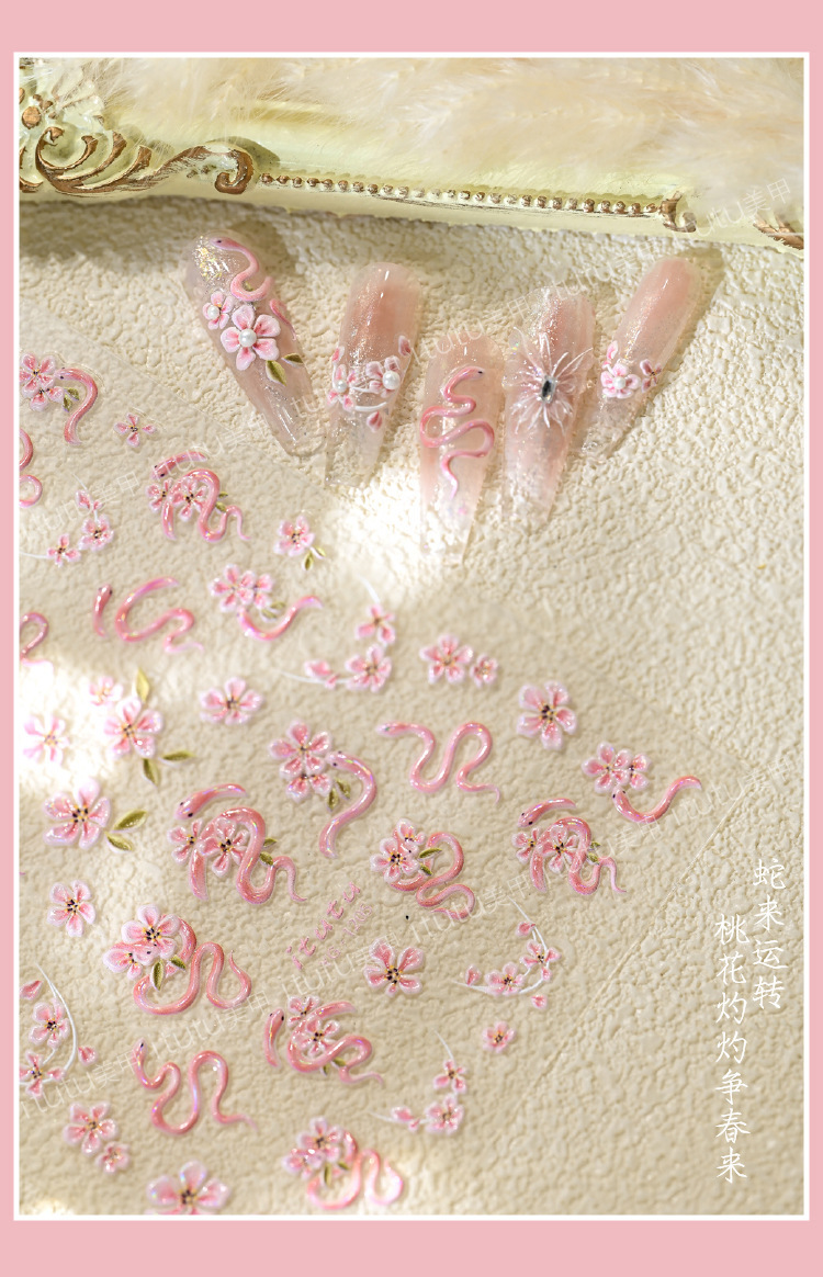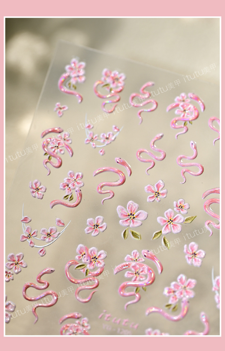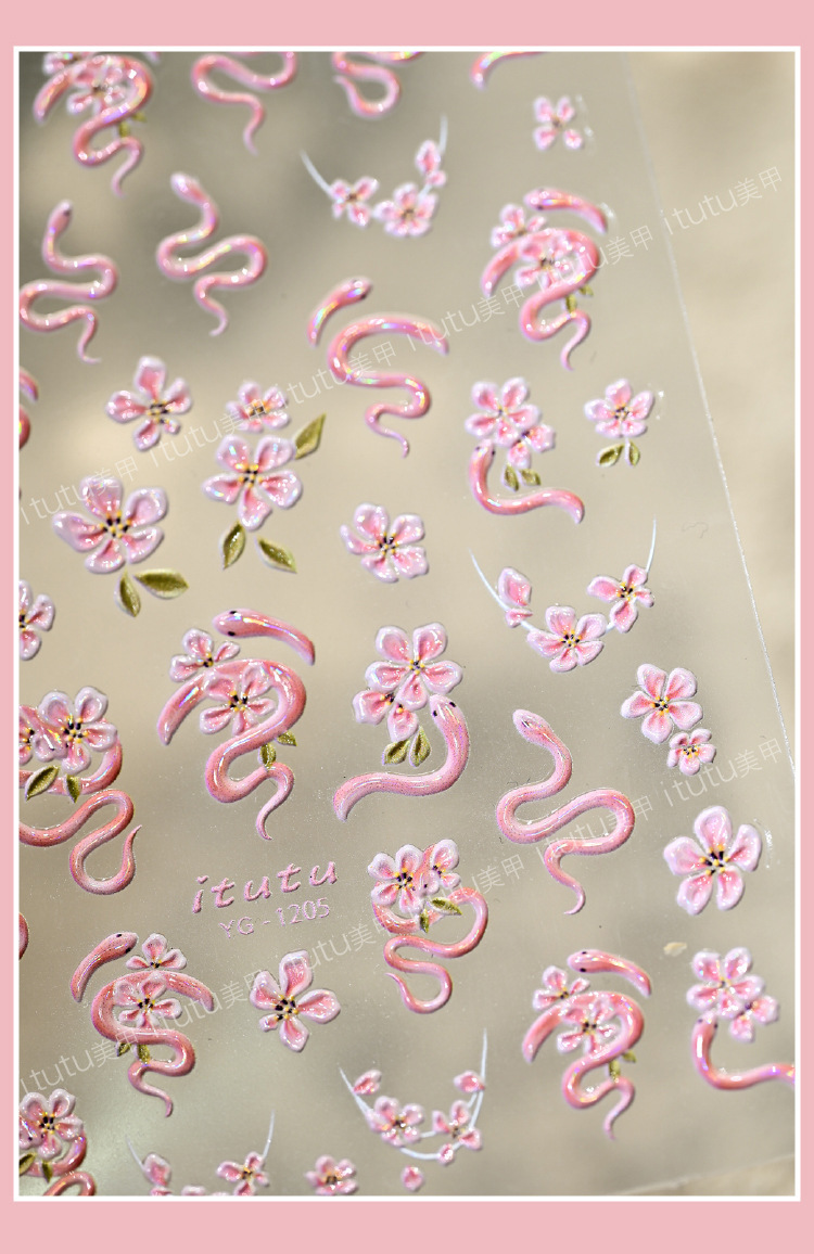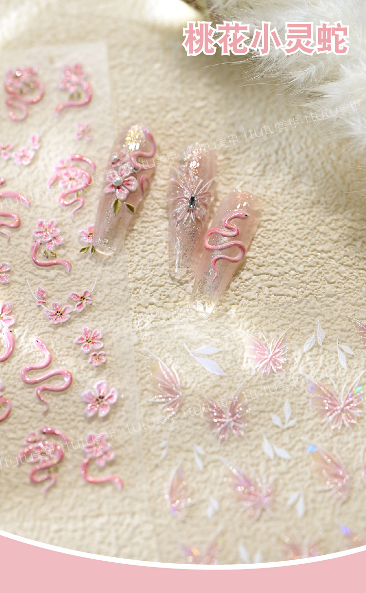 Nuevos pegatinas en relieve de manicuras de flores rosadas, mariposa de polvo, mariposa, concha, pequeño patrón de luz