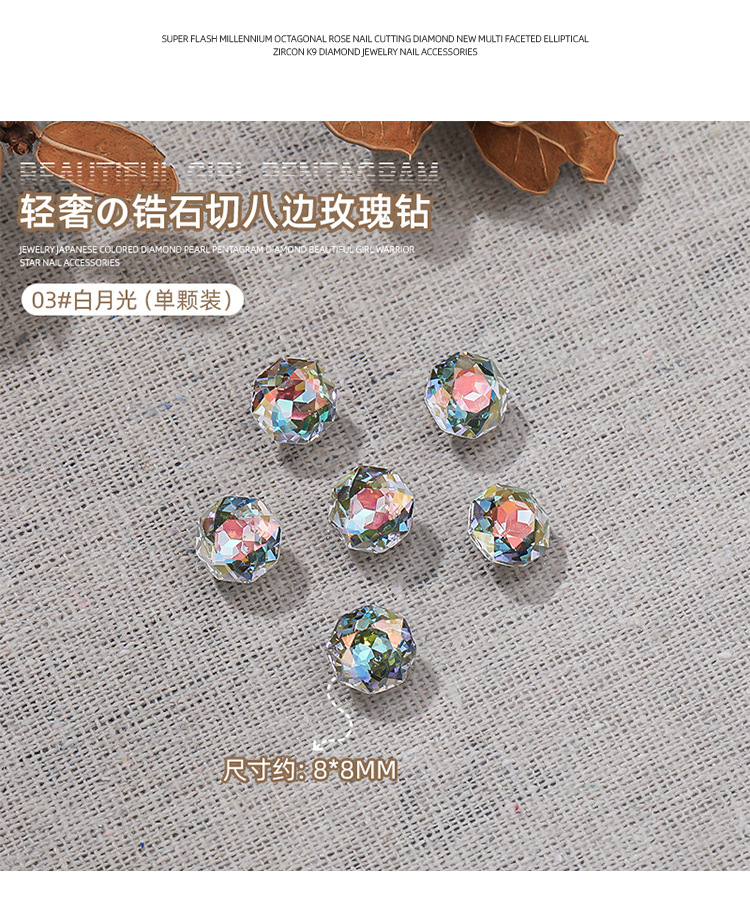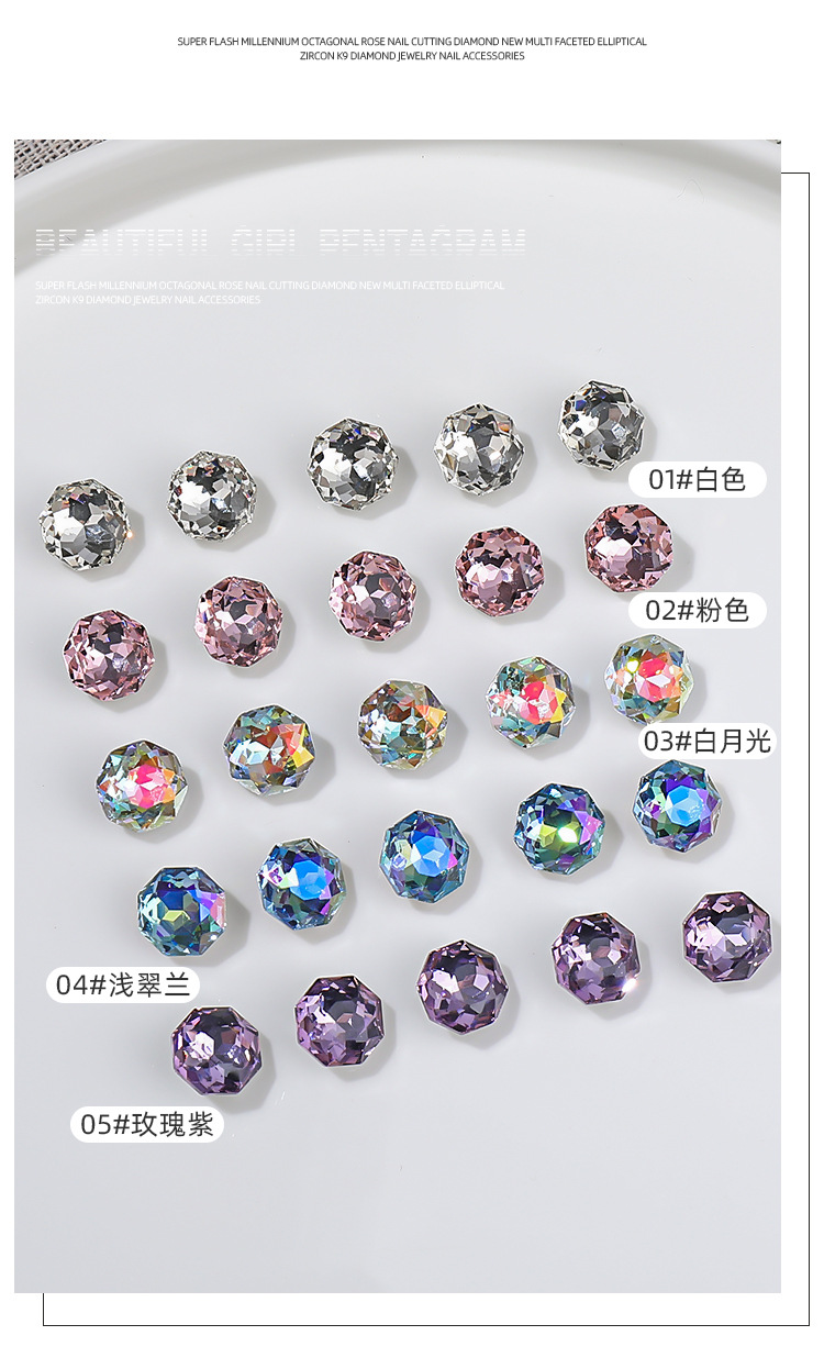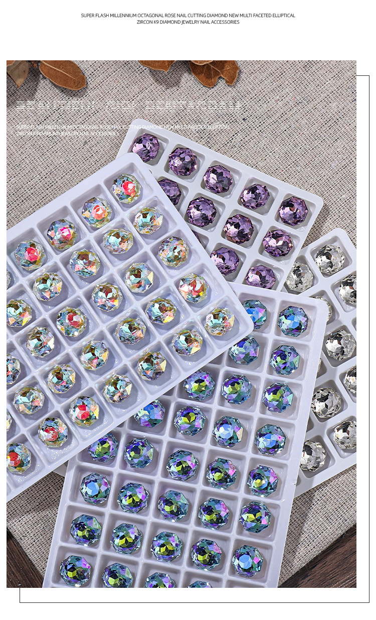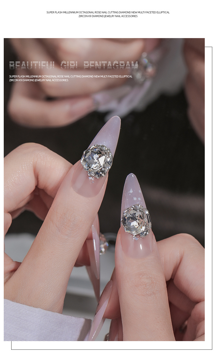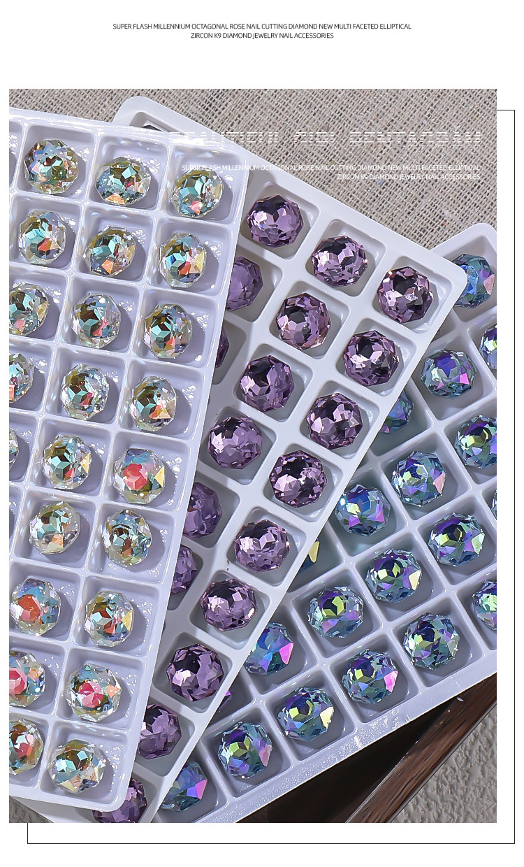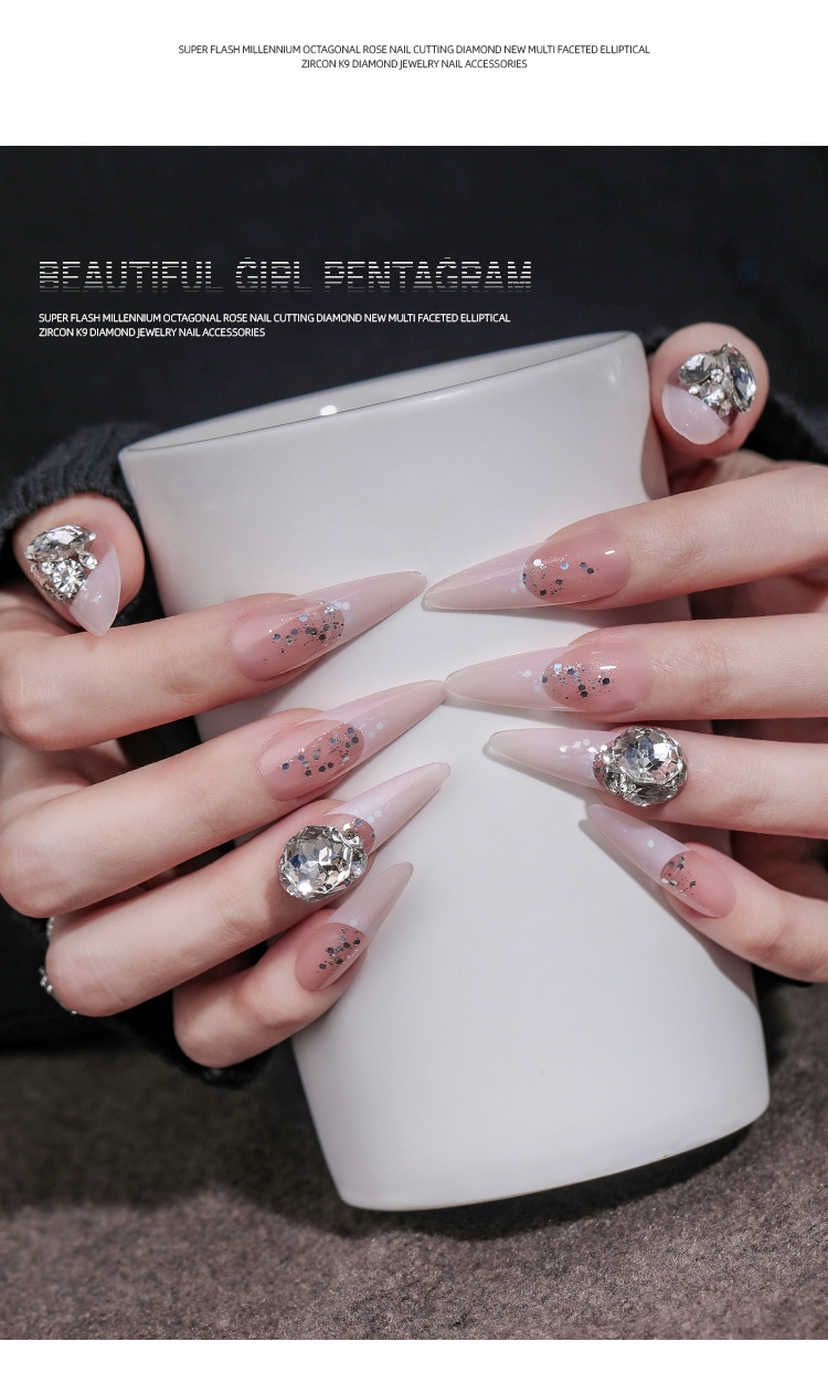 Nuevo multi-sección elíptica zircon K9 joyas de diamante ultra brillante milenio de ocho lados rosa manicura taladro accesorios de uñas
