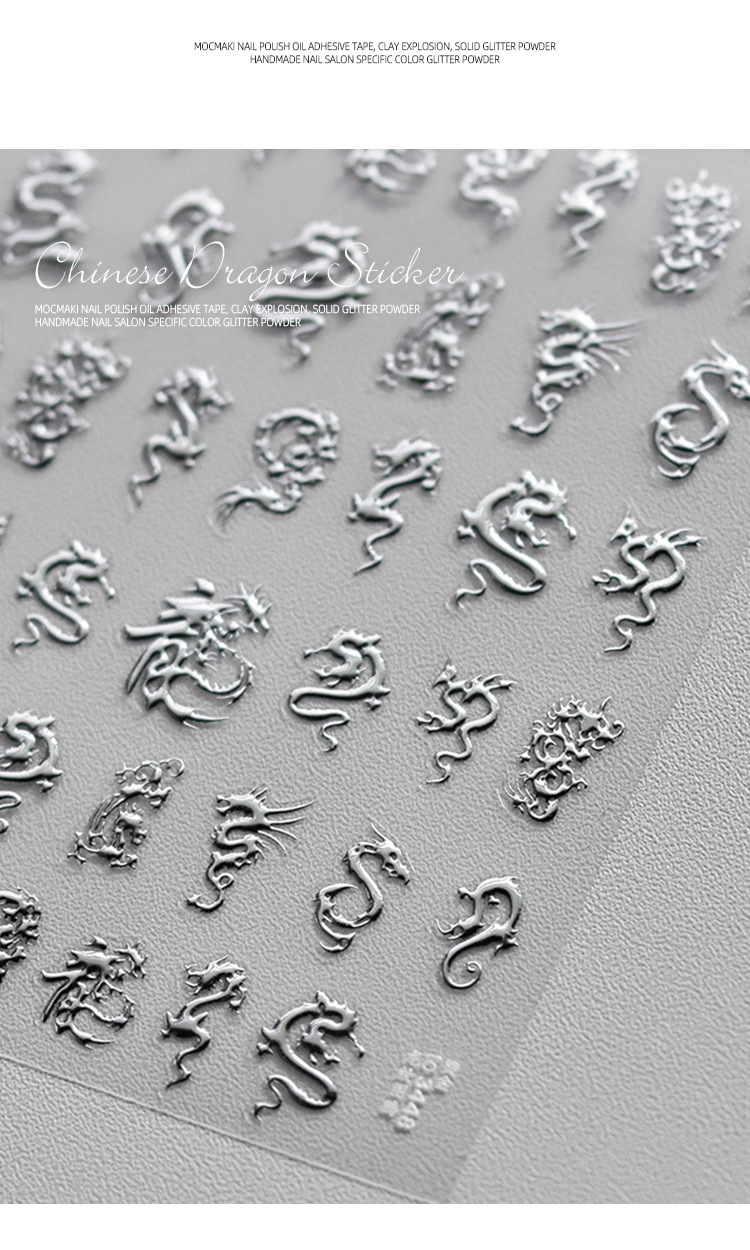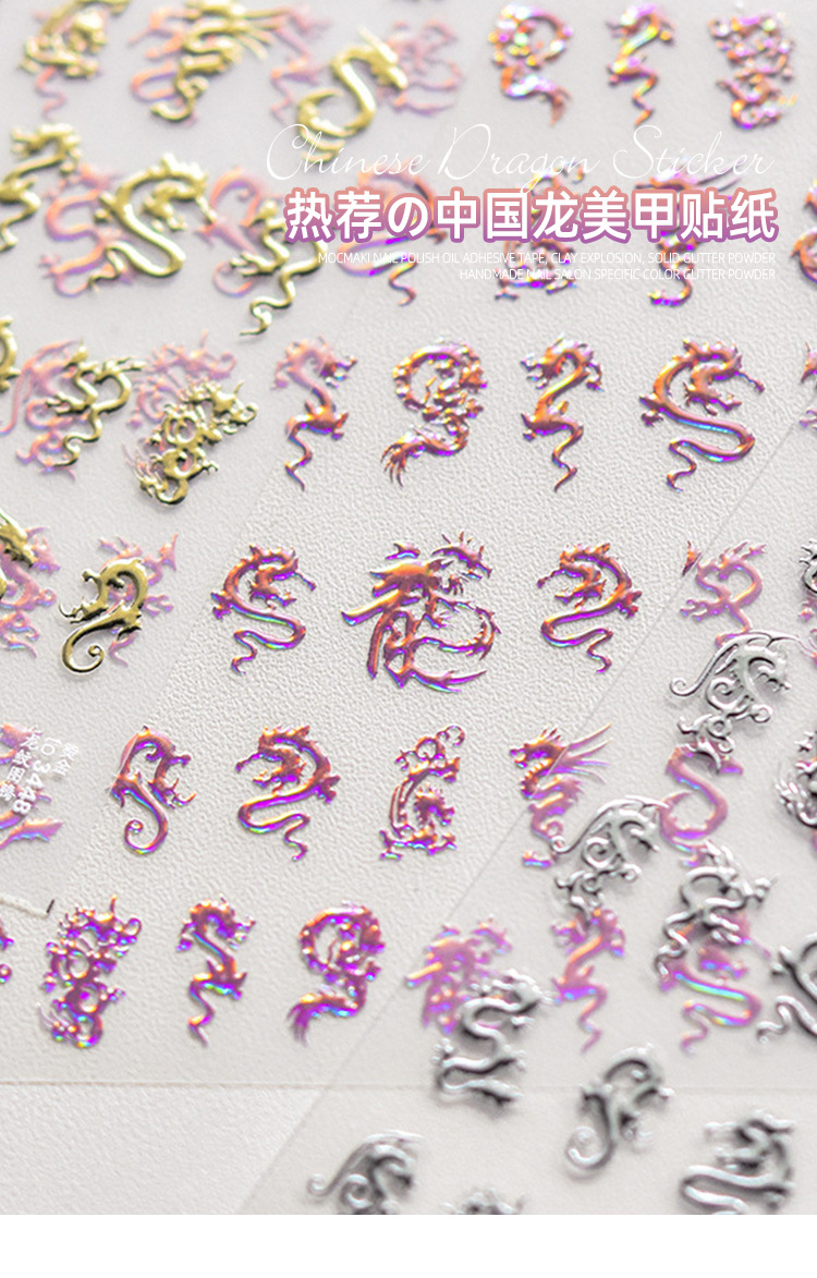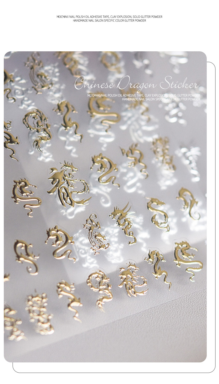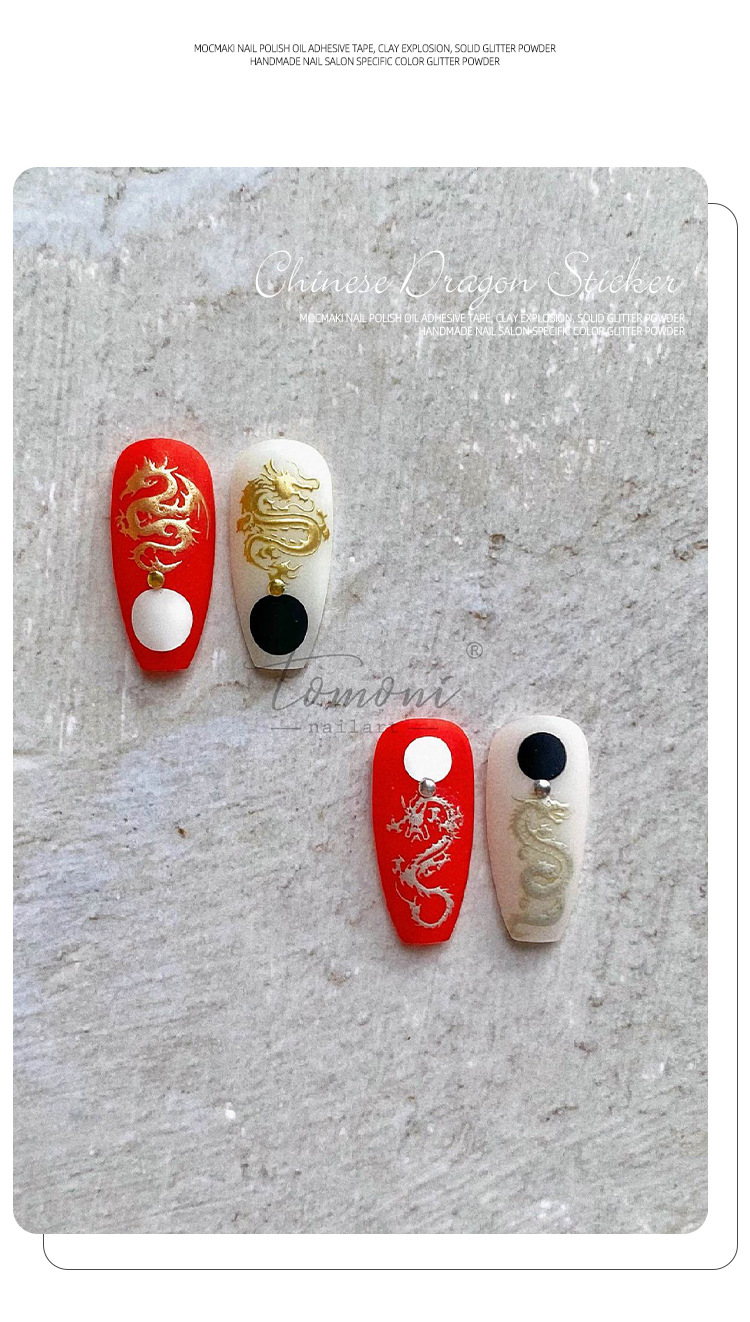 2024 Año Nuevo en forma de dragón pegatinas de uñas Estilo nacional color bronceado patrón de dragón de plata moda nacional estilo antiguo decoración de uñas calcomanías