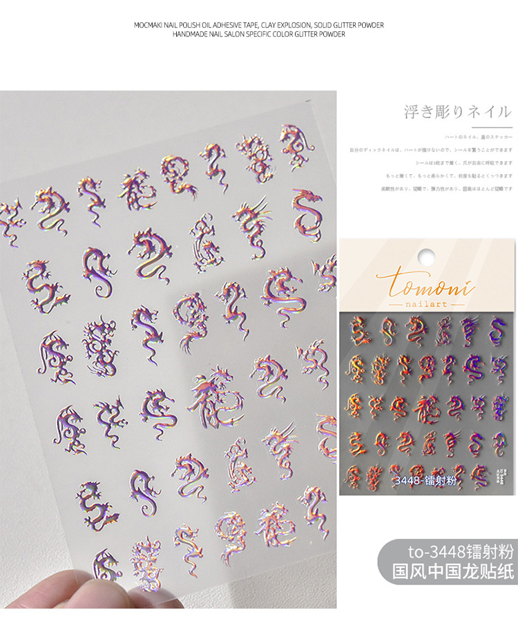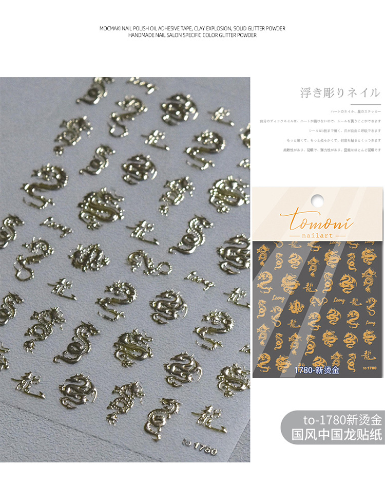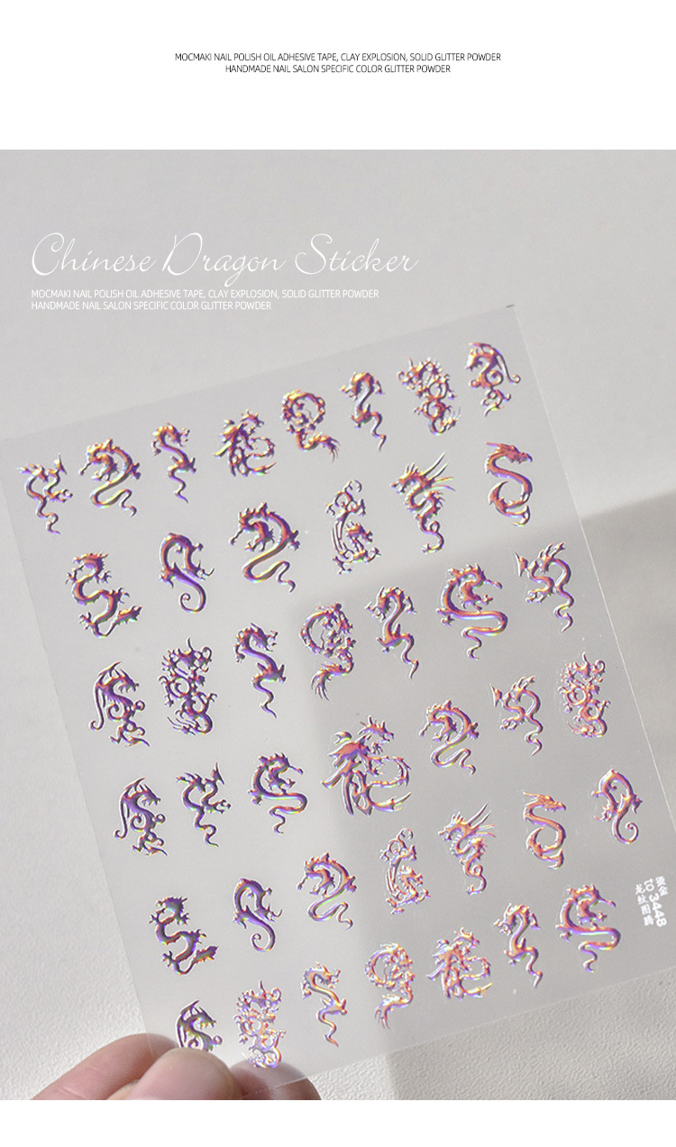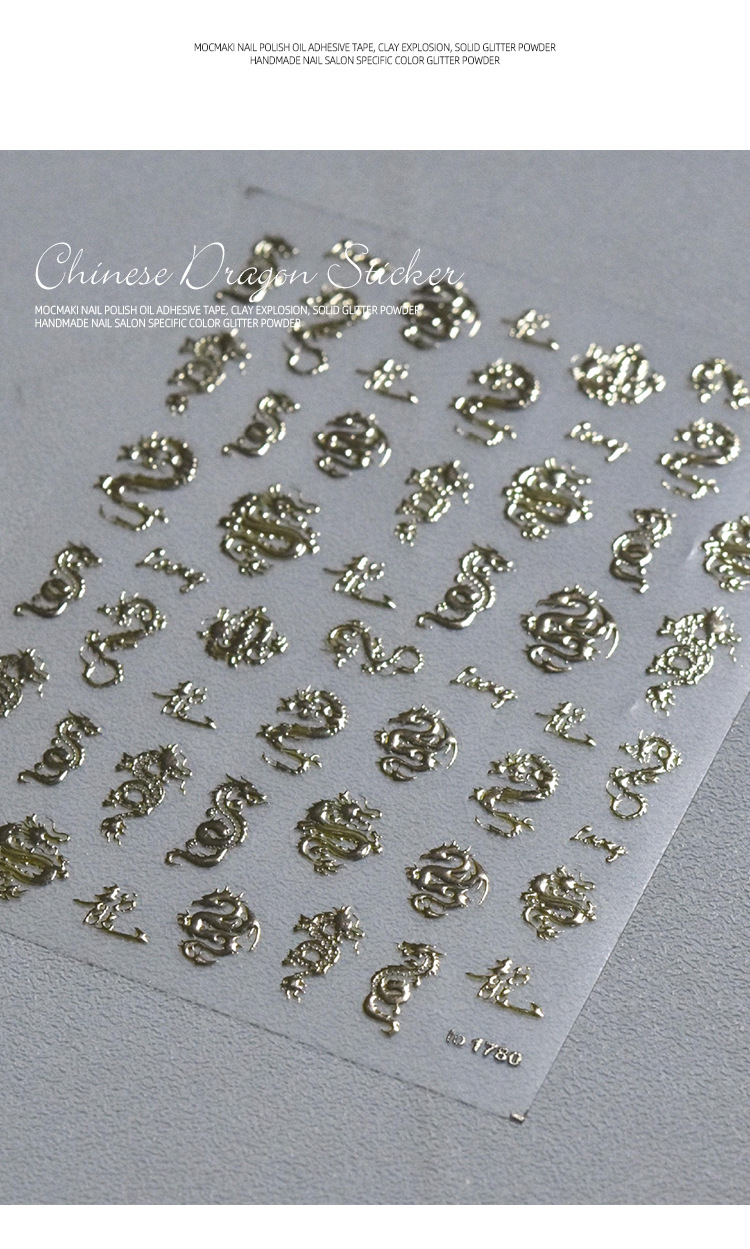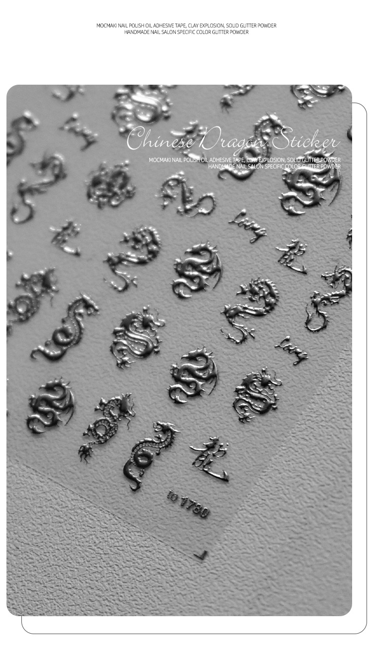 2024 Año Nuevo en forma de dragón pegatinas de uñas Estilo nacional color bronceado patrón de dragón de plata moda nacional estilo antiguo decoración de uñas calcomanías