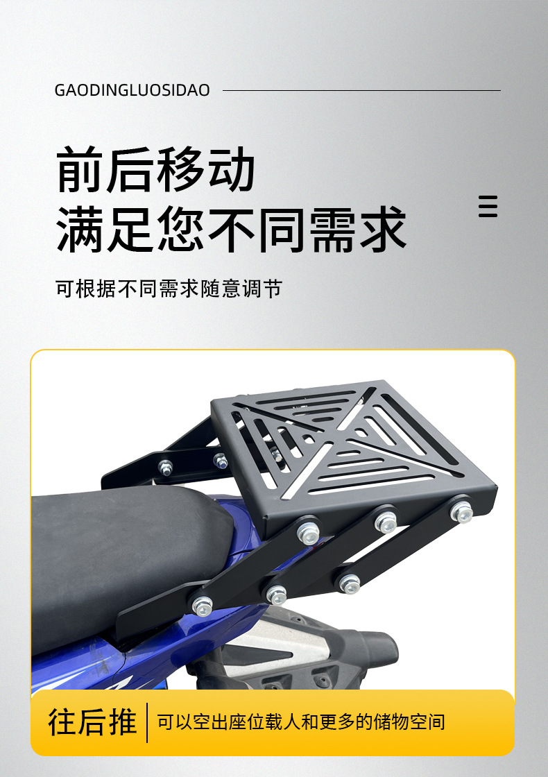 Frame móvil de desmontaje rápido delantero adaptado para el asiento trasero deslizante y plegable de la motocicleta Y15
