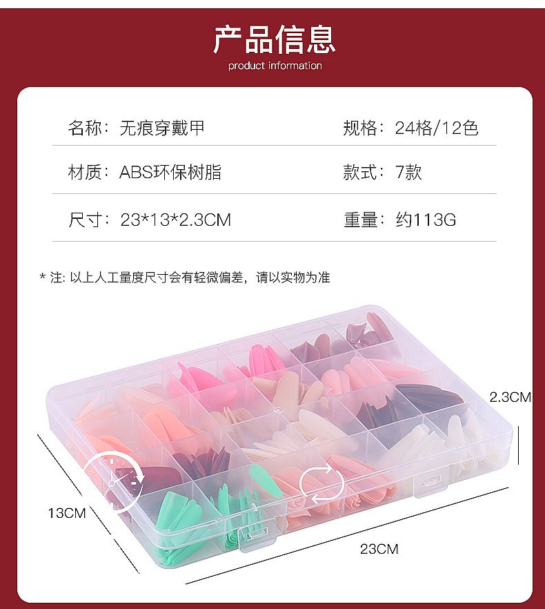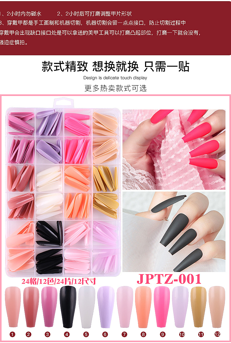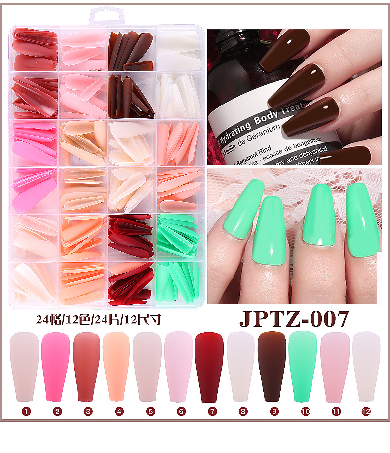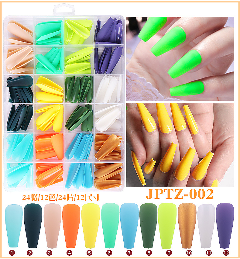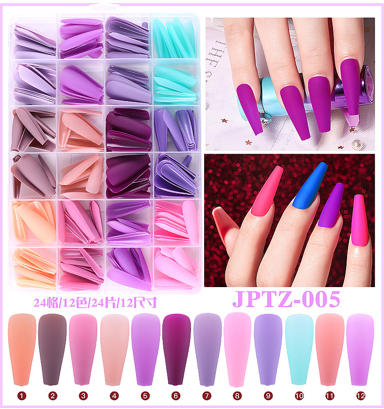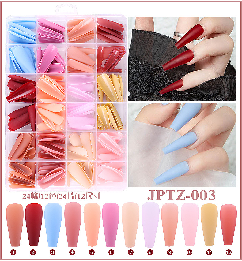 Venta caliente transfronteriza 288 piezas en forma de ballet en forma de caja portátil pieza de uñas color sólido esmerilado DIY portátil producto terminado al por mayor