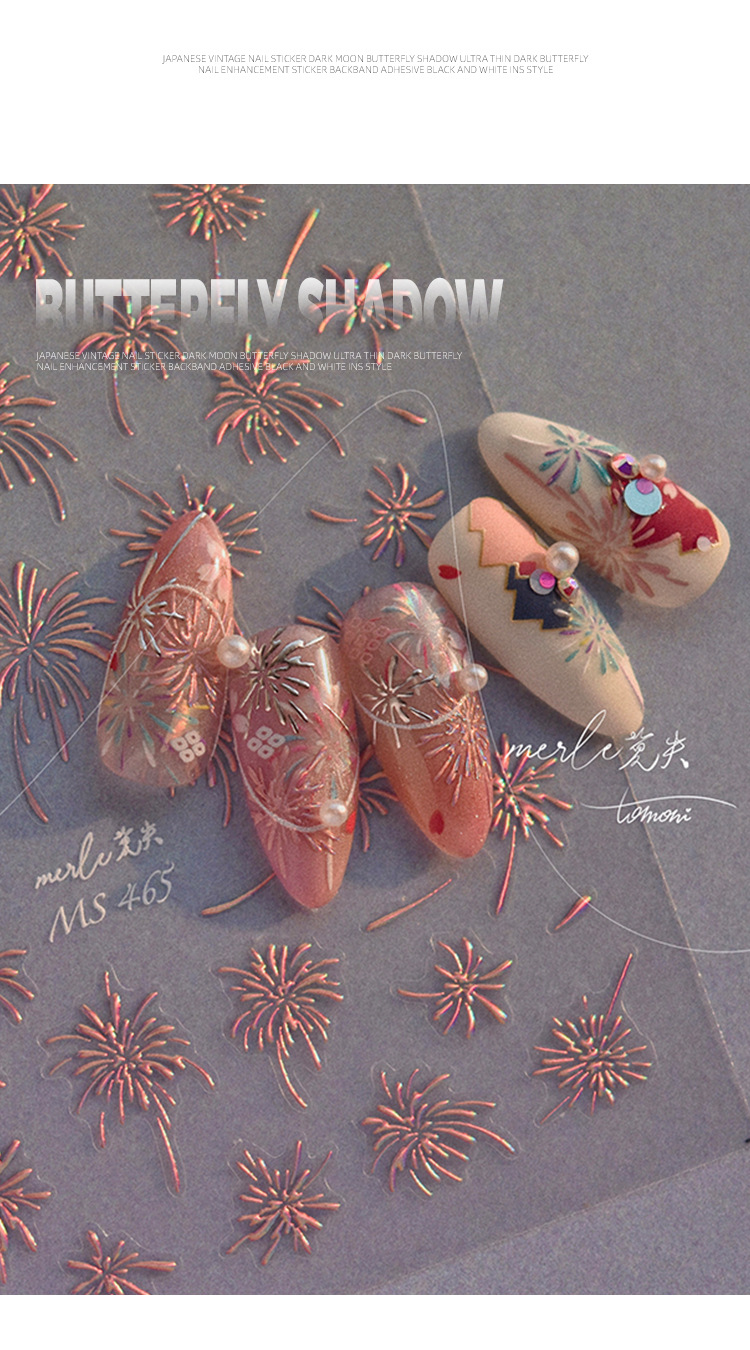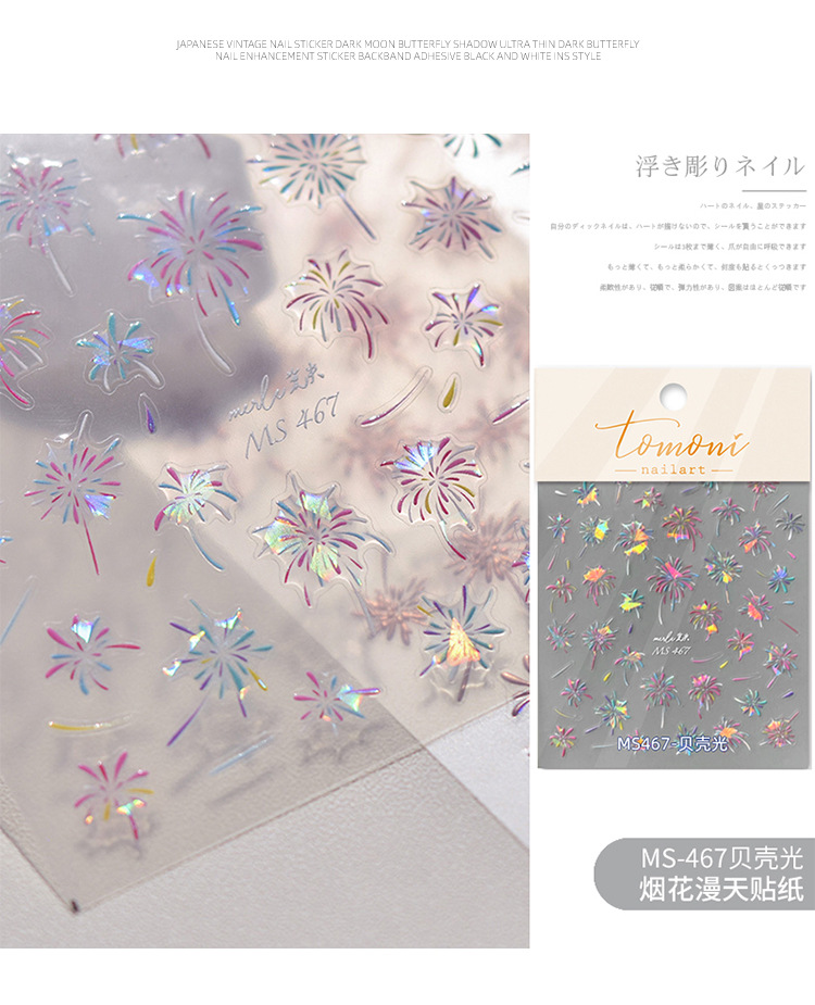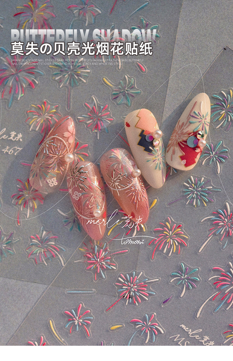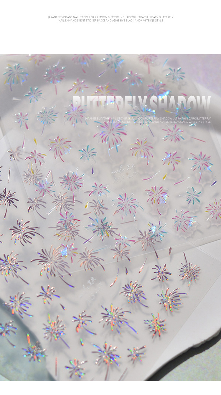 Fuegos artificiales pegatinas manicura en línea popular otoño e invierno tridimensional romántico hueco caliente colorido otoño e invierno manicura ojo de gato de cristal