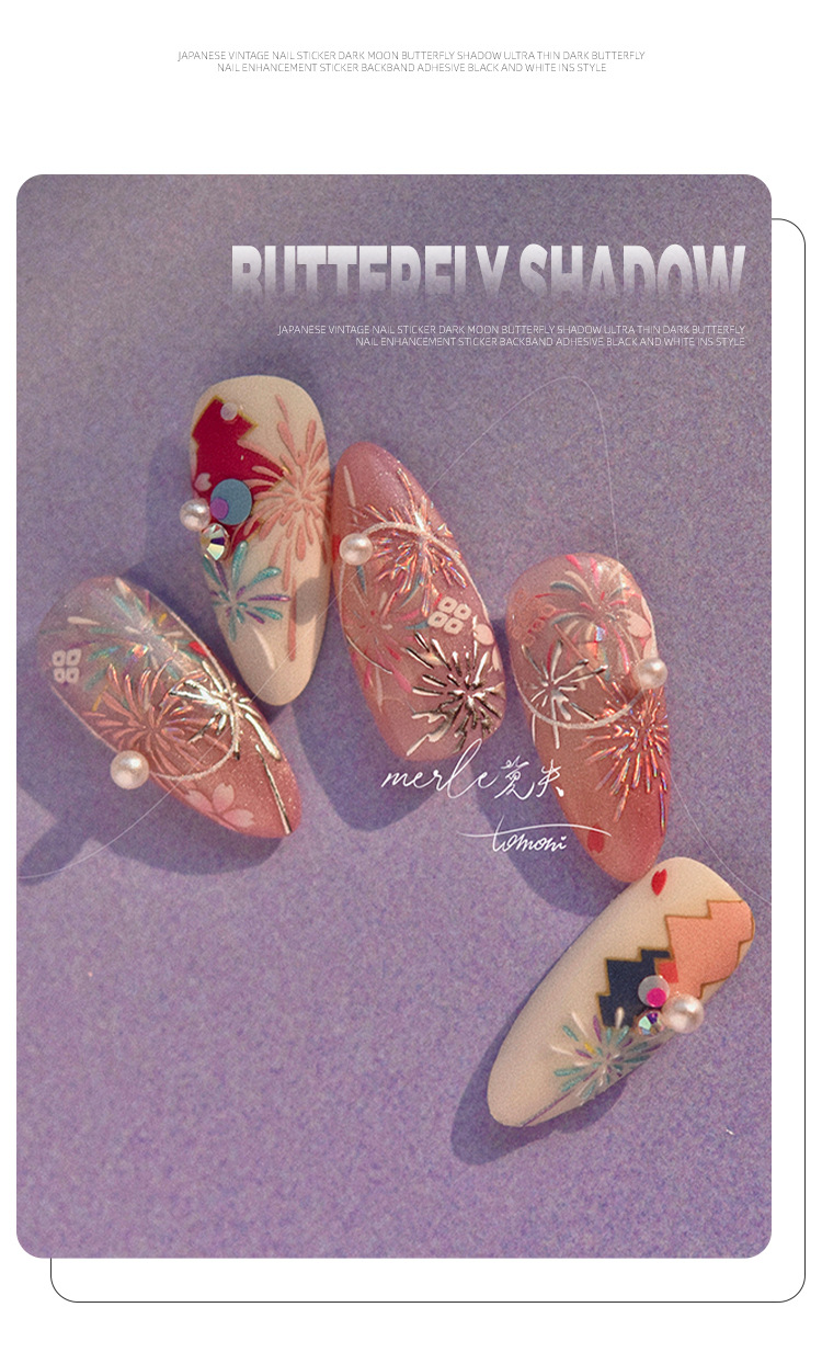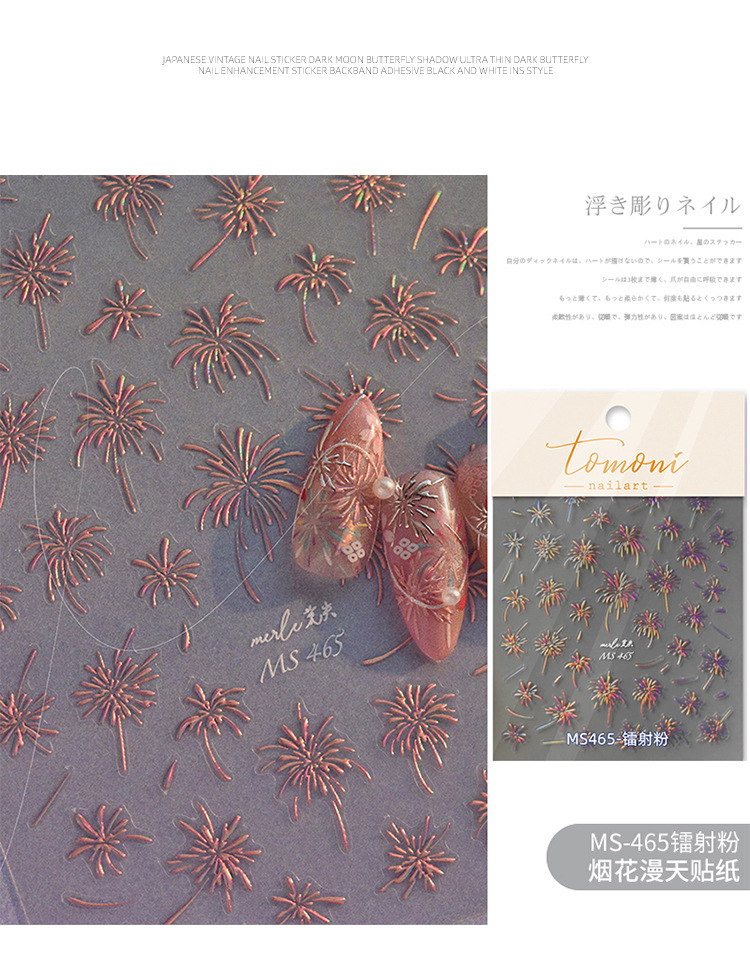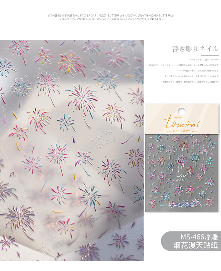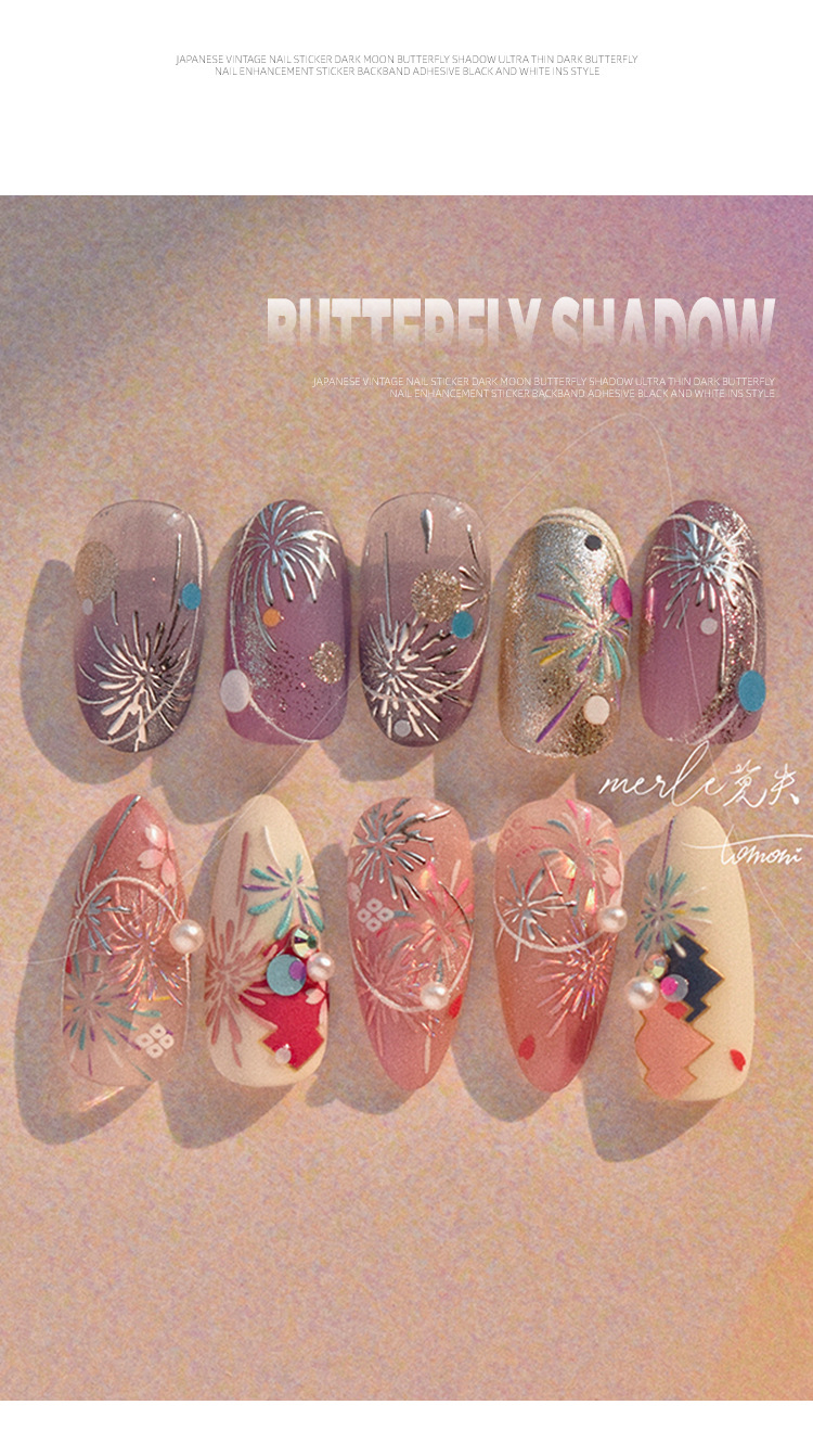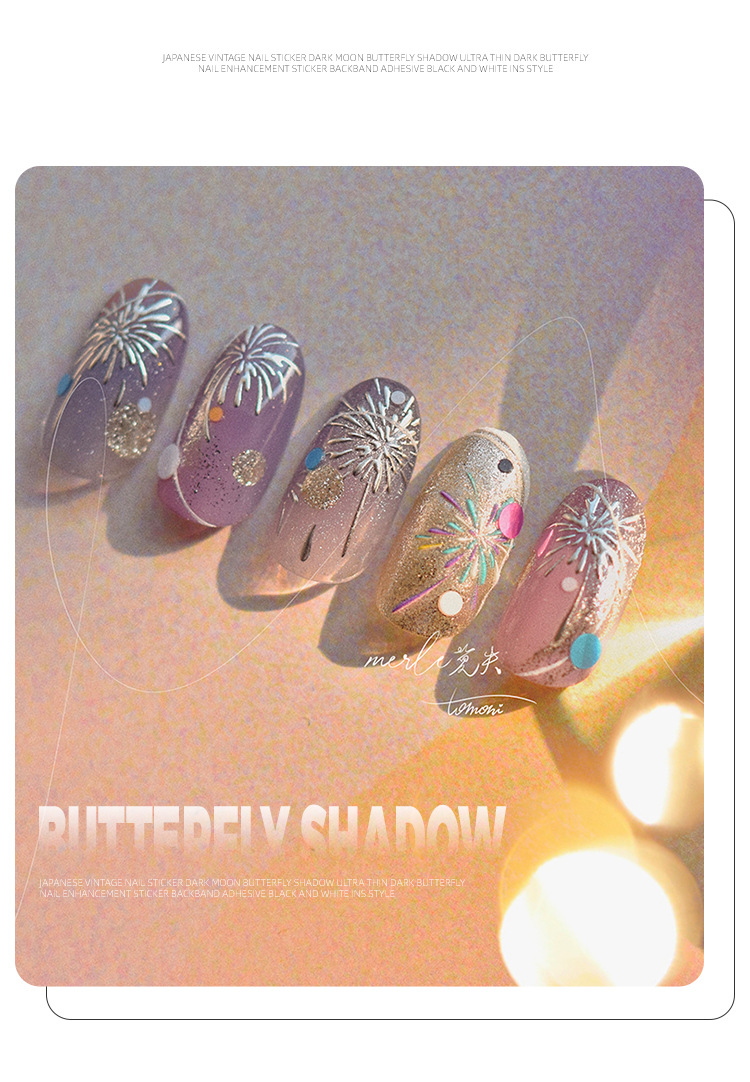 Fuegos artificiales pegatinas manicura en línea popular otoño e invierno tridimensional romántico hueco caliente colorido otoño e invierno manicura ojo de gato de cristal