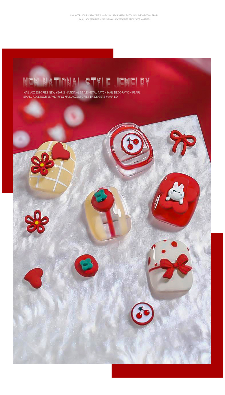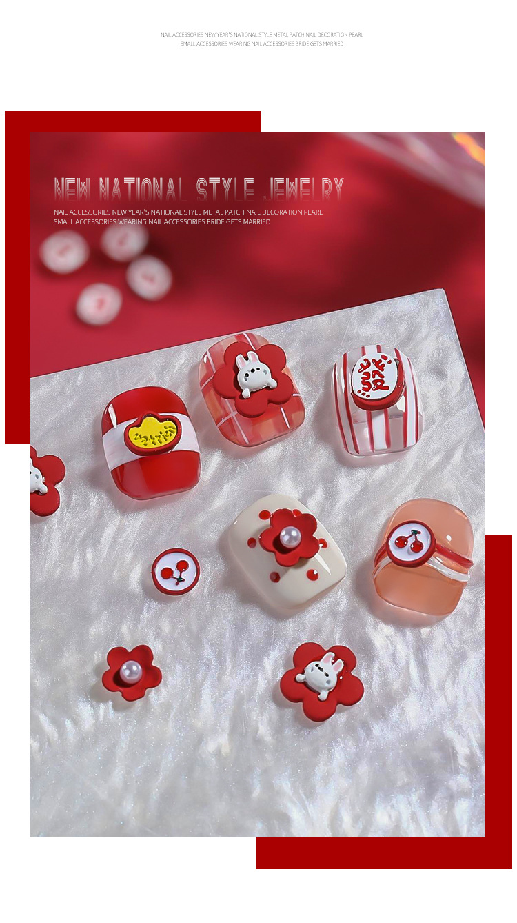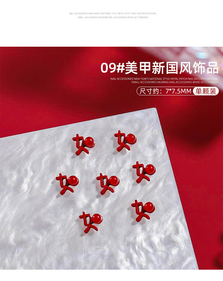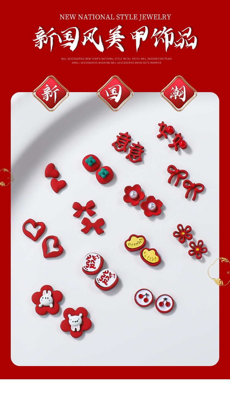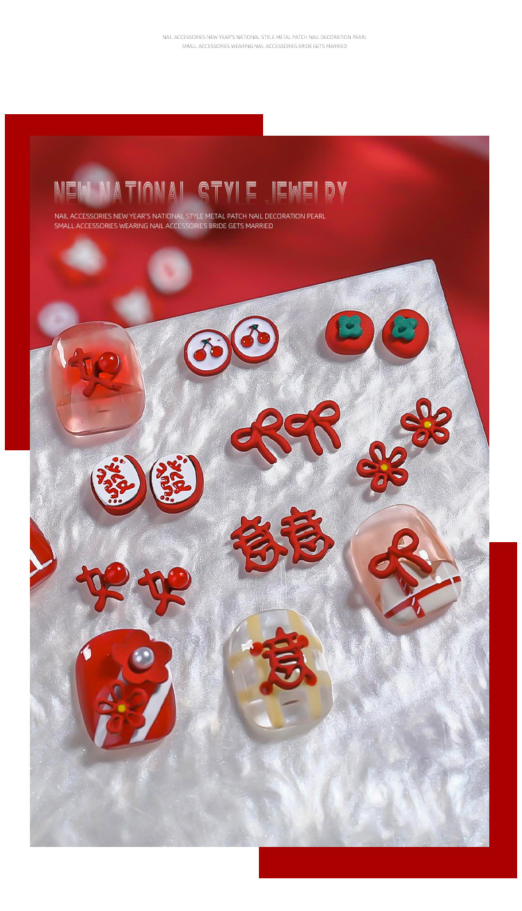 Estilo nacional accesorios de uñas brillante rojo nuevo año caqui Ruyi lindo metal aleación accesorios desgaste accesorios de uñas al por mayor