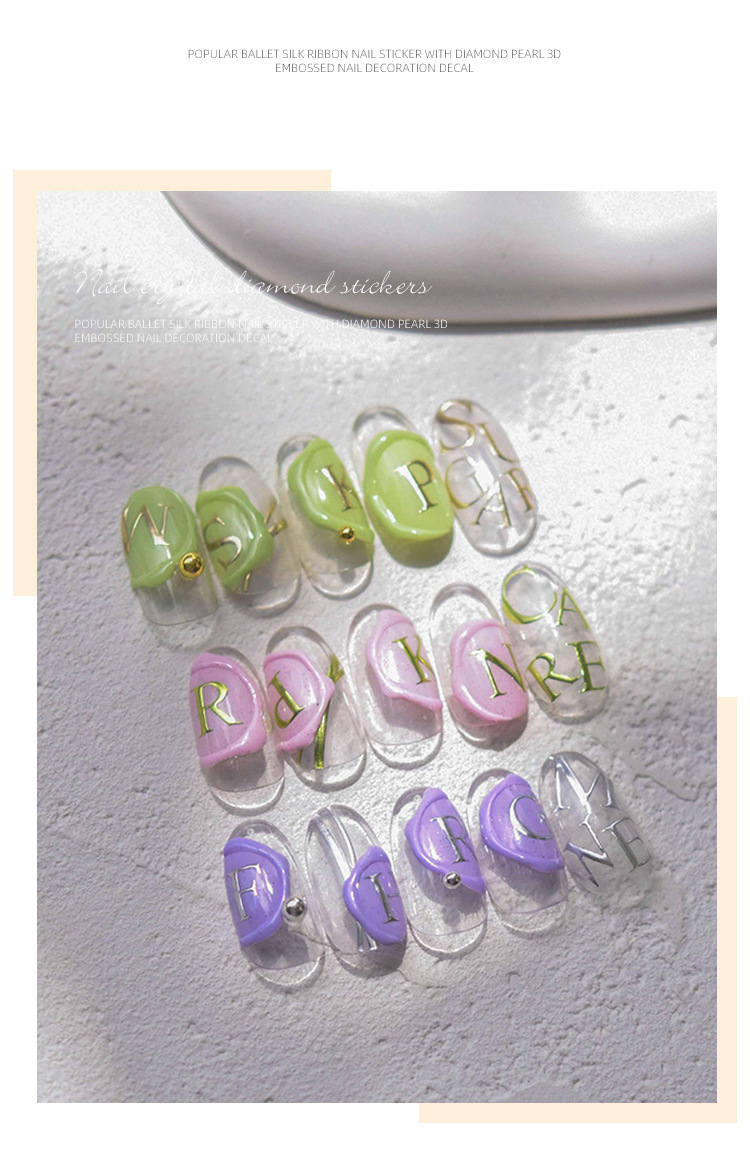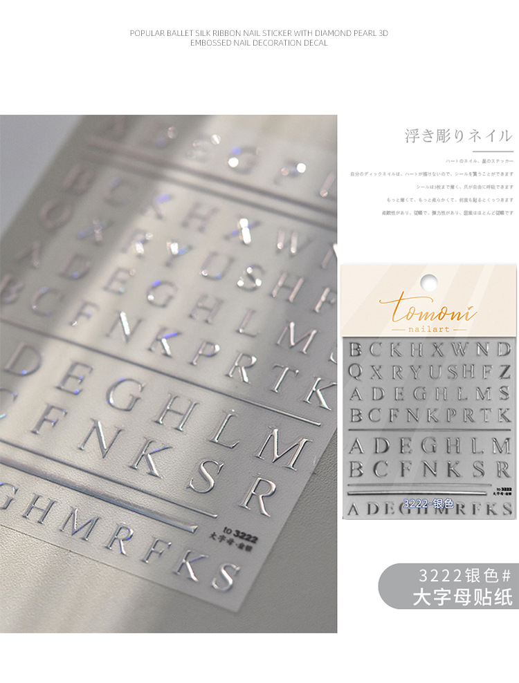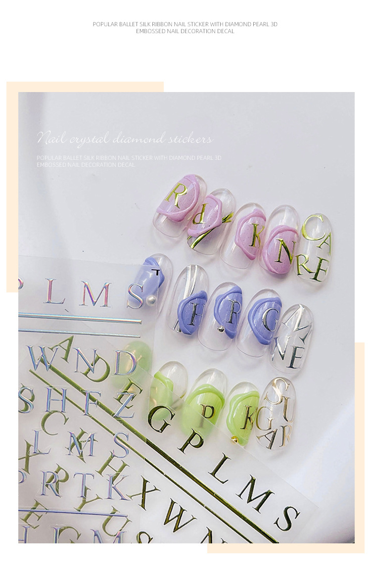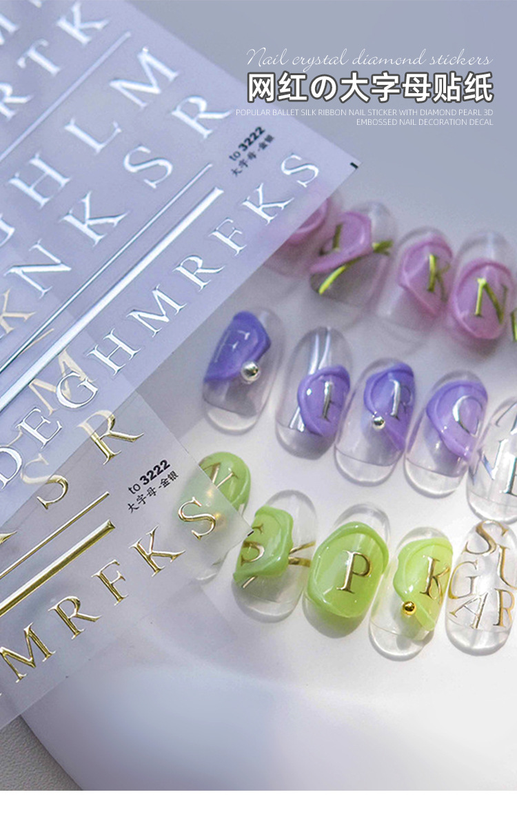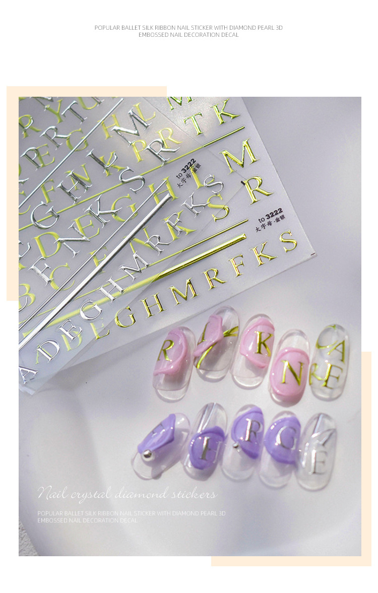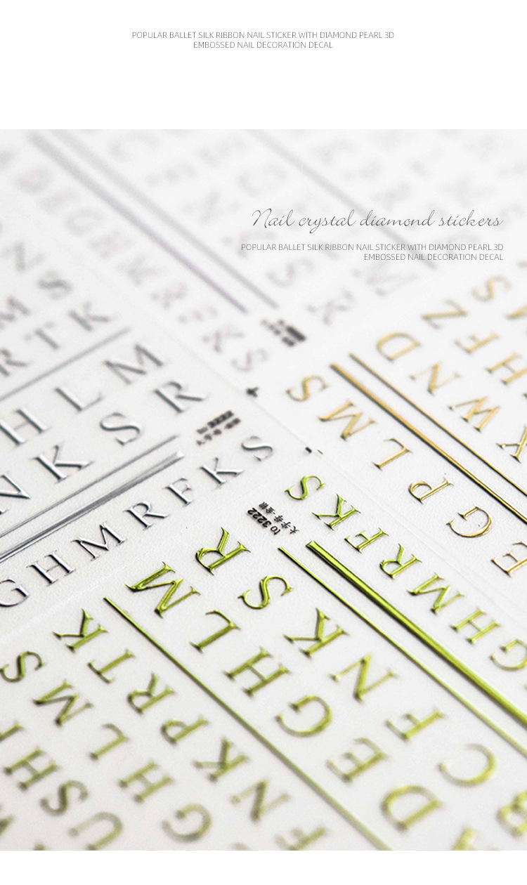 Pegatinas para uñas, nuevas y modernas, letras francesas en relieve, lámina dorada en relieve, pegatinas huecas para decoración de uñas, estilo fresco y de alta gama