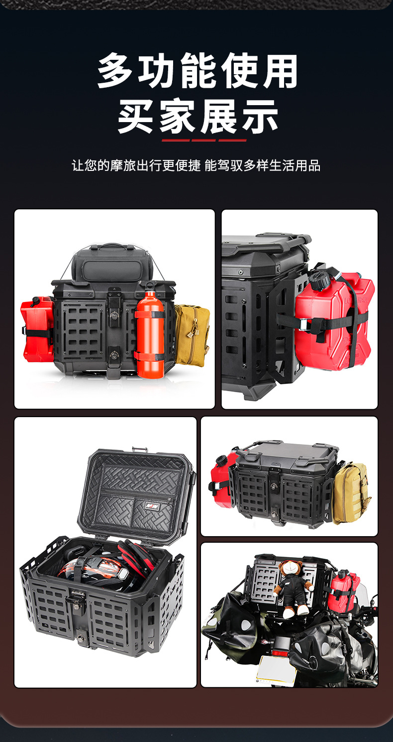 45L multifuncional blindado negro motocicleta de aluminio tailgate scooter tailgate maverick baúl de coche eléctrico