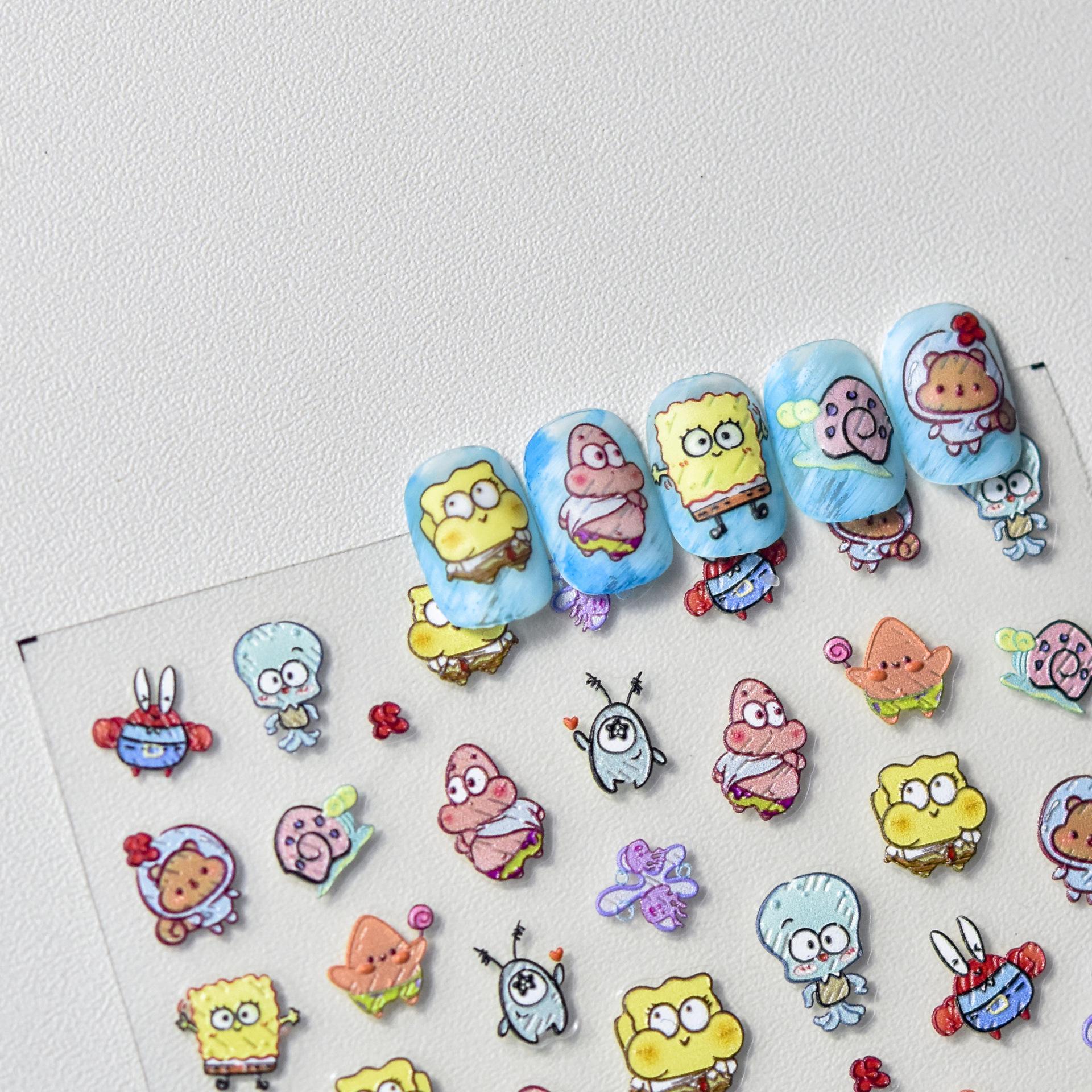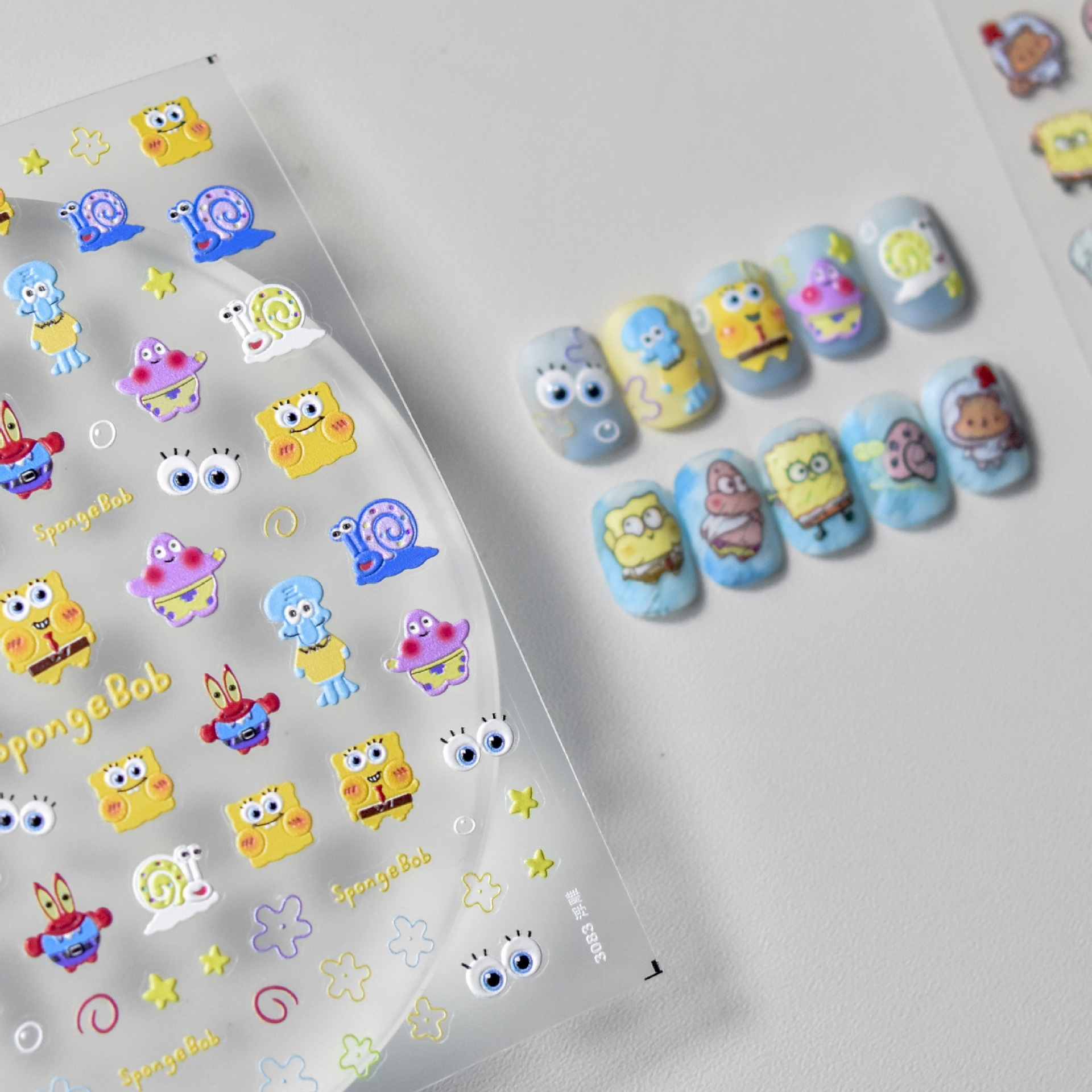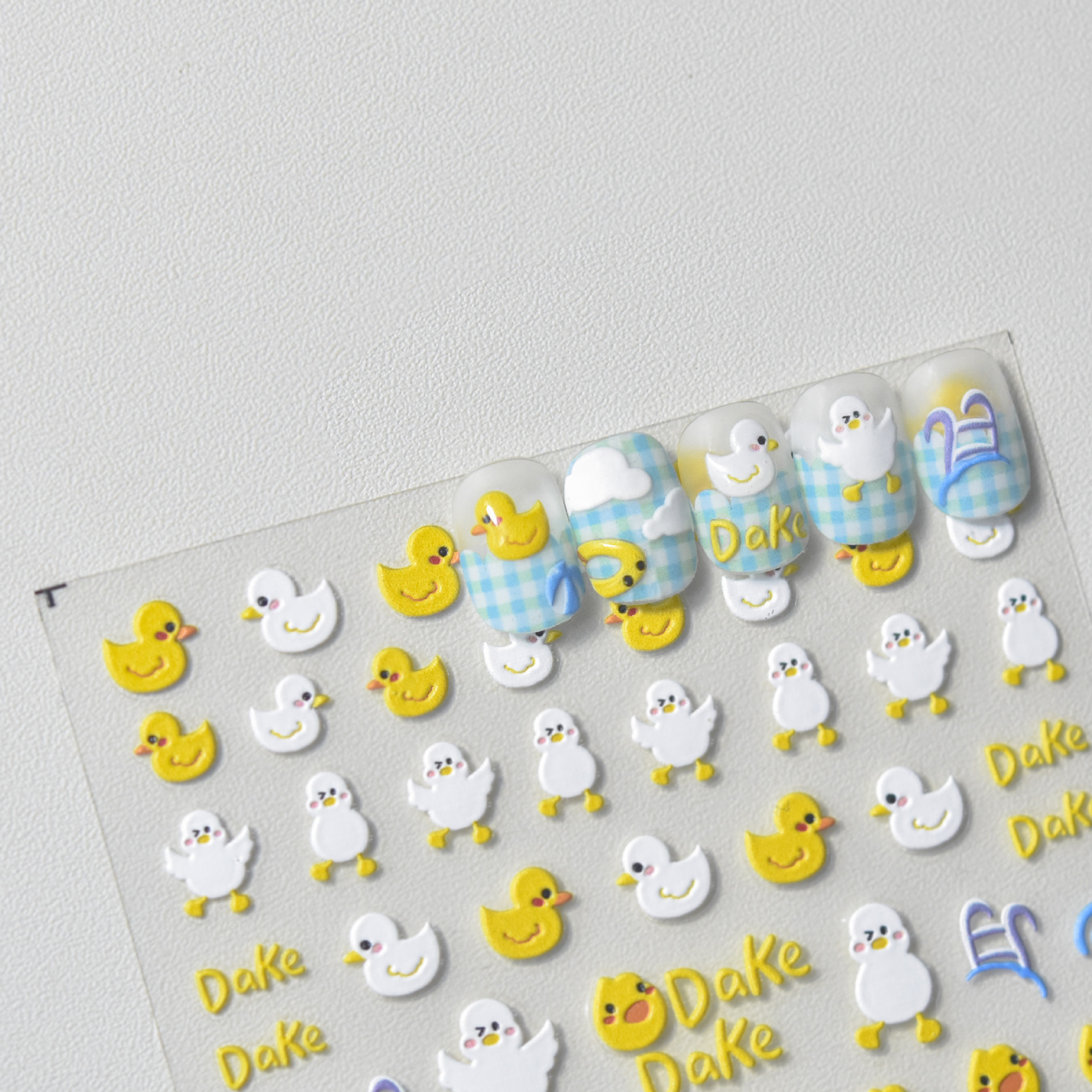Celebridad en línea nuevas pegatinas de uñas de verano en relieve de dibujos animados pato amarillo esponja bebé tridimensional decoraciones lindas al por mayor
