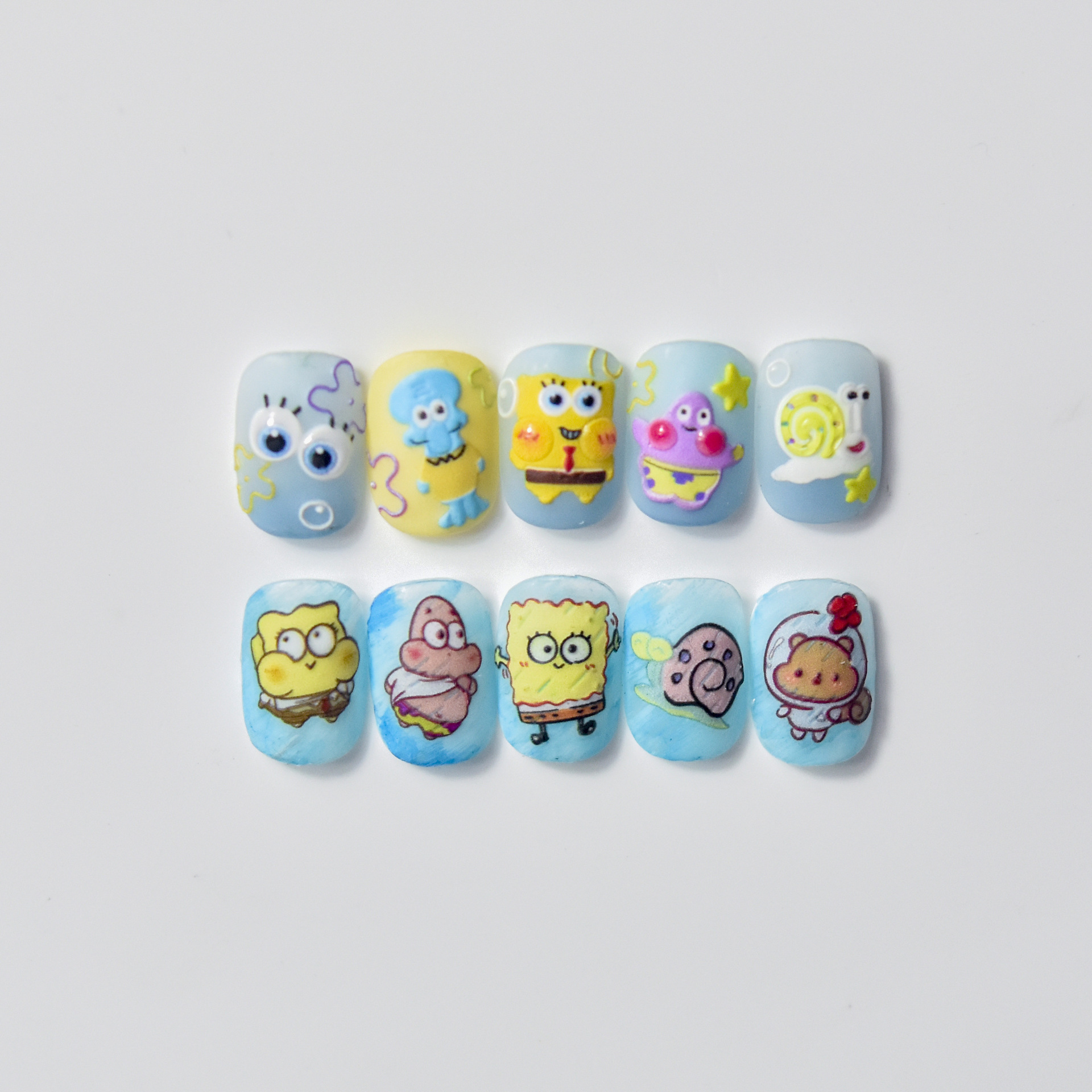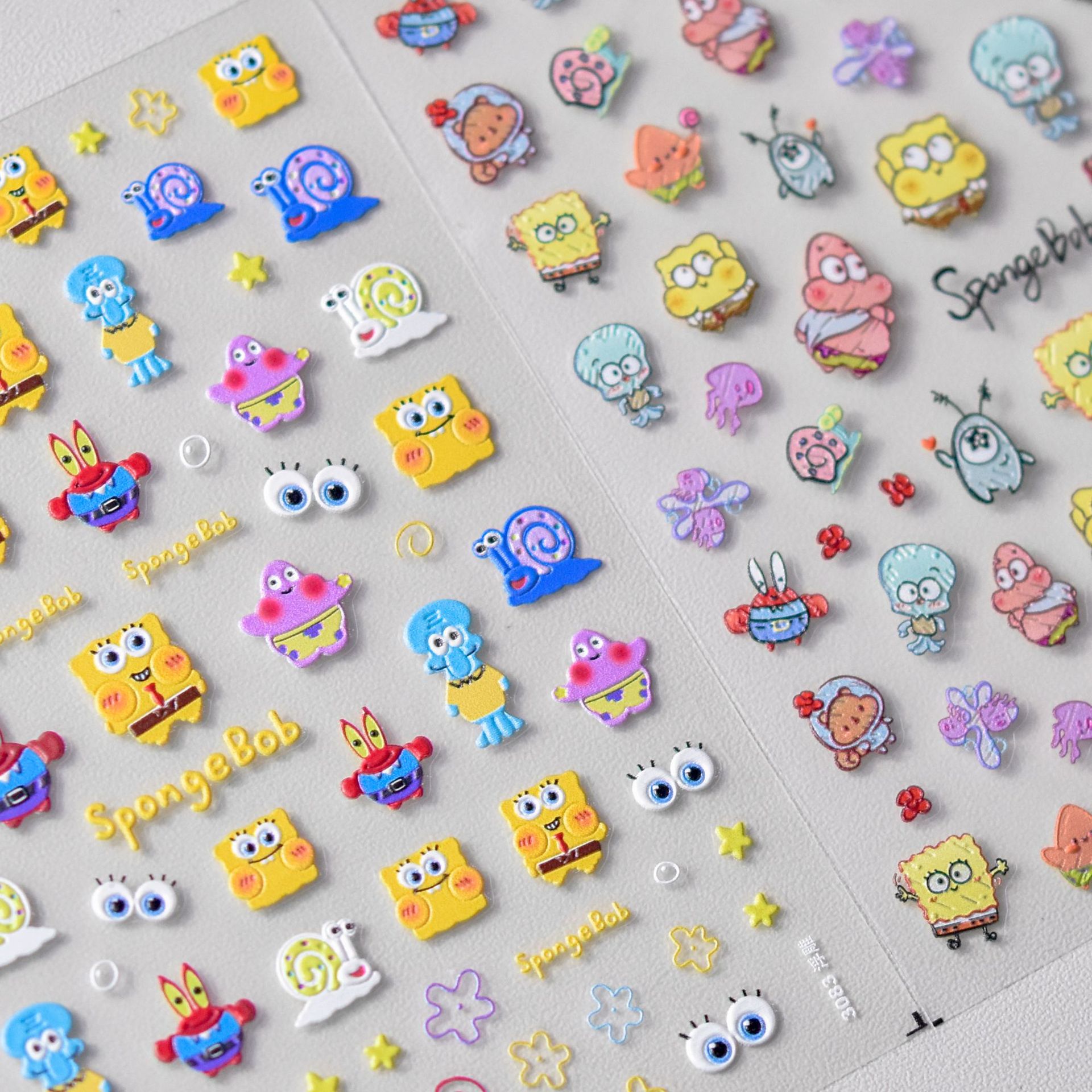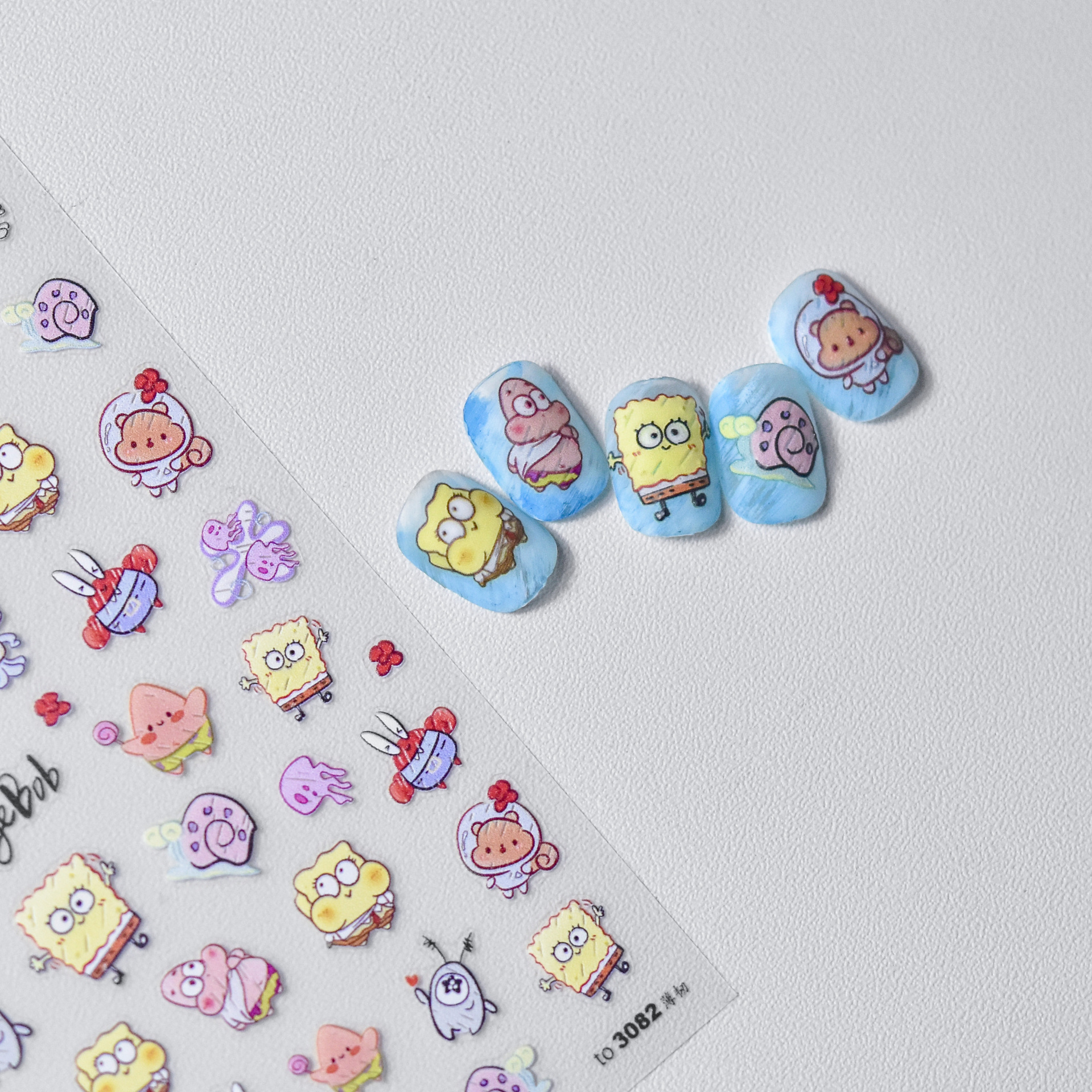 Celebridad en línea nuevas pegatinas de uñas de verano en relieve de dibujos animados pato amarillo esponja bebé tridimensional decoraciones lindas al por mayor