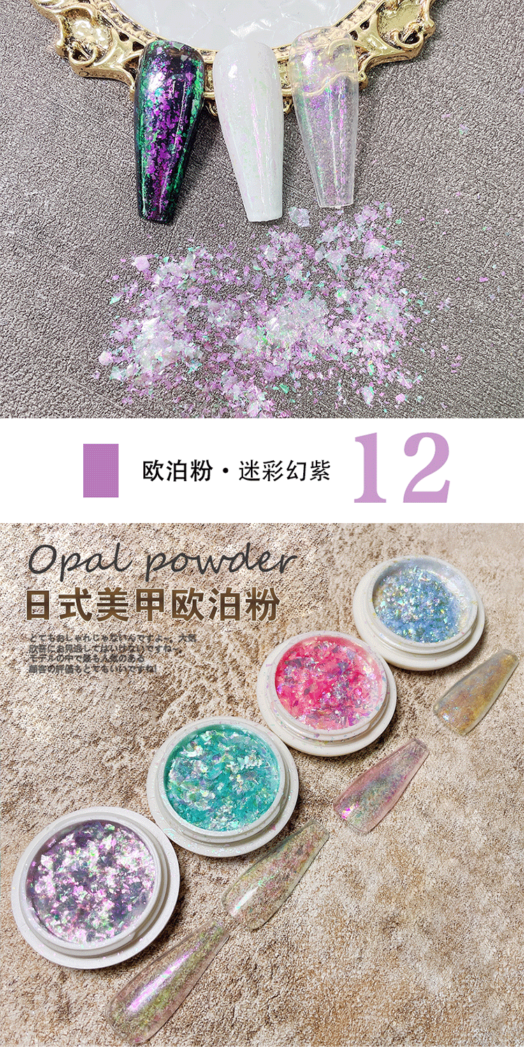 Transfronteriza nueva manicura 12 colores brillo polarizado Opal en polvo nube de color mágico polvo de algodón sueño hielo cristal uñas lentejuelas