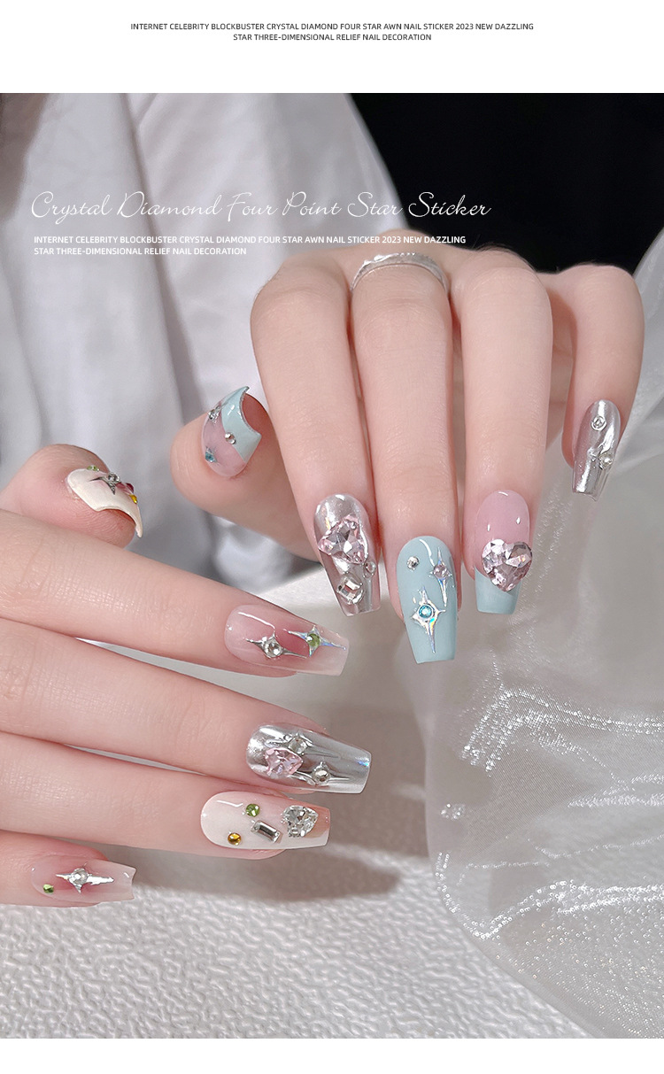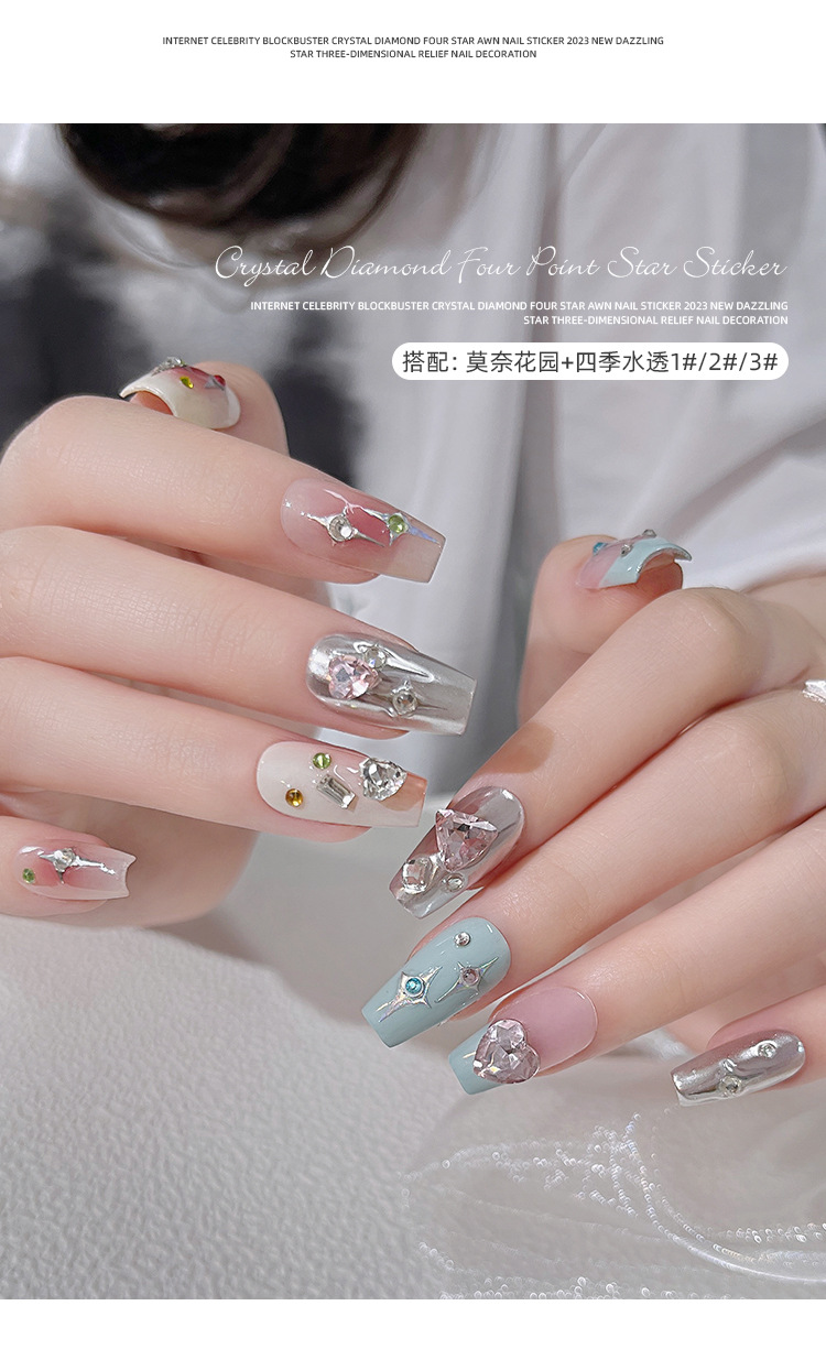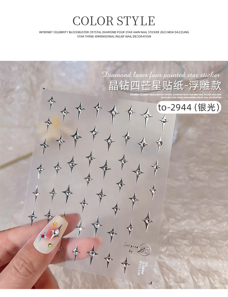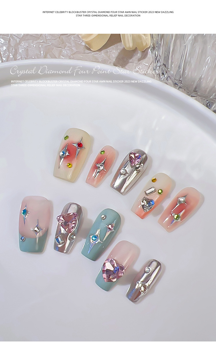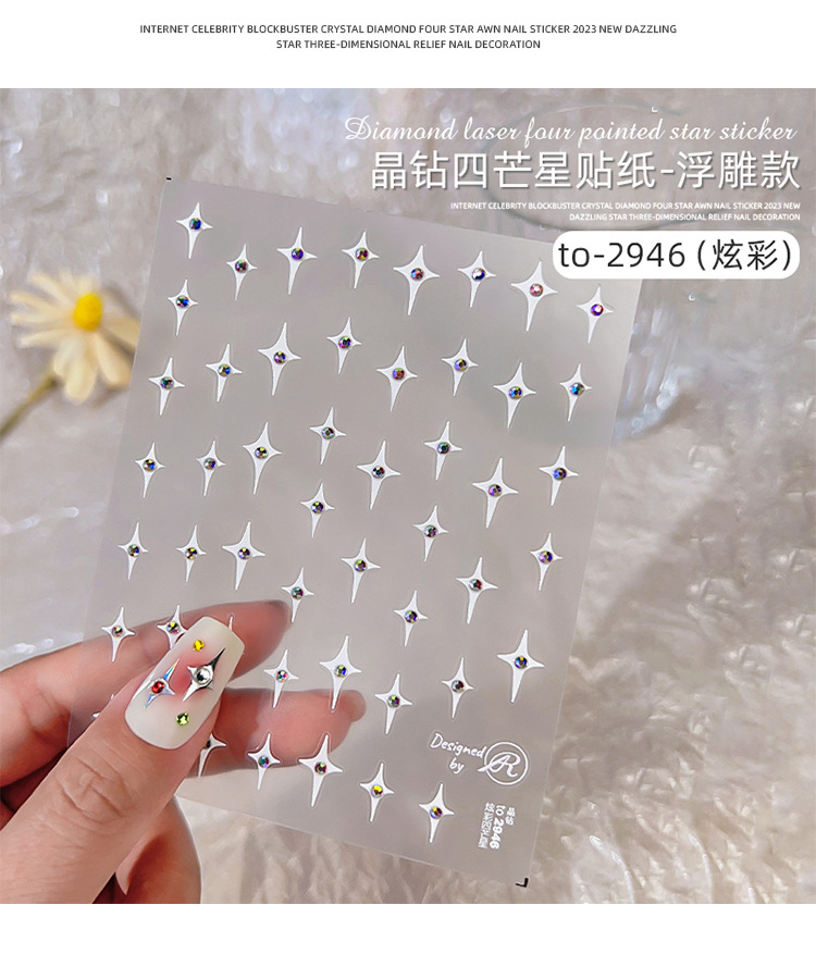 Adhesivos de Uñas con Cristales de Diamante, Diseño de Estrella de Cuatro Puntas, Metálicos, Láser, Iridiscentes, Tridimensionales, al por Mayor