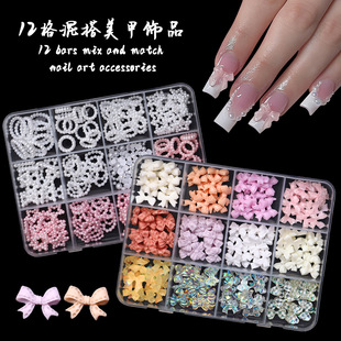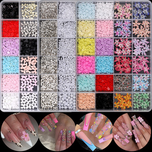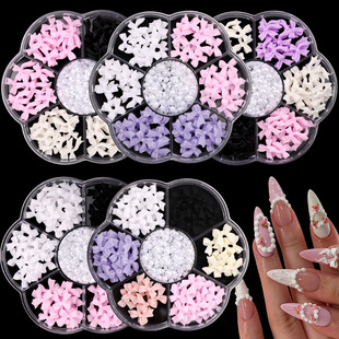 Popular manicura popular en línea pequeña flor blanca tamaño blanco mezclado flor de cinco pétalos con pequeña bola de acero tridimensional decoración de uñas de resina