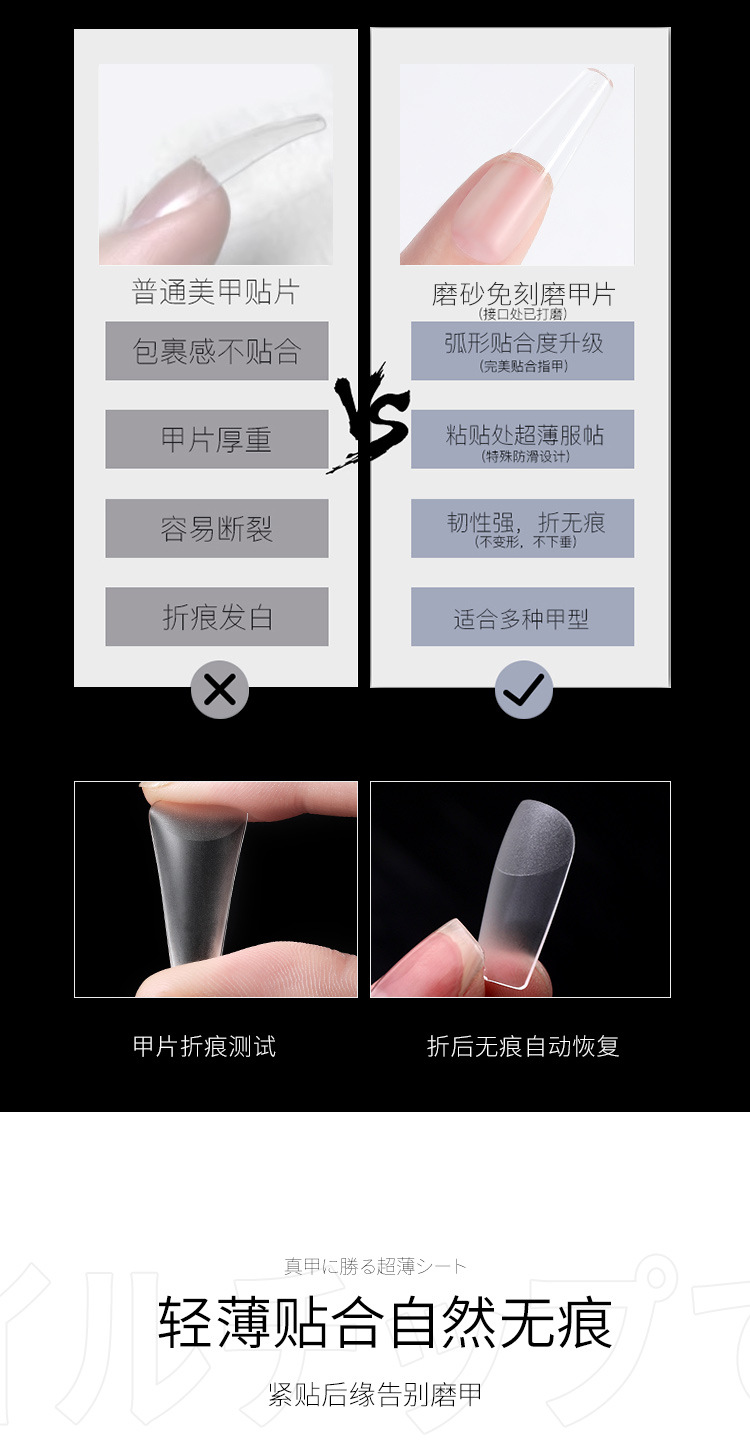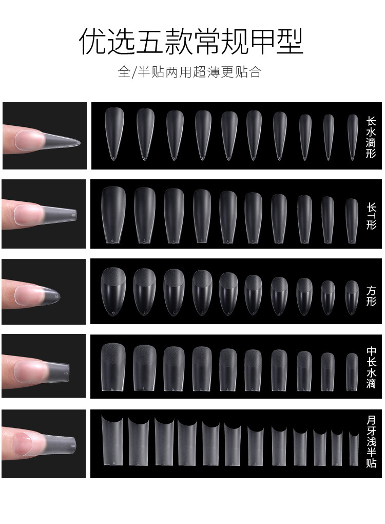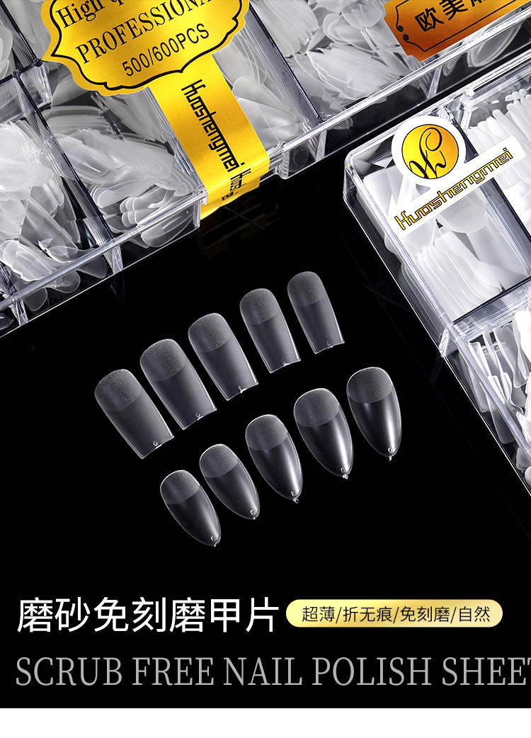 Huasheng pieza de belleza de uñas pegatinas completas europeas y americanas medias pegatinas esmerilado pulido sin costuras-uñas de desgaste libre especial tipo t gota de agua uñas falsas