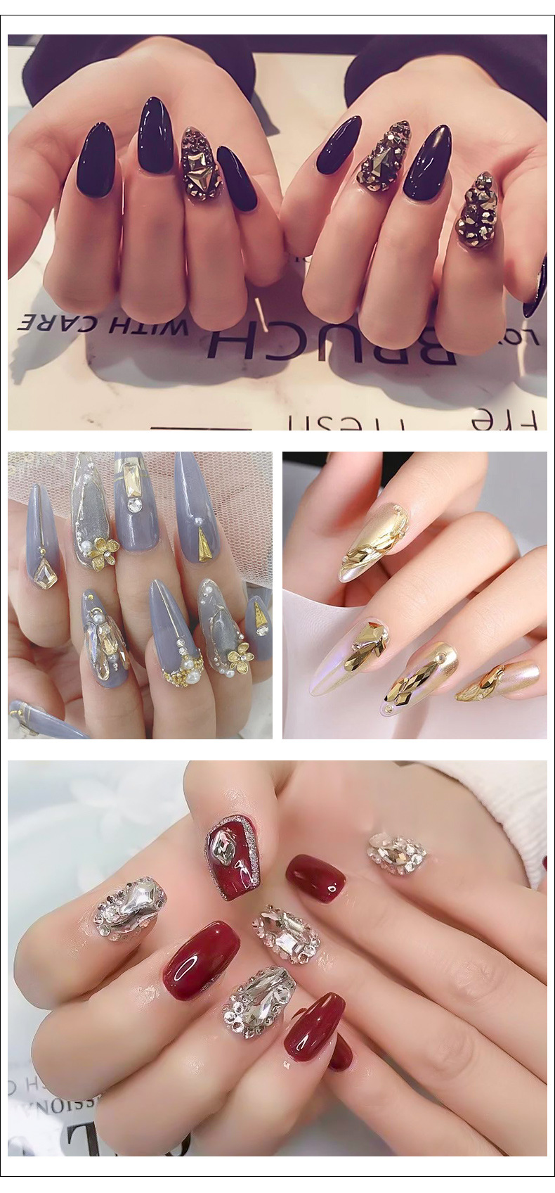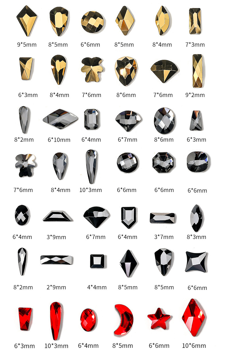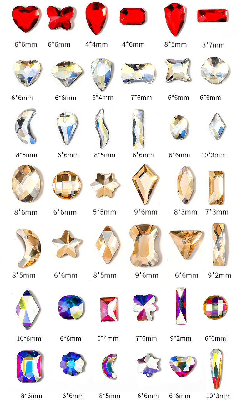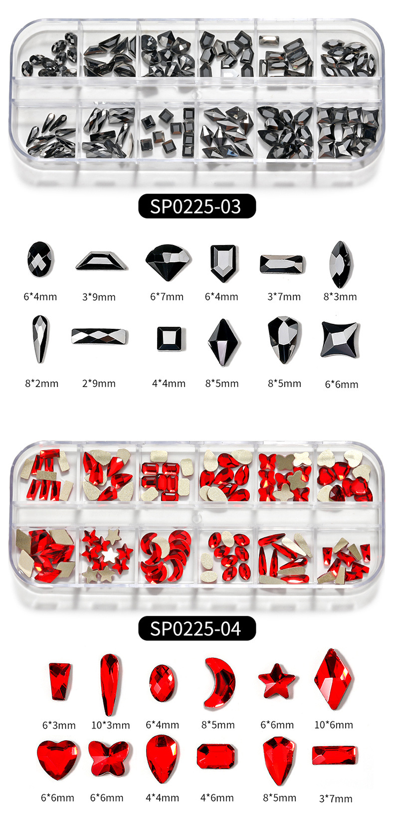 Accesorios de diamantes de uñas transfronterizos 12 traje de rejilla en caja plana de forma especial de diamantes de imitación de color de cristal de diamante pegatinas de joyería de uñas