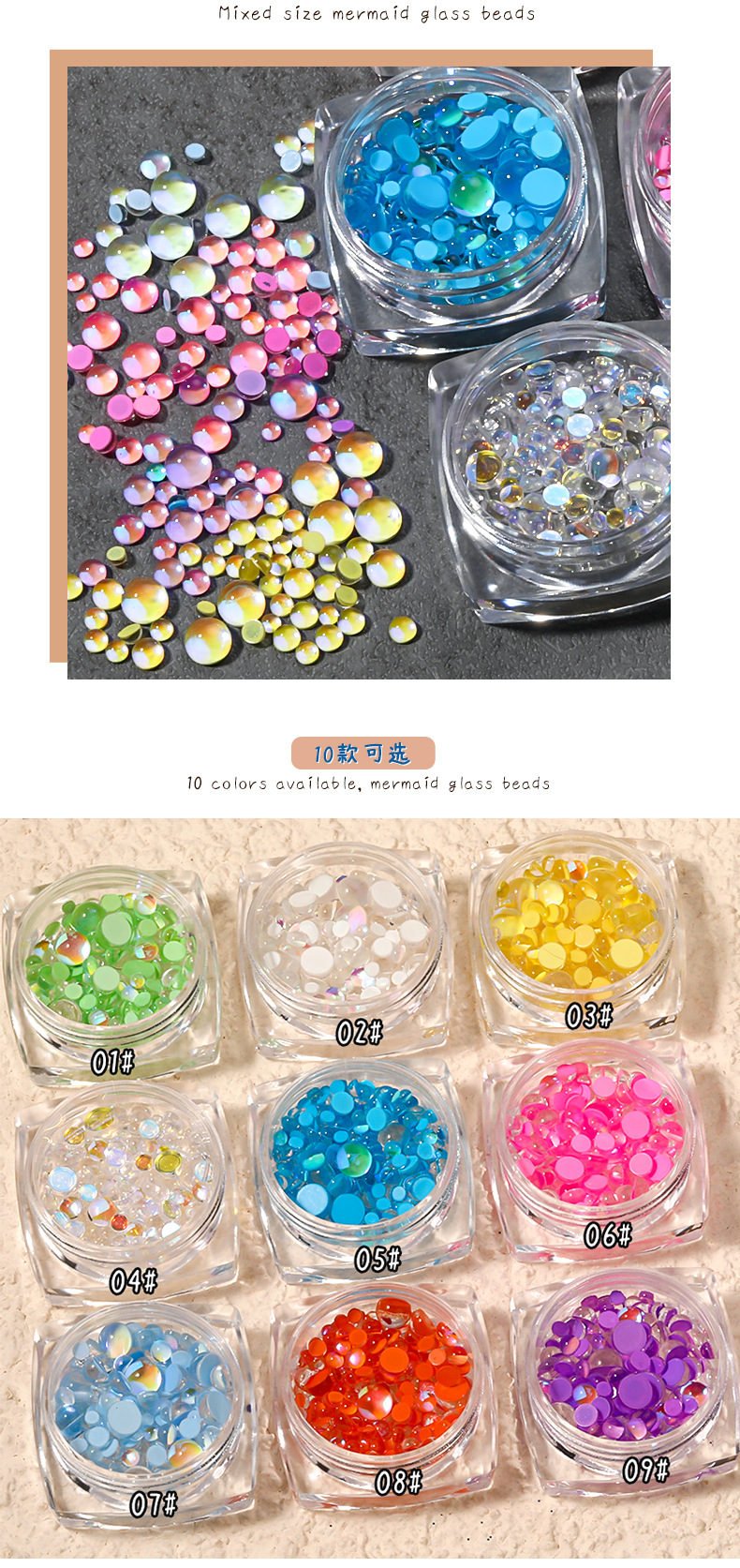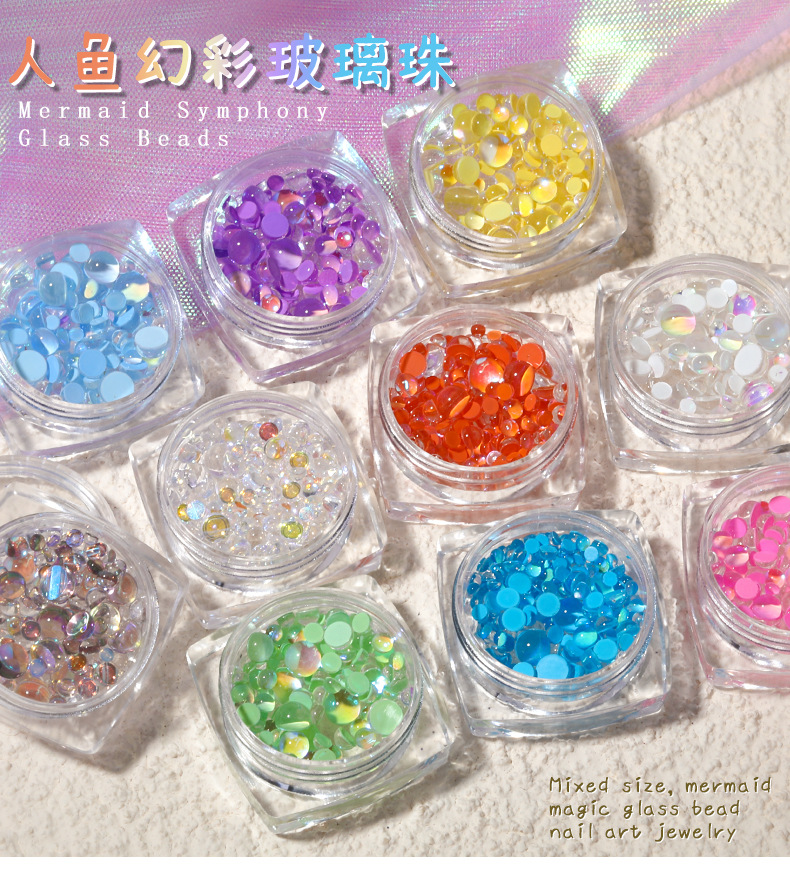 Joyería de uñas caliente mezclada sirena cuentas mágicas plana redonda cristal Aurora cuentas de cristal joyería de uñas diamante