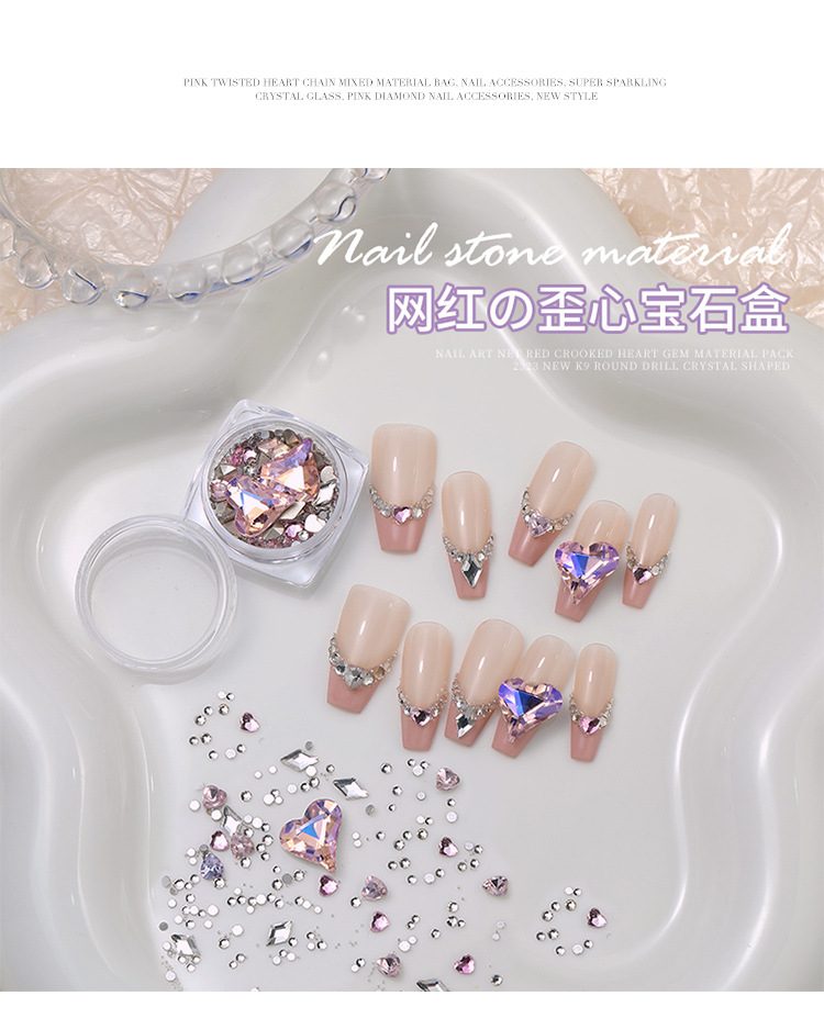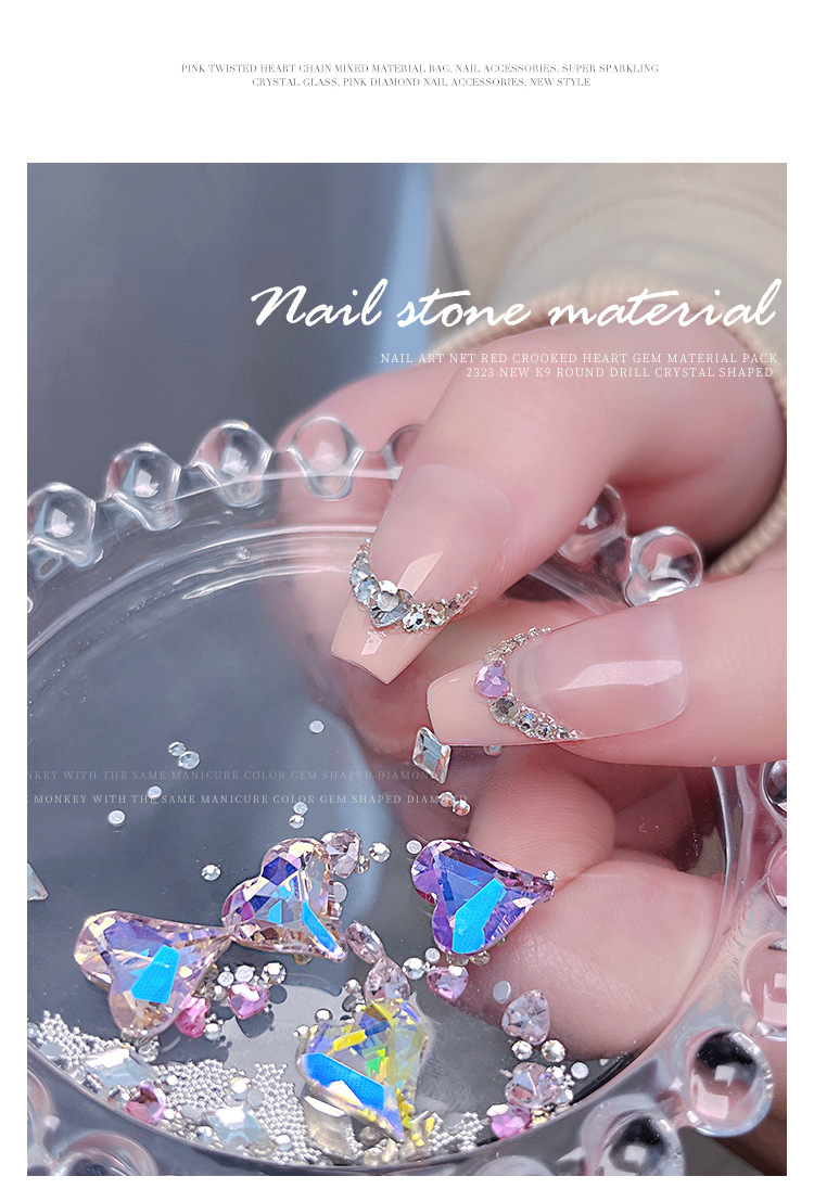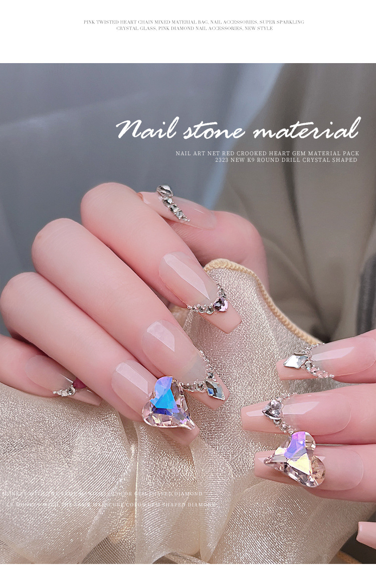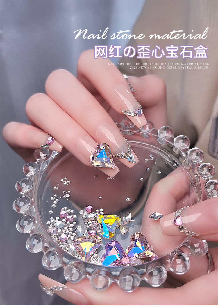 Arte de uñas celebridad en línea corazón torcido gema material paquete nuevo K9 cristal de diamante redondo tamaño especial en forma de diamante decoraciones de uñas al por mayor