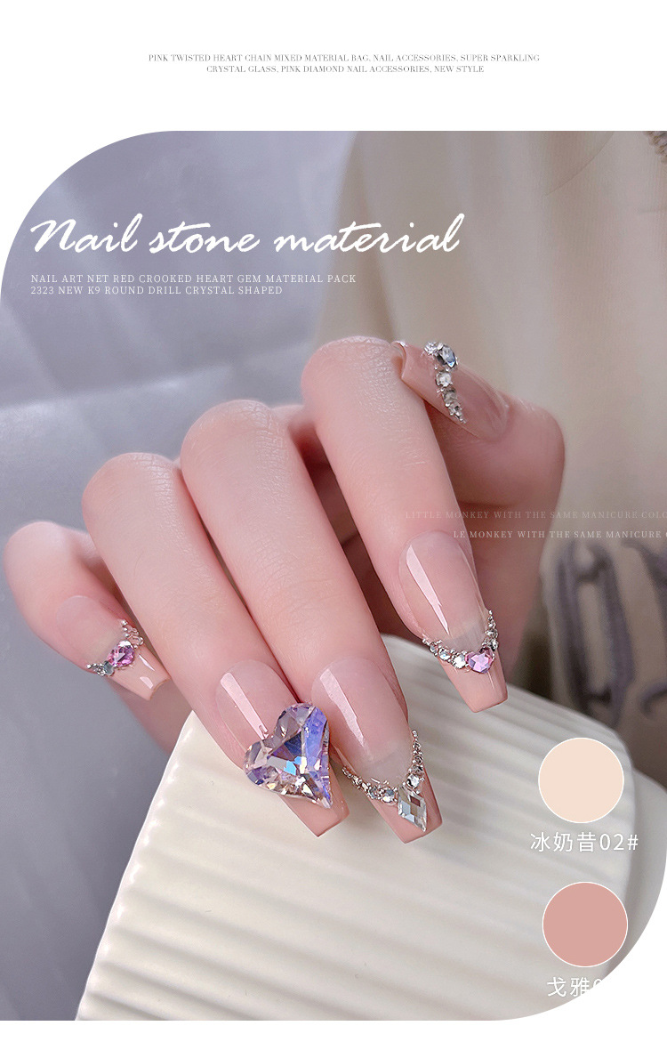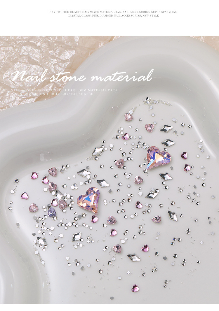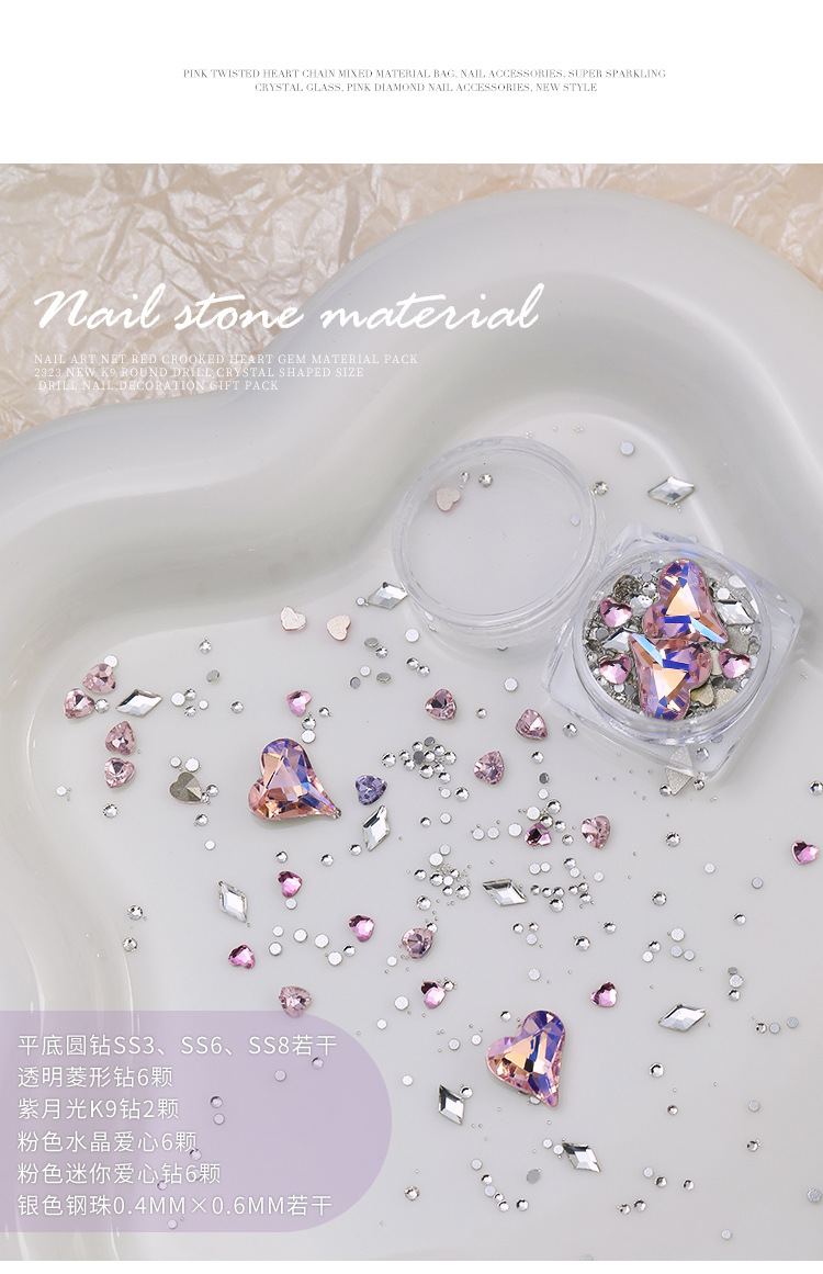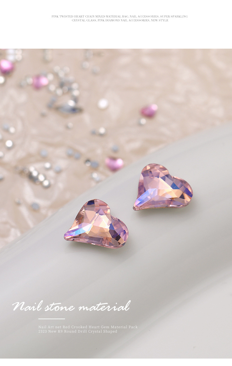 Arte de uñas celebridad en línea corazón torcido gema material paquete nuevo K9 cristal de diamante redondo tamaño especial en forma de diamante decoraciones de uñas al por mayor