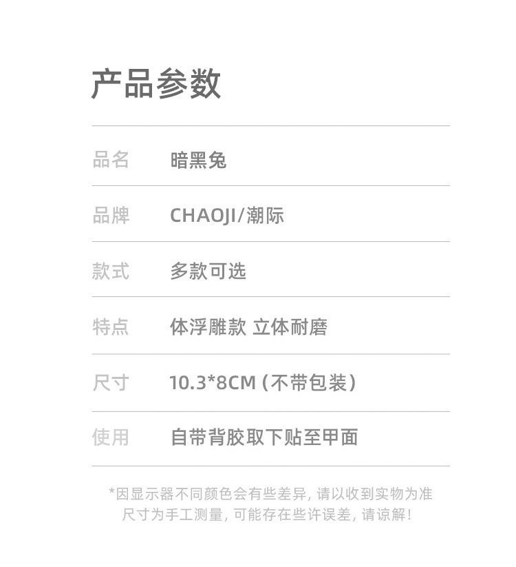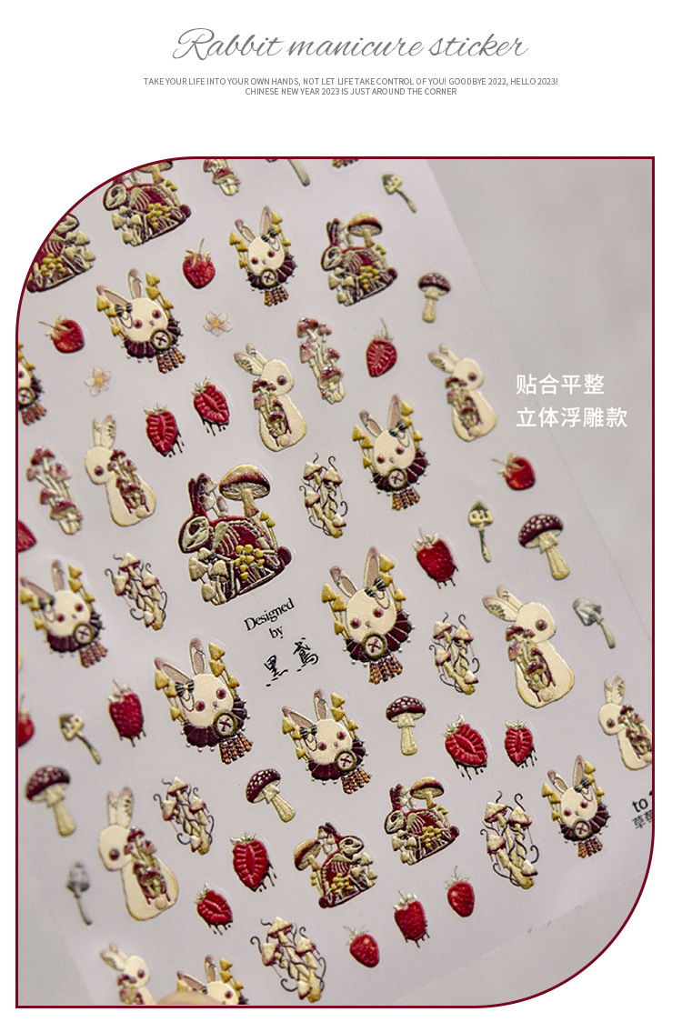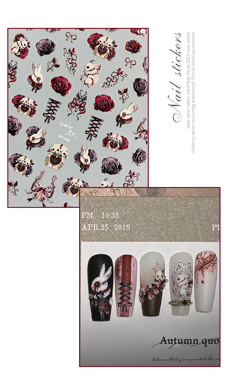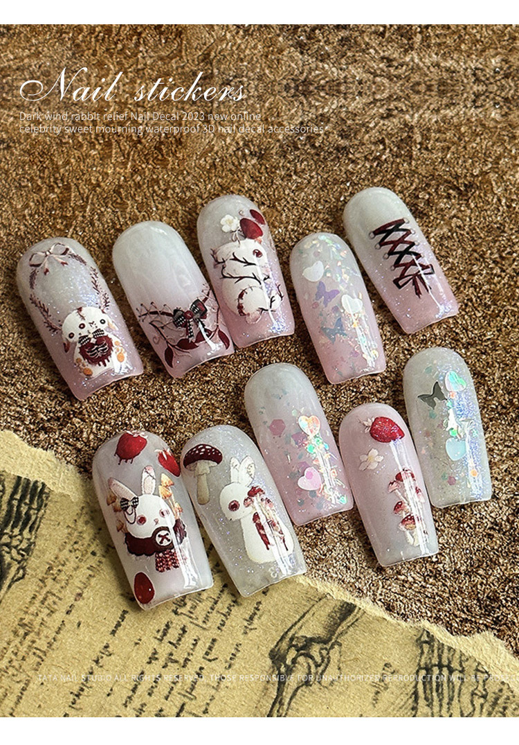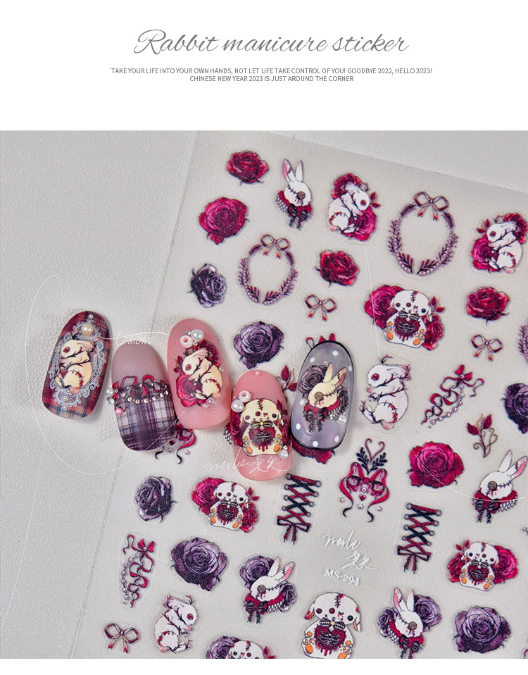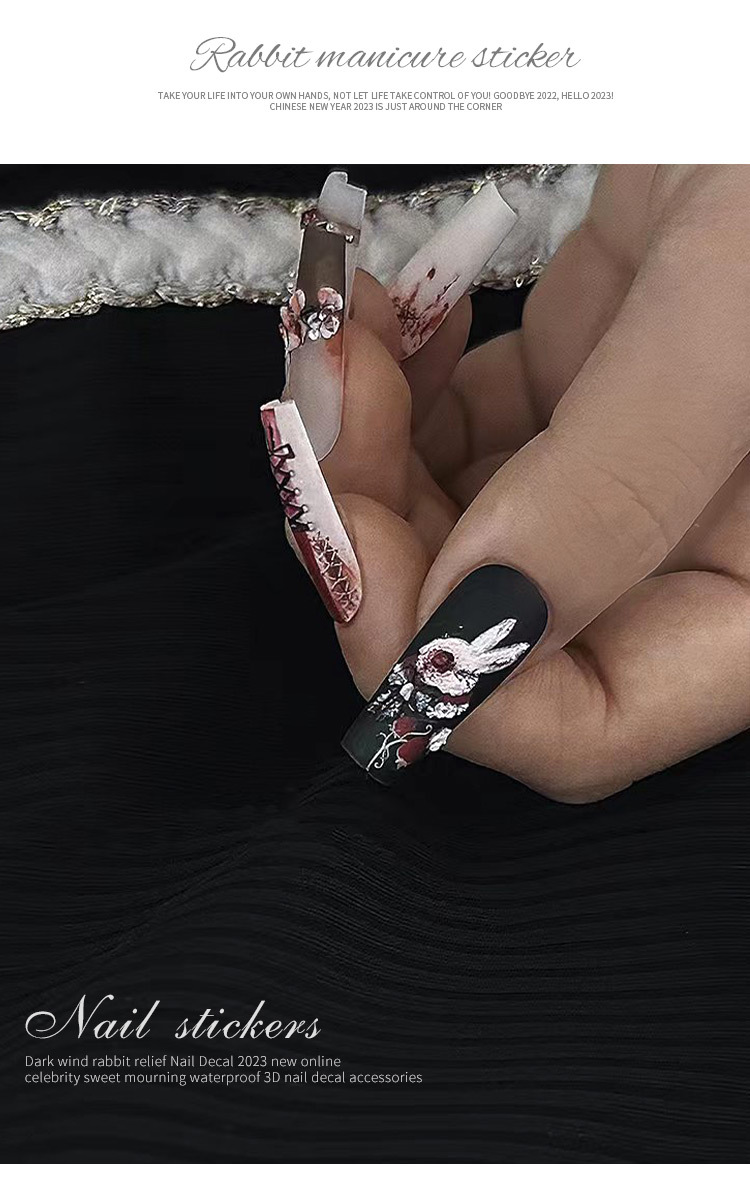 Papel adhesivo de uñas en línea popular conejo oscuro conejo violento estilo gótico chica caliente desgaste pegatina de uñas alivio tridimensional