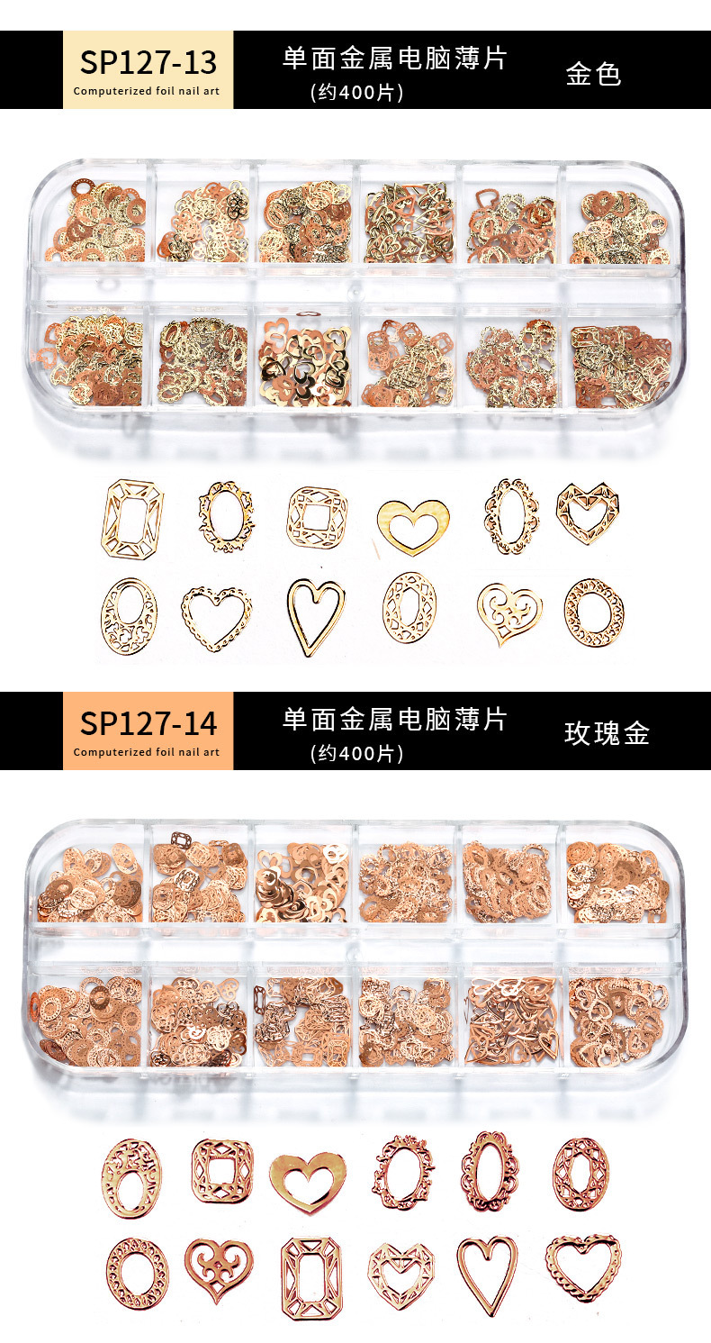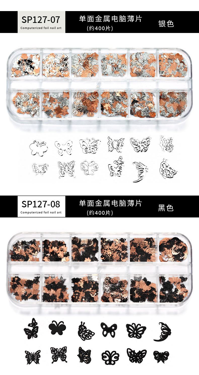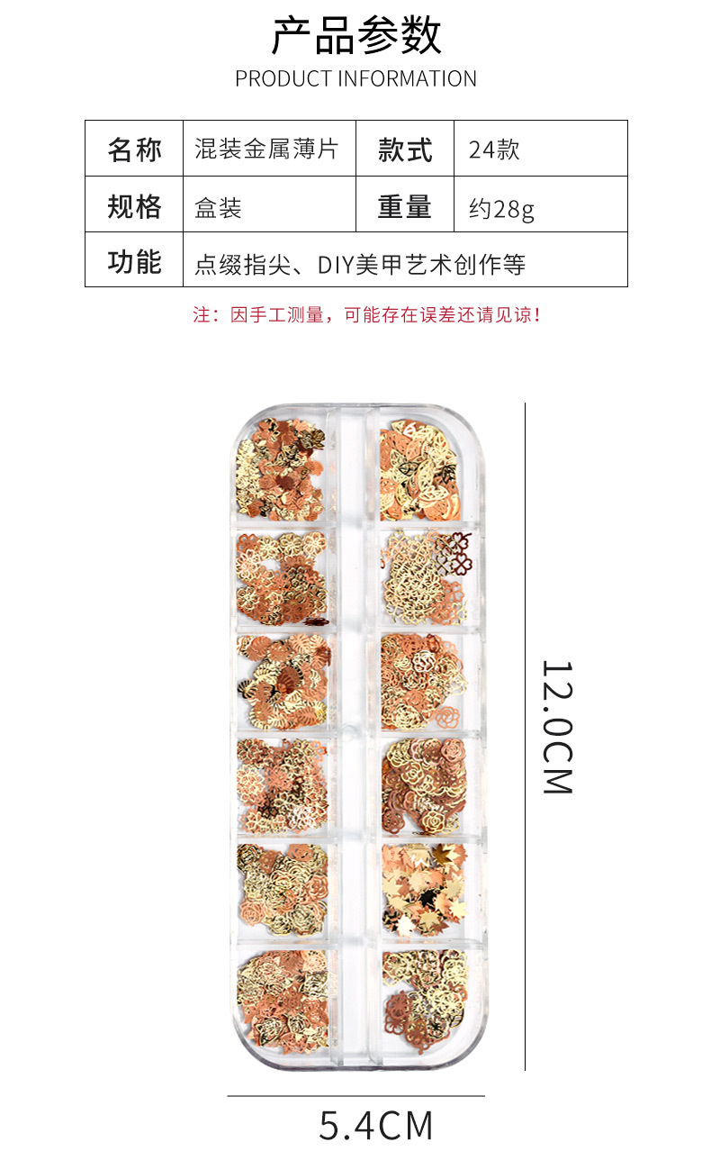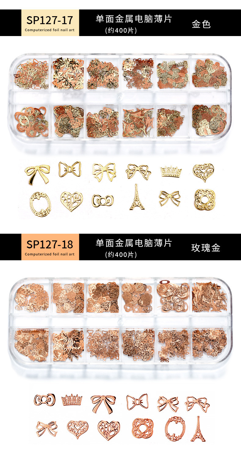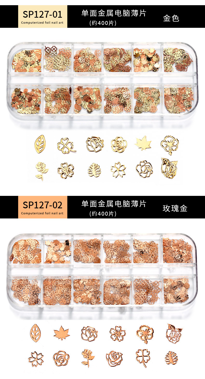 Accesorios de uñas de estilo nuevo japonés en caja de metal hueco pieza de computadora K pieza de oro mariposa hoja de arce decoración de uñas ultrafina