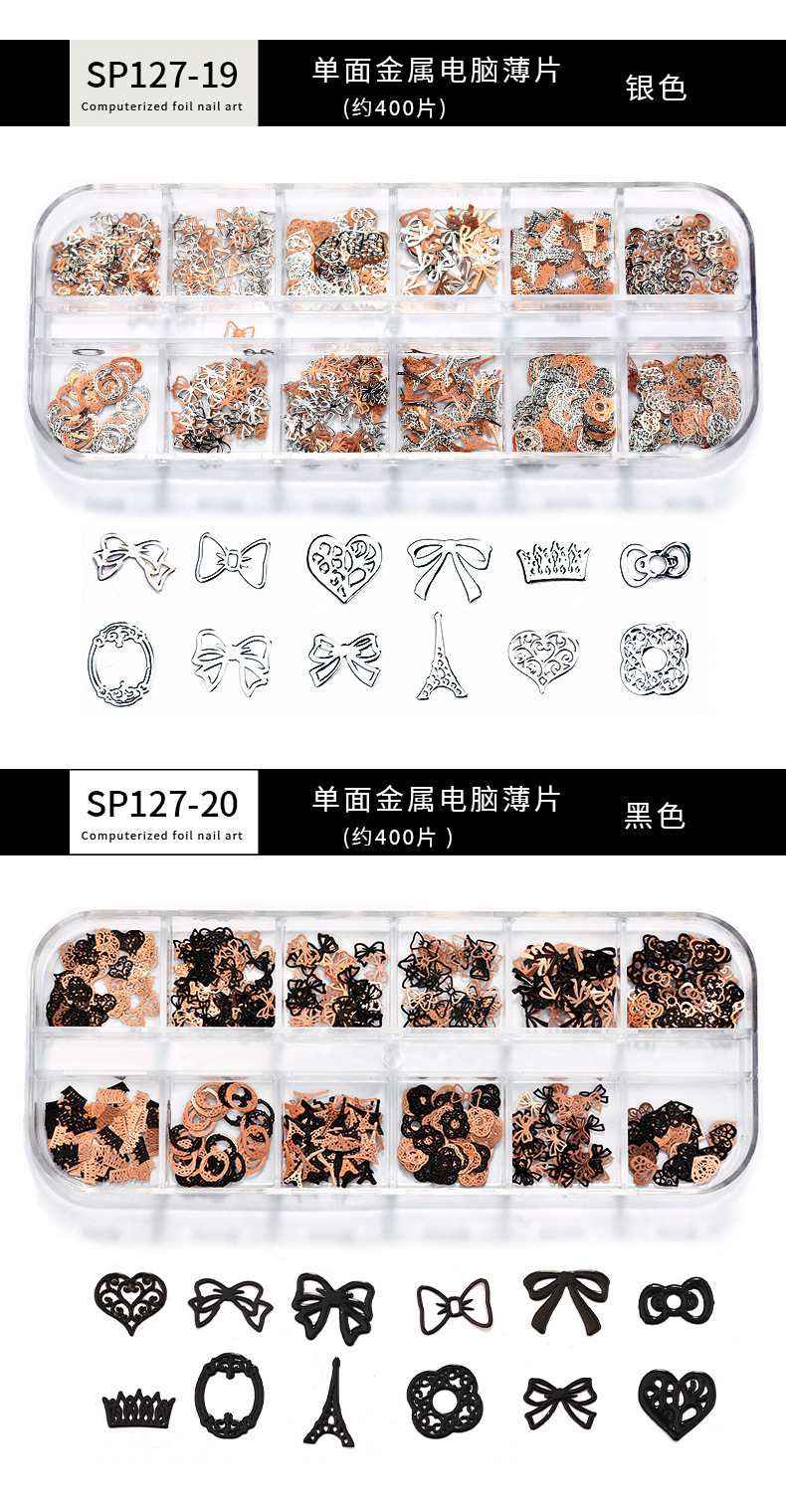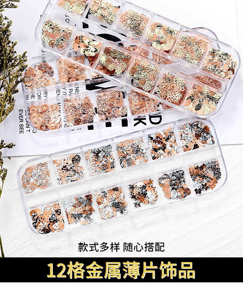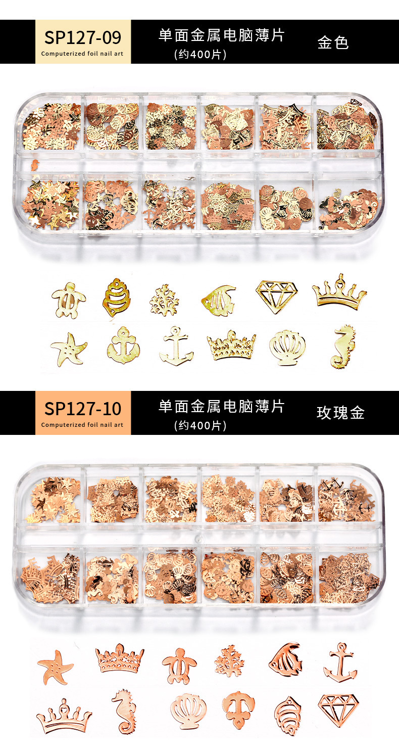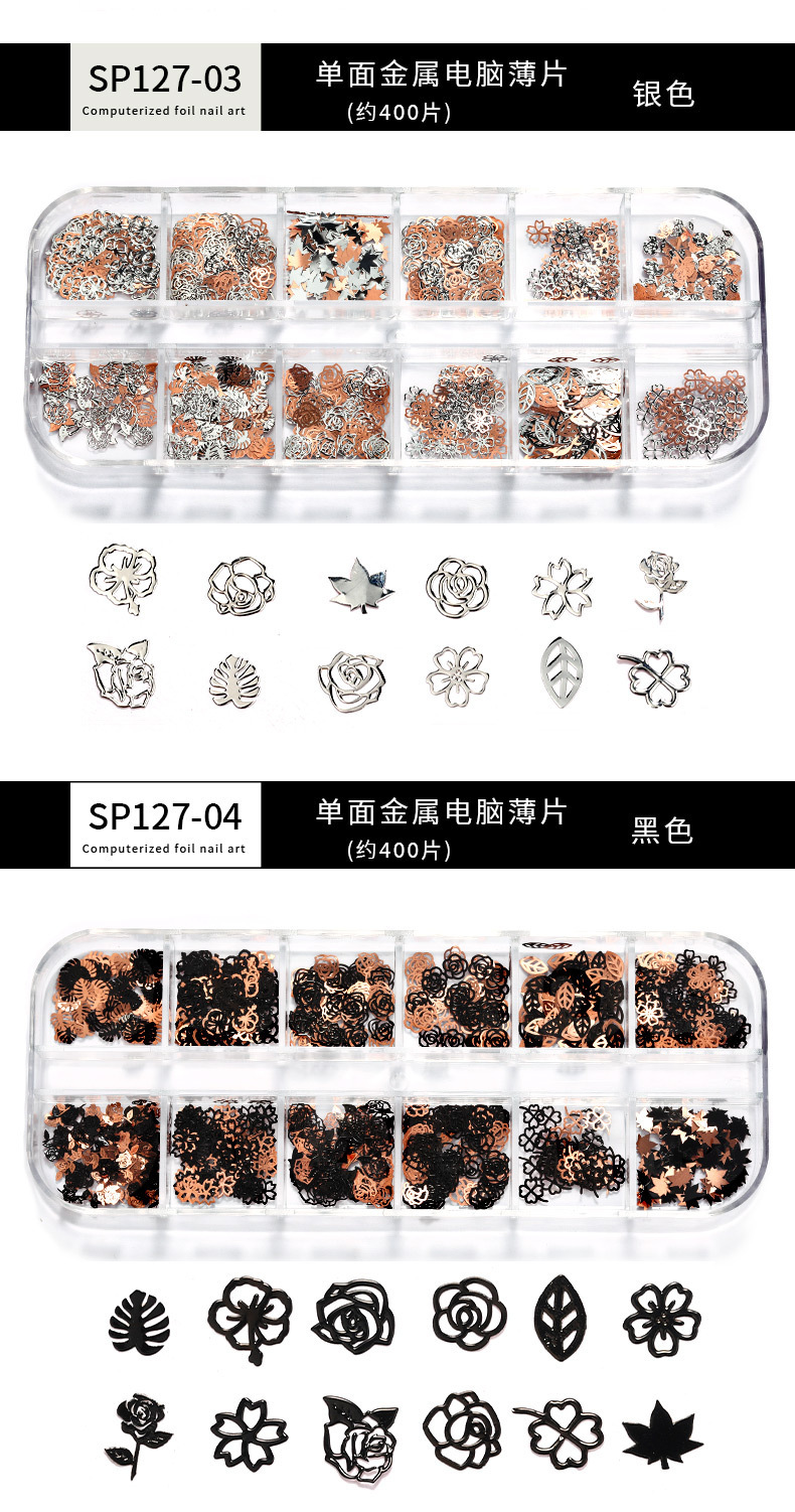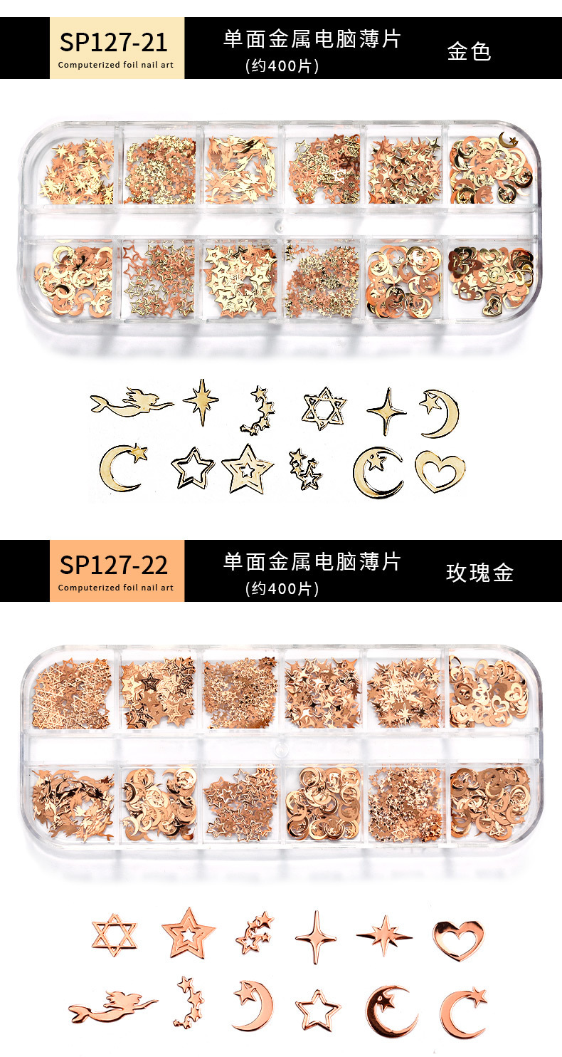 Accesorios de uñas de estilo nuevo japonés en caja de metal hueco pieza de computadora K pieza de oro mariposa hoja de arce decoración de uñas ultrafina
