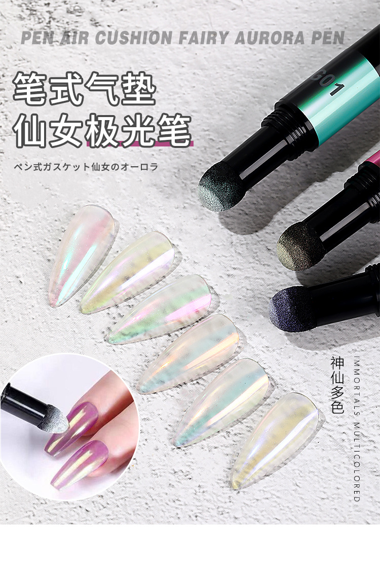Joyería caliente transfronteriza nueva uñas Aurora cojín de aire pluma mágica Aurora brillo desgaste uñas manicura joyería