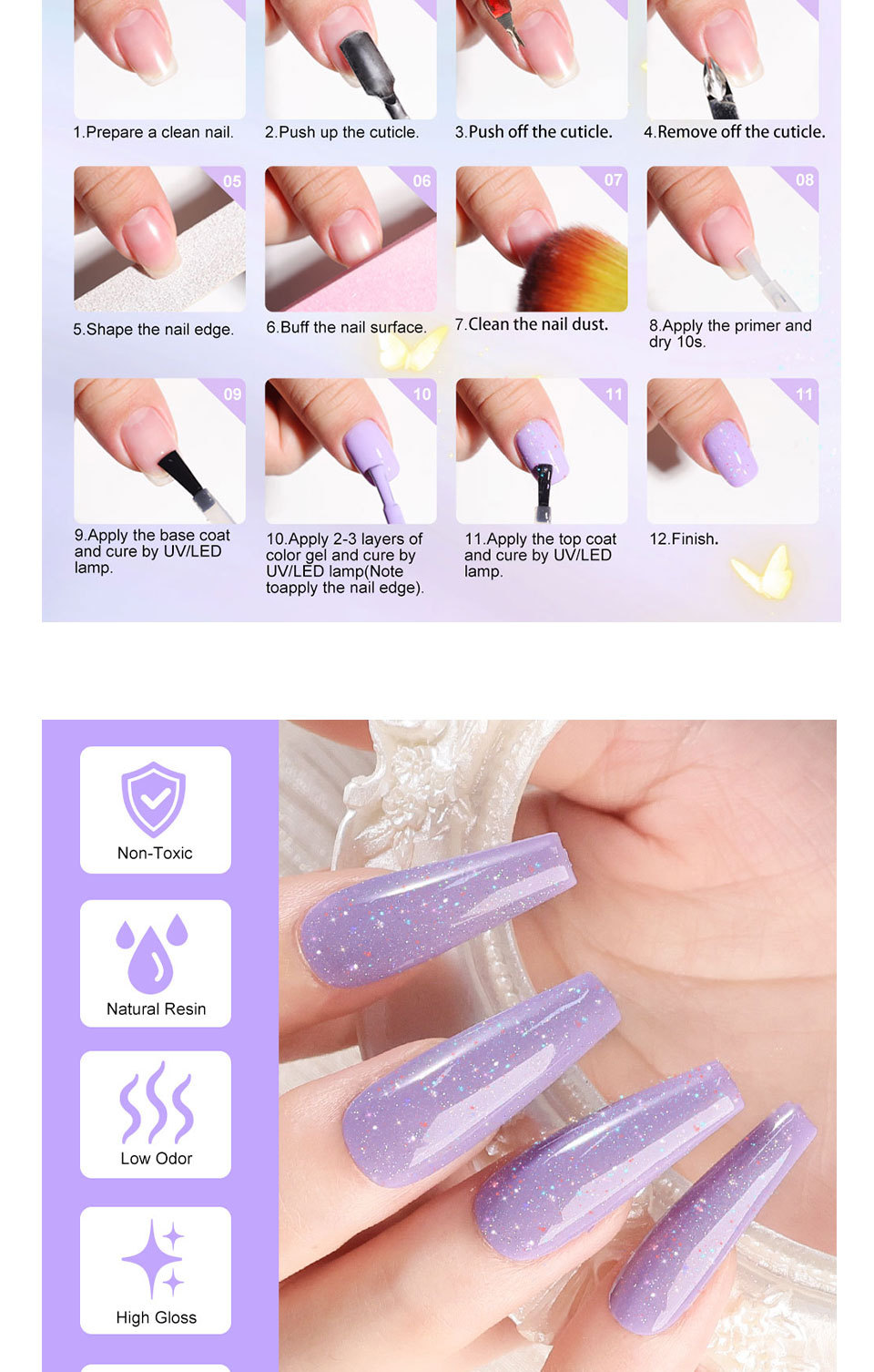 Esmalte de uñas popular, set de pegamento funcional para manicura de 24 colores, pegamento de fototerapia removible, sellador sin lavado, sellador con purpurina, pegamento base.