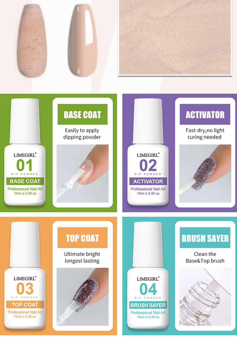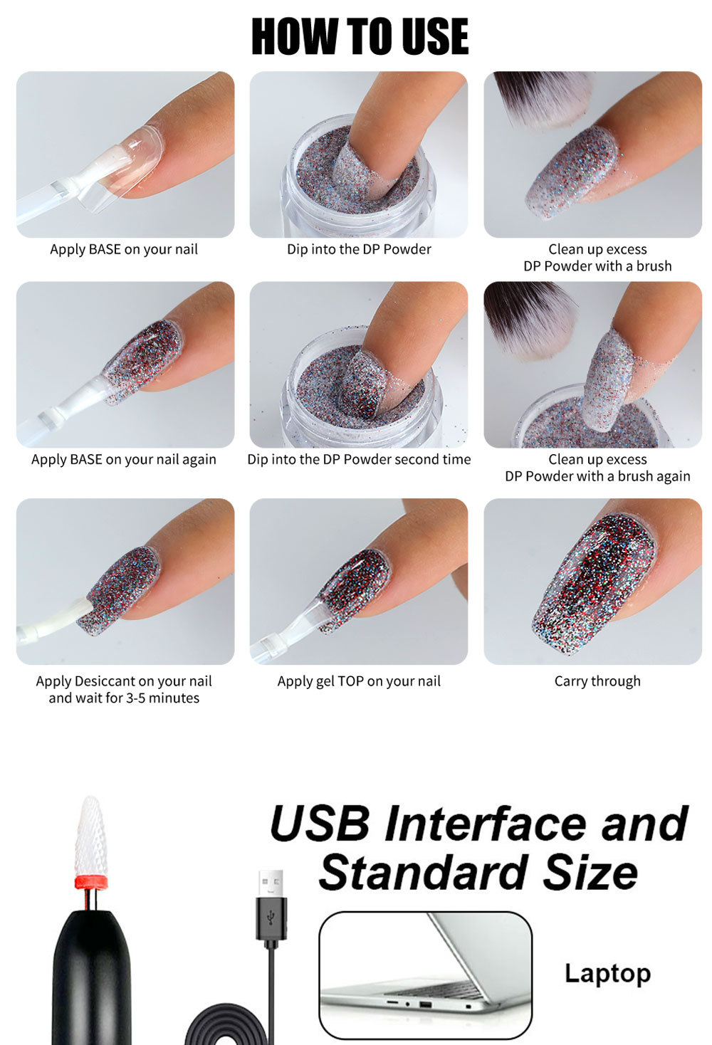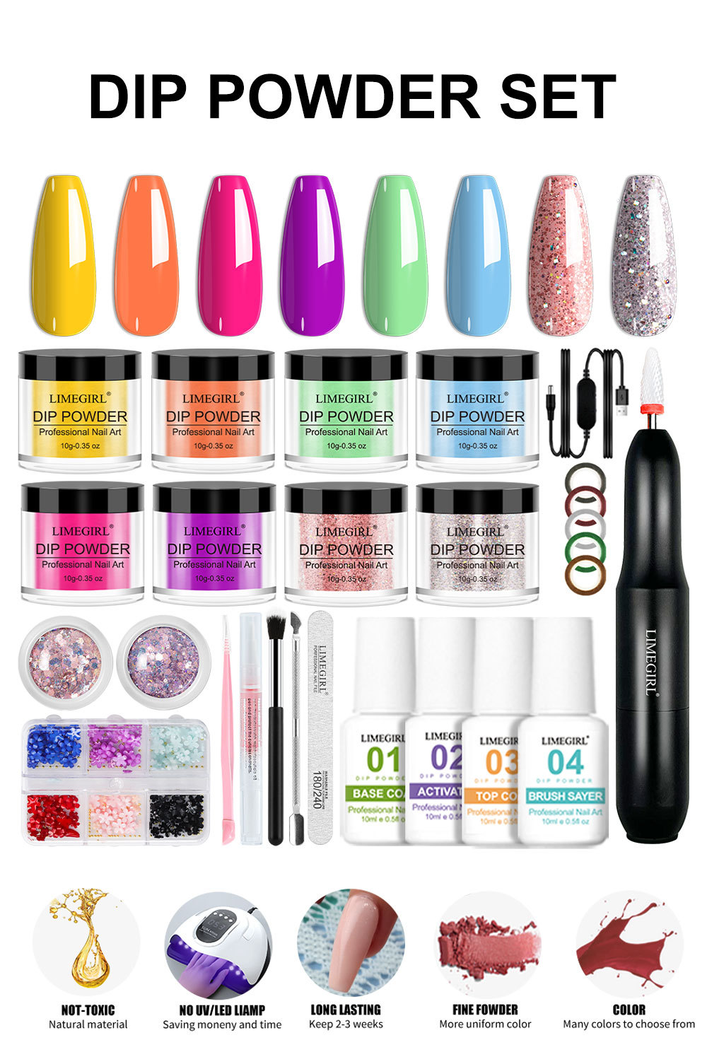 Cruz-frontera Venta caliente arte de uñas infiltrado polvo amoladora traje de inmersión de potencia Kit de uñas de flash pastel
