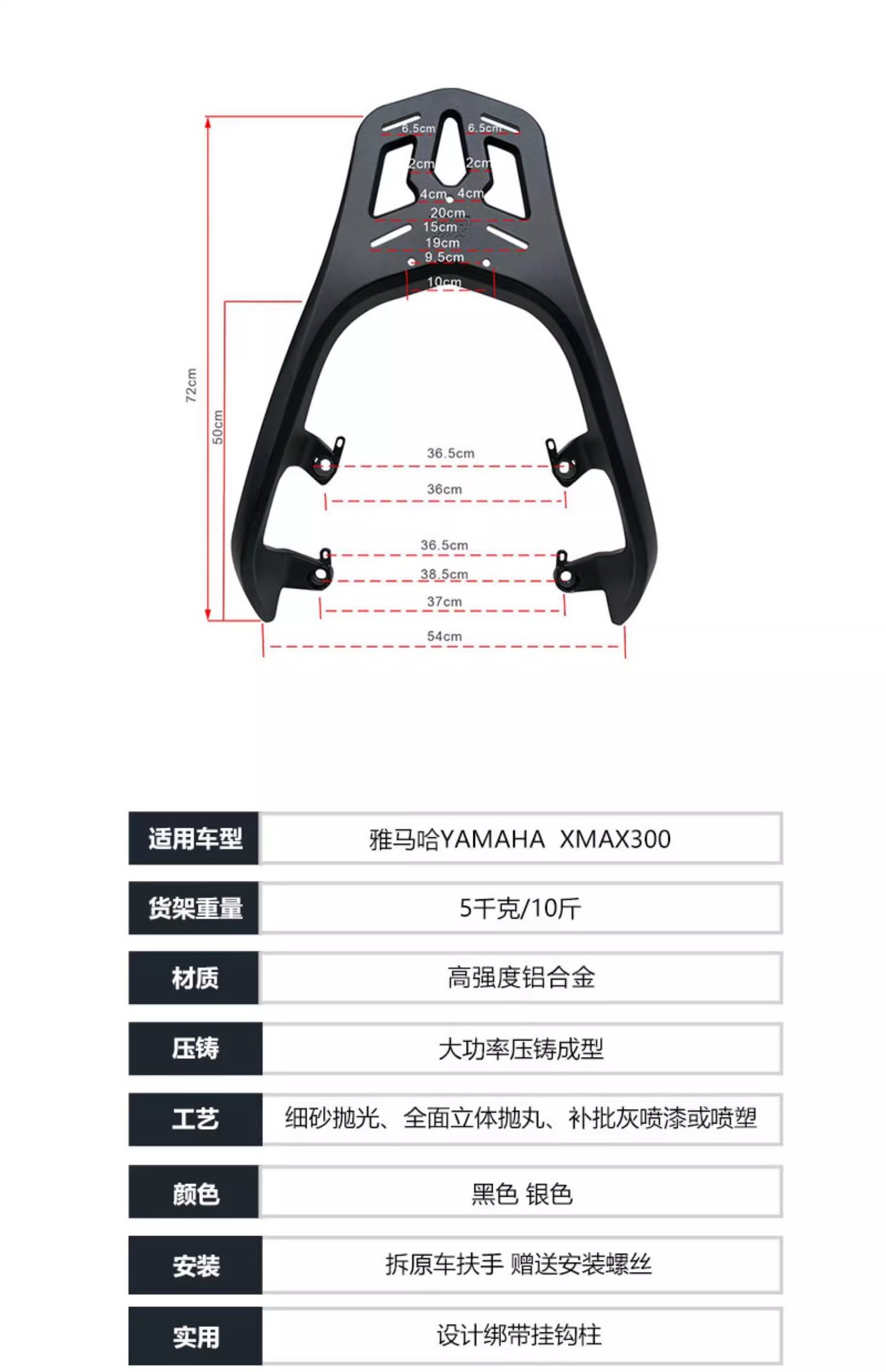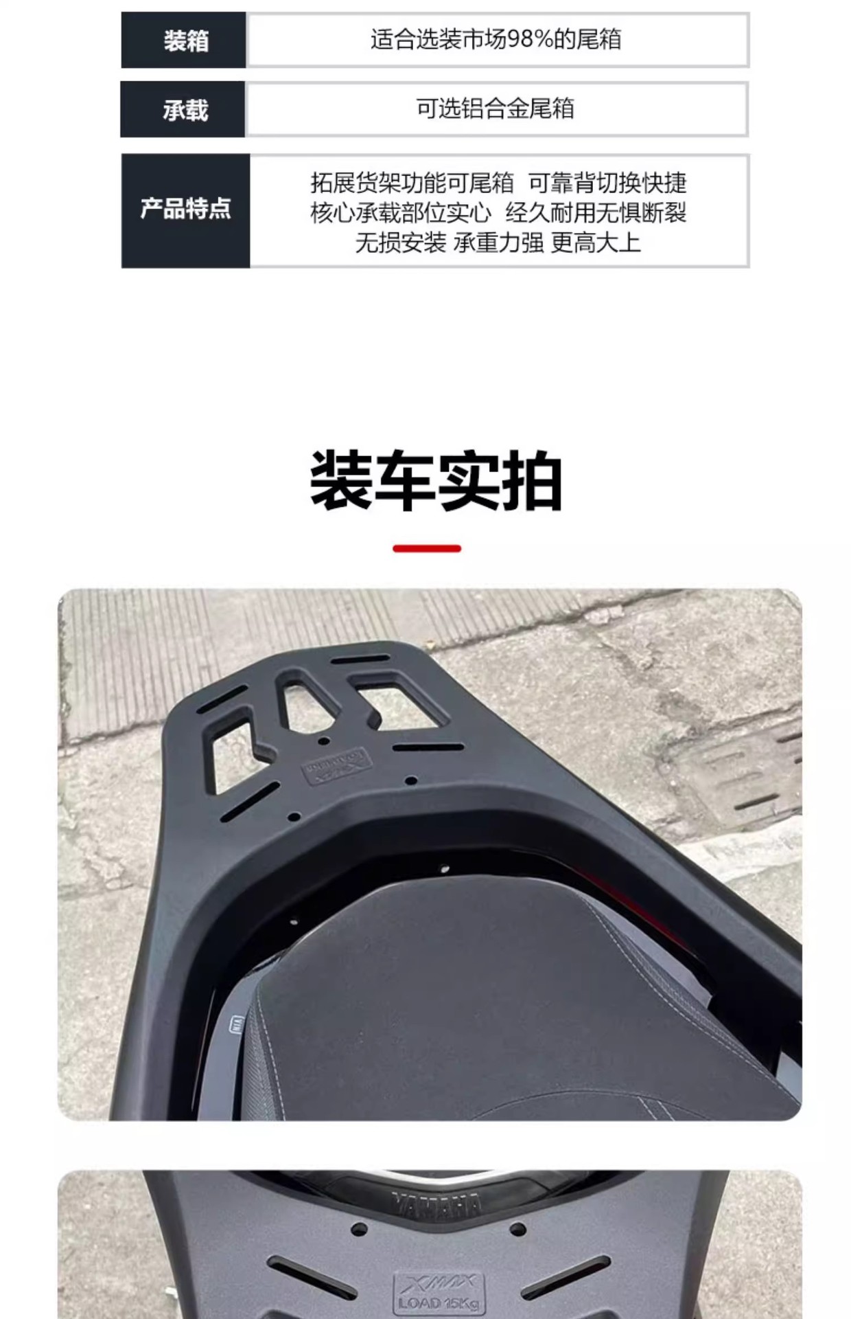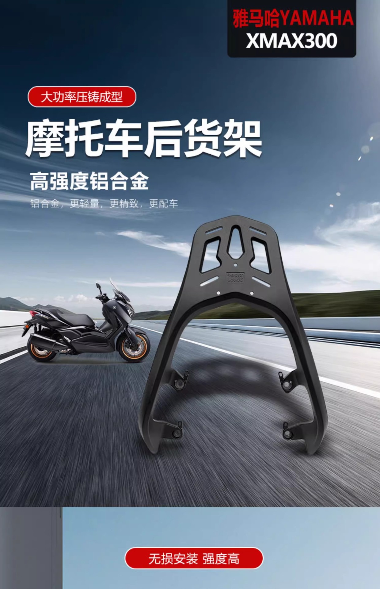Aplicable a Yamaha XNMAX300 tailgate integrado aleación de aluminio modificado tailgate estante trasero tailgate estante de equipaje