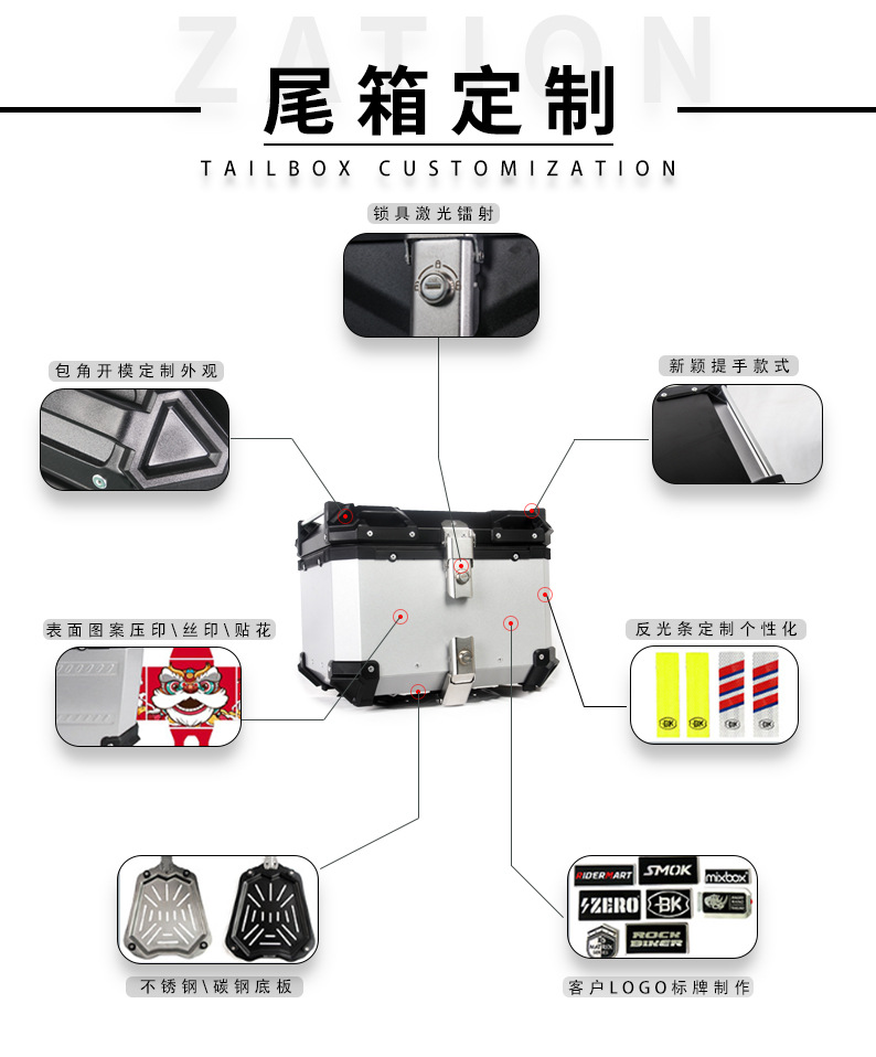 45L fibra de carbono cubierta superior de aleación de aluminio de liberación rápida equipaje de almacenamiento eléctrico motocicleta tronco