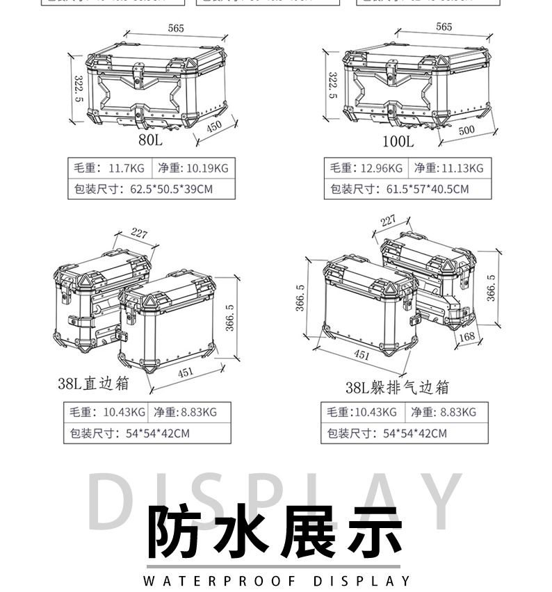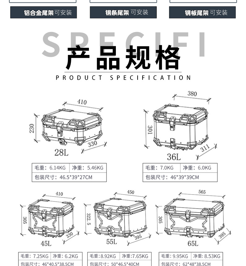 | Número de artículo | 38l Caja lateral de aleación de aluminio / negro completo |