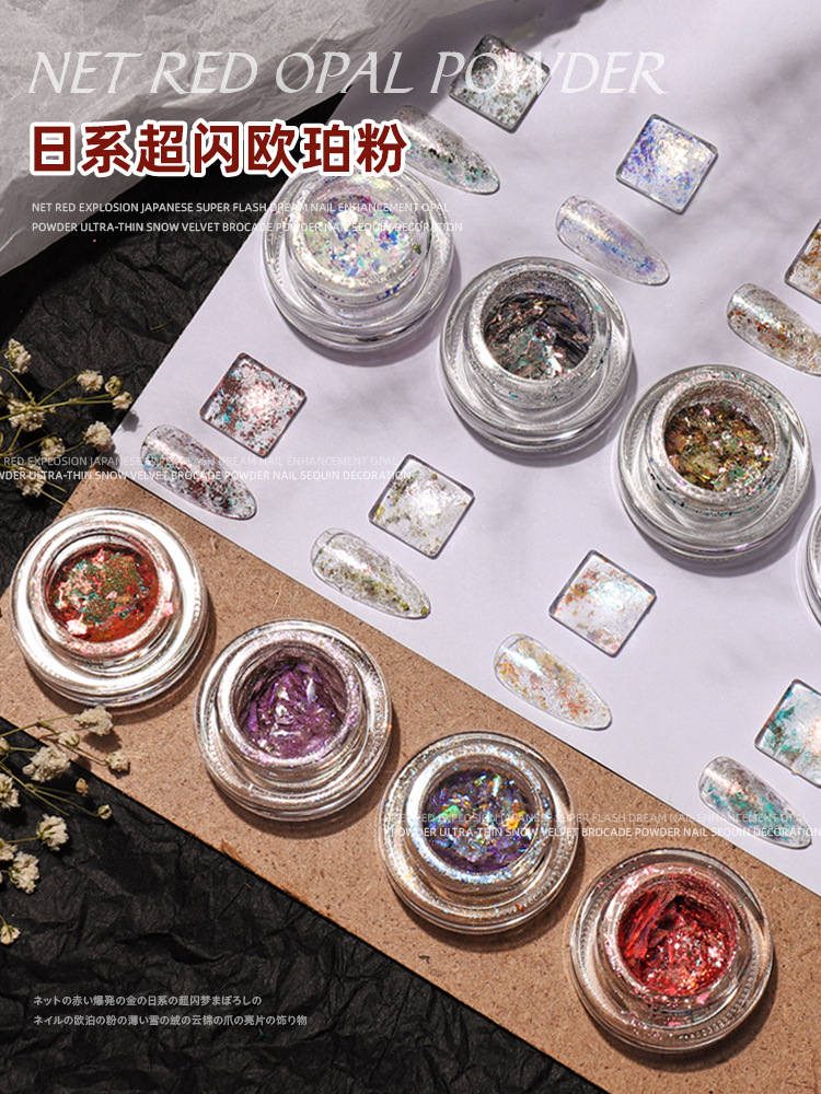 Rojo neto inmortal clavo brocado polvo OPAL Aurora hielo color luz láser SuperFlash gradiente mareado decoración de uñas