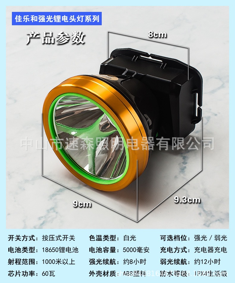 Lámpara de litio de emergencia de alta potencia montada en la cabeza Lámpara de litio mini carga exterior