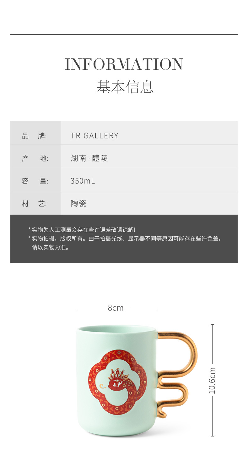 Tao Runhui Cultural and Creative Spirit Snake Cup Taza de alto valor Taza creativa Taza de cerámica personalizada con logotipo