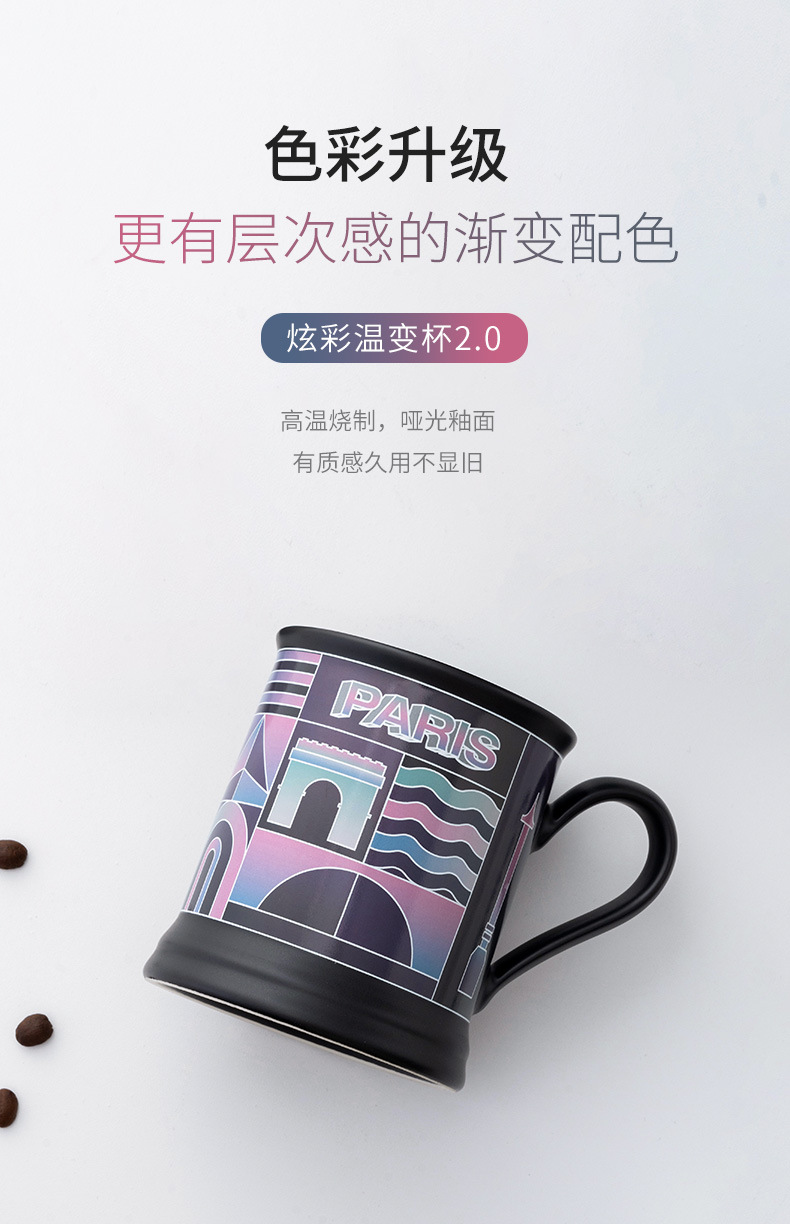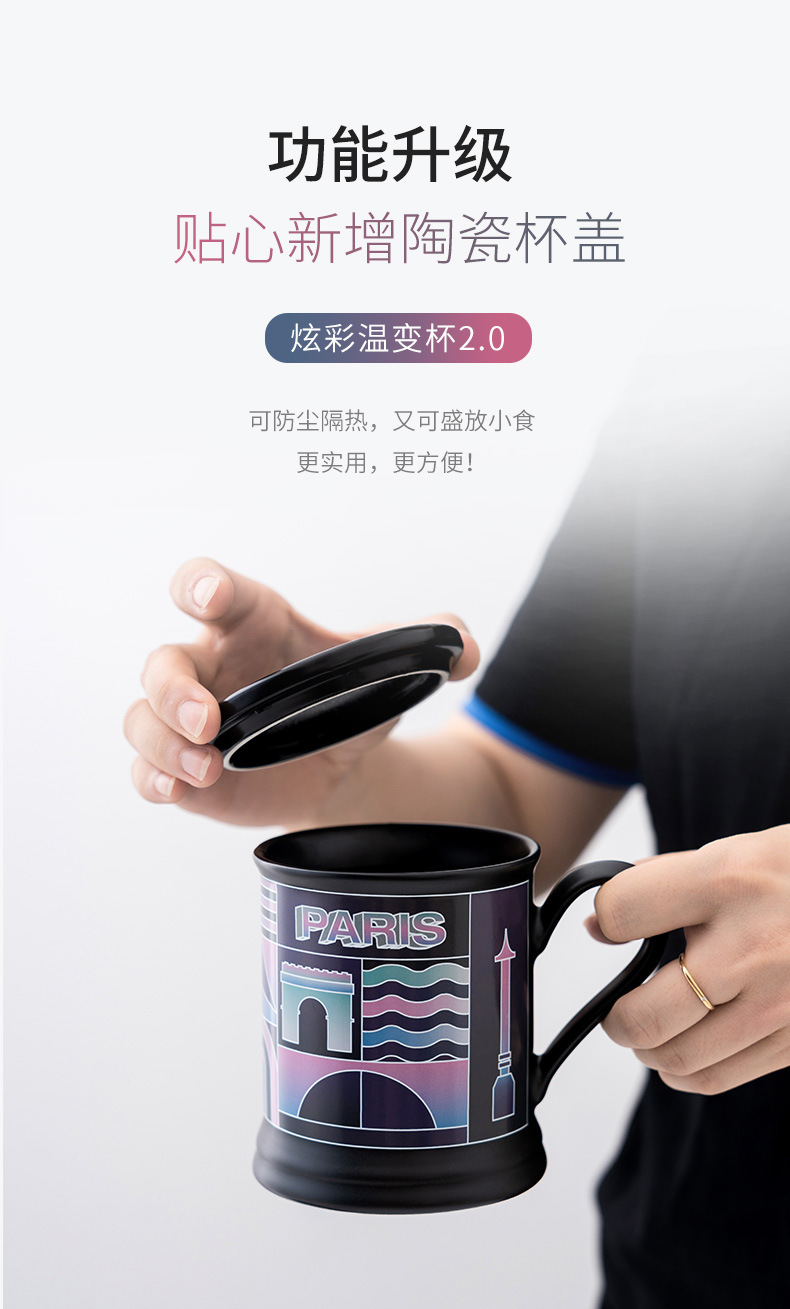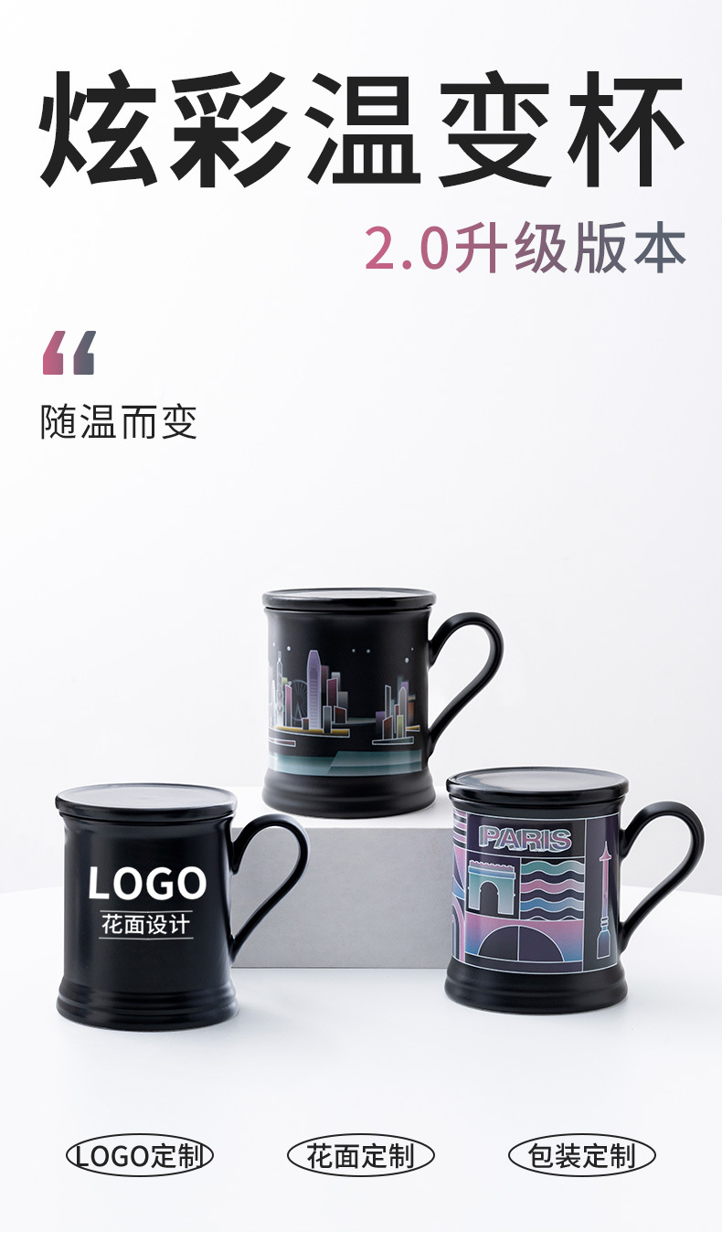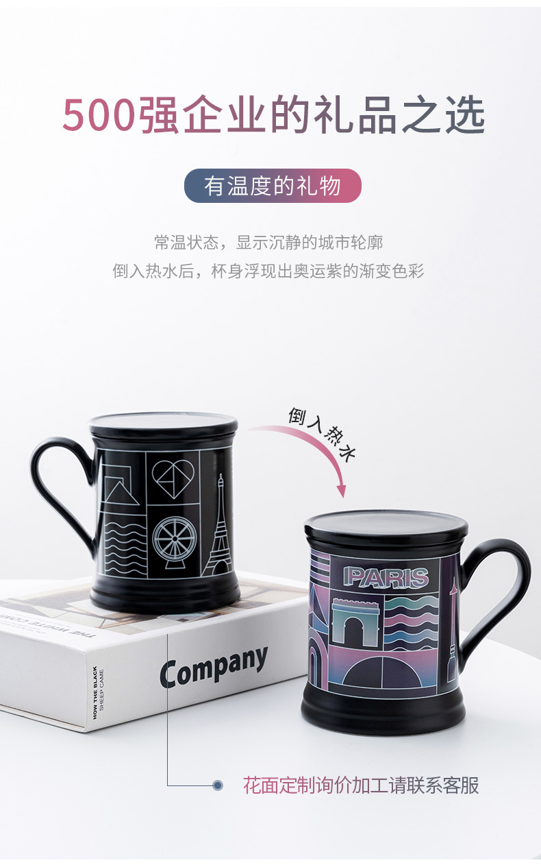 Taza de cerámica con tapa de alto valor retrógrado nicho taza de agua taza de cerámica personalizada taza de cambio de color de temperatura