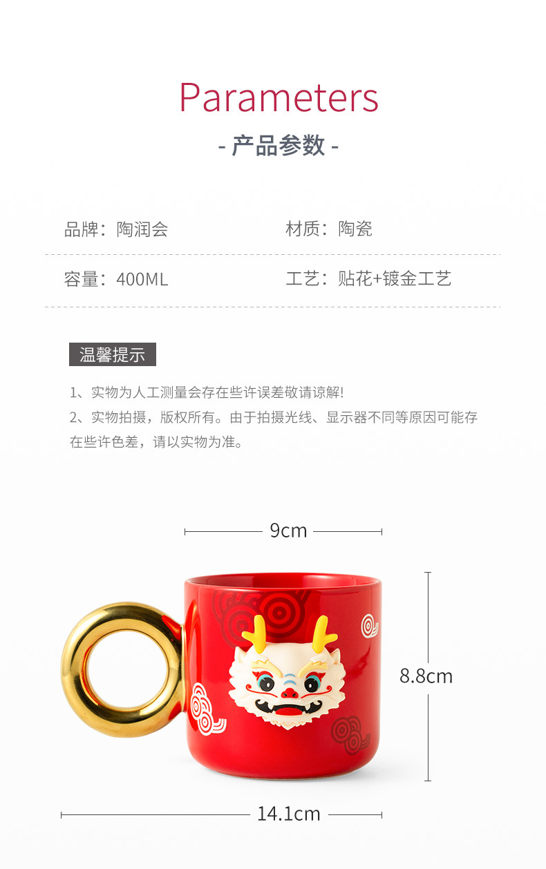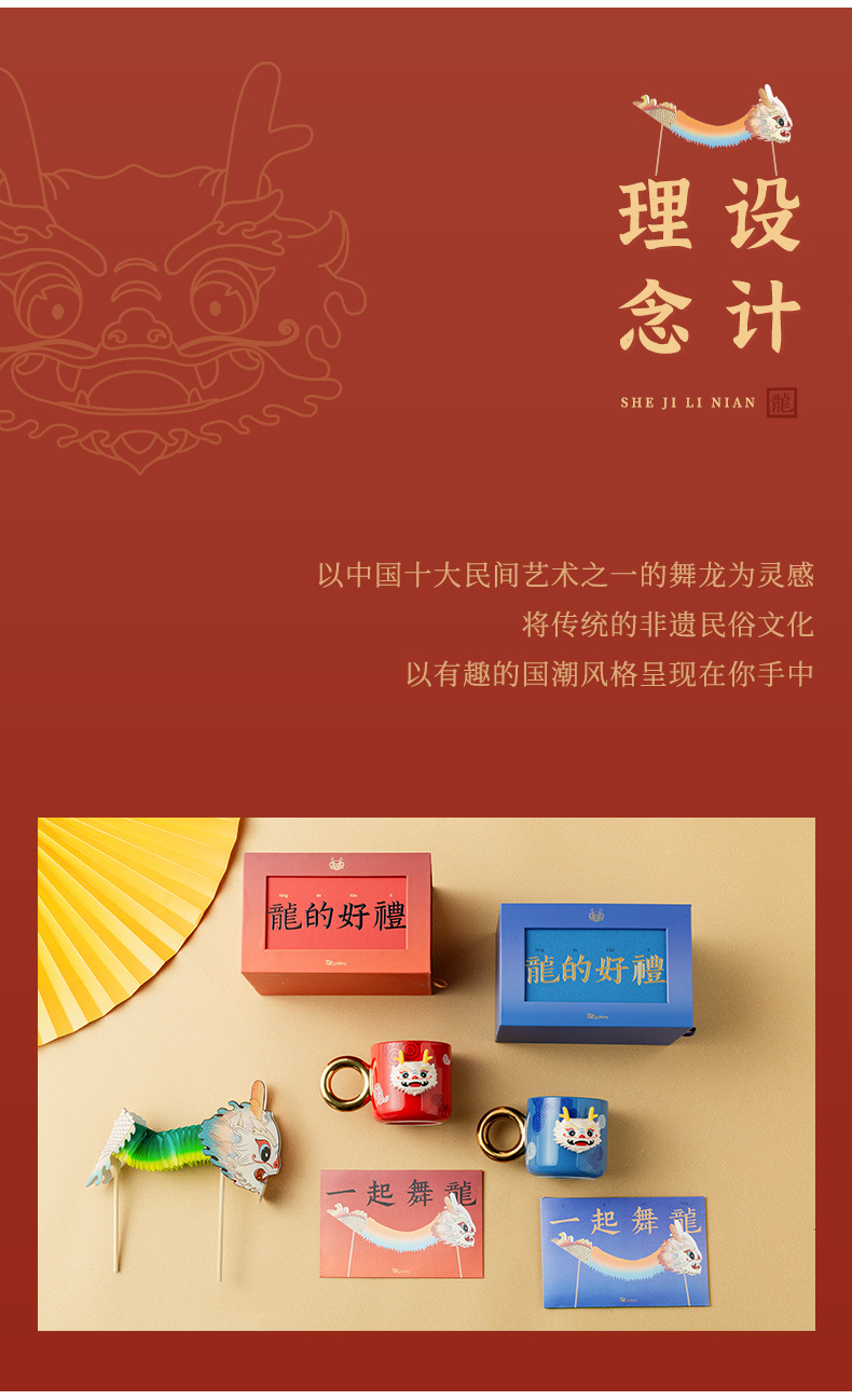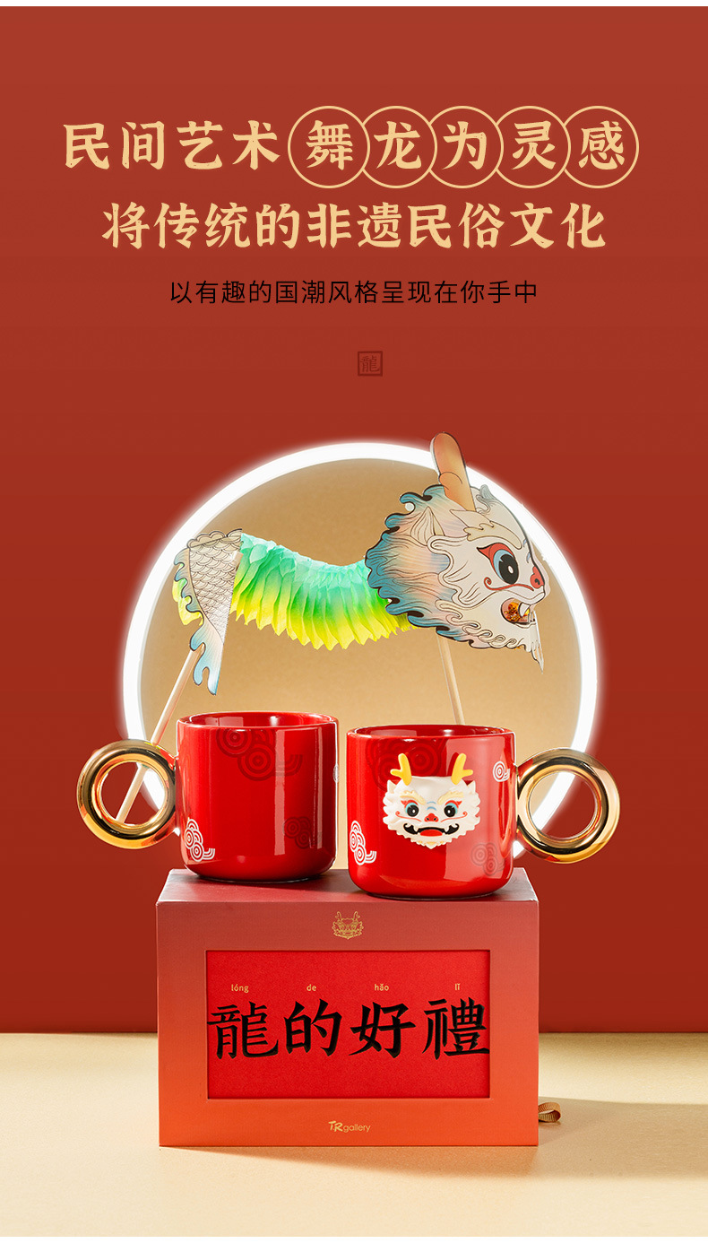 Año chino regalo dragón danza taza regalo de Año Nuevo par taza creativa actividad del festival regalo para los amigos dragón año regalo