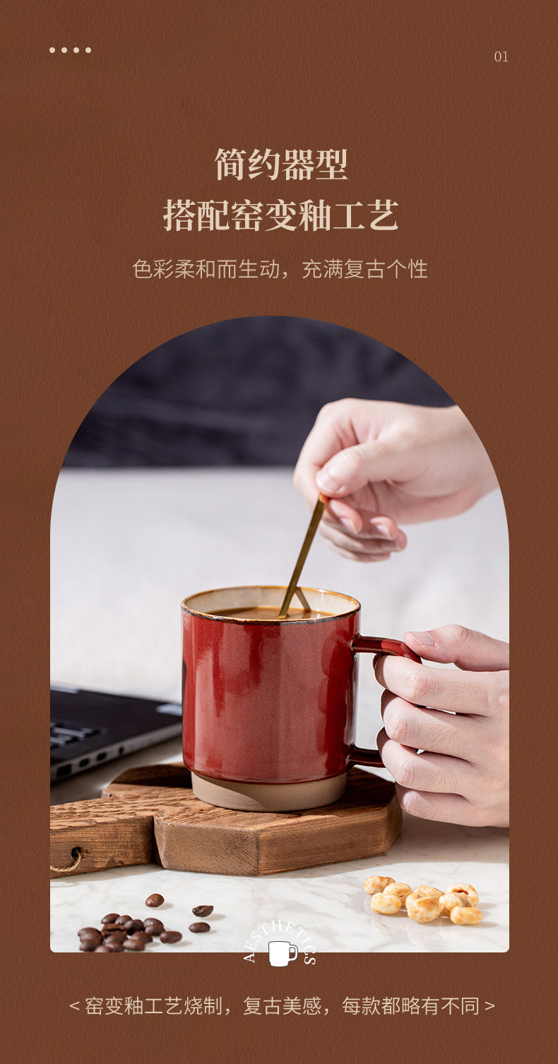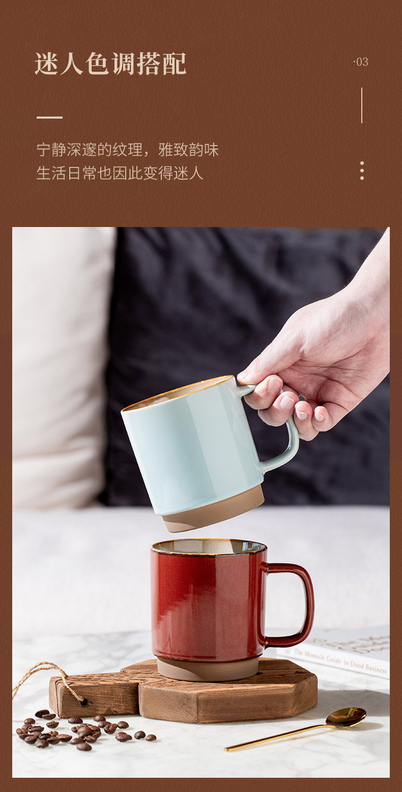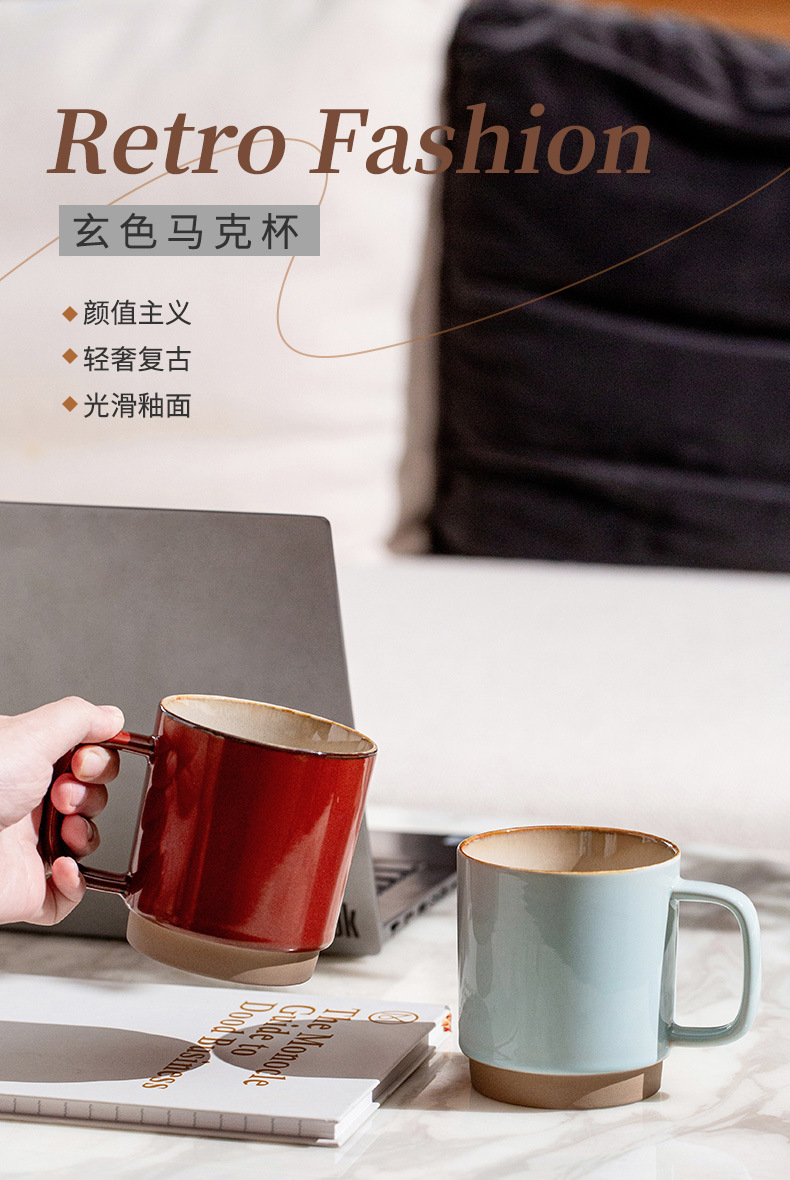 Taza de oficina Tao Run Hui, taza de café artesanal estilo retro, taza creativa y única, cerámica al por mayor de fábrica